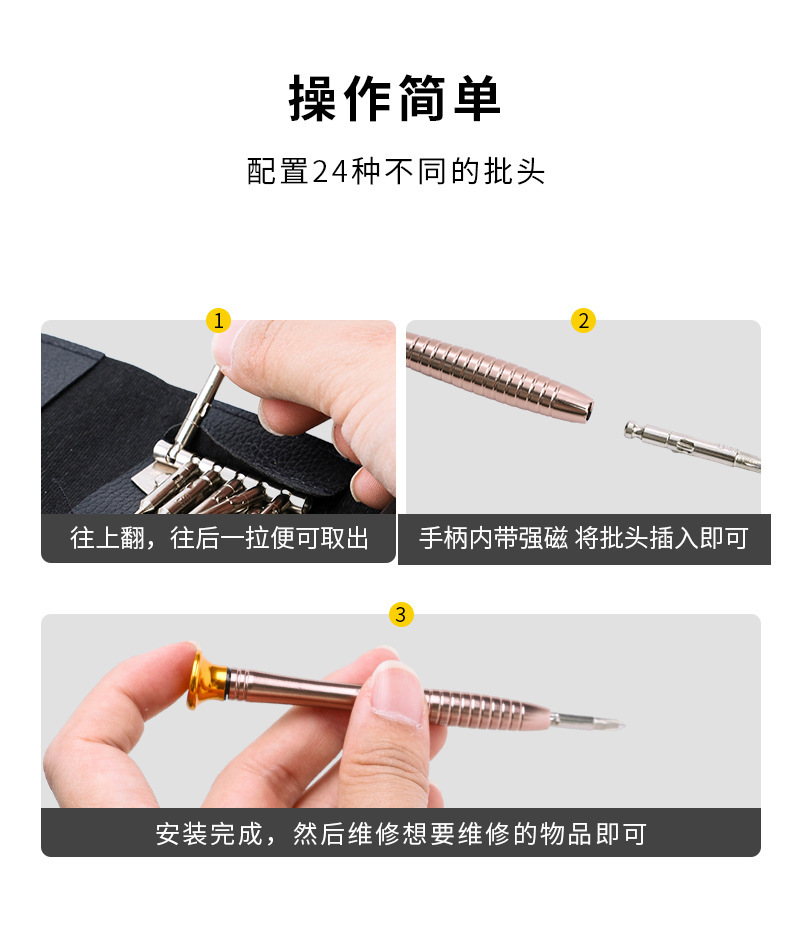24 대 1 스크류 드라이버 세트 가죽 가방 휴대용 휴대 전화 컴퓨터 수리 25 대 1 국경 스크루 드라이버 도구스토어 가기