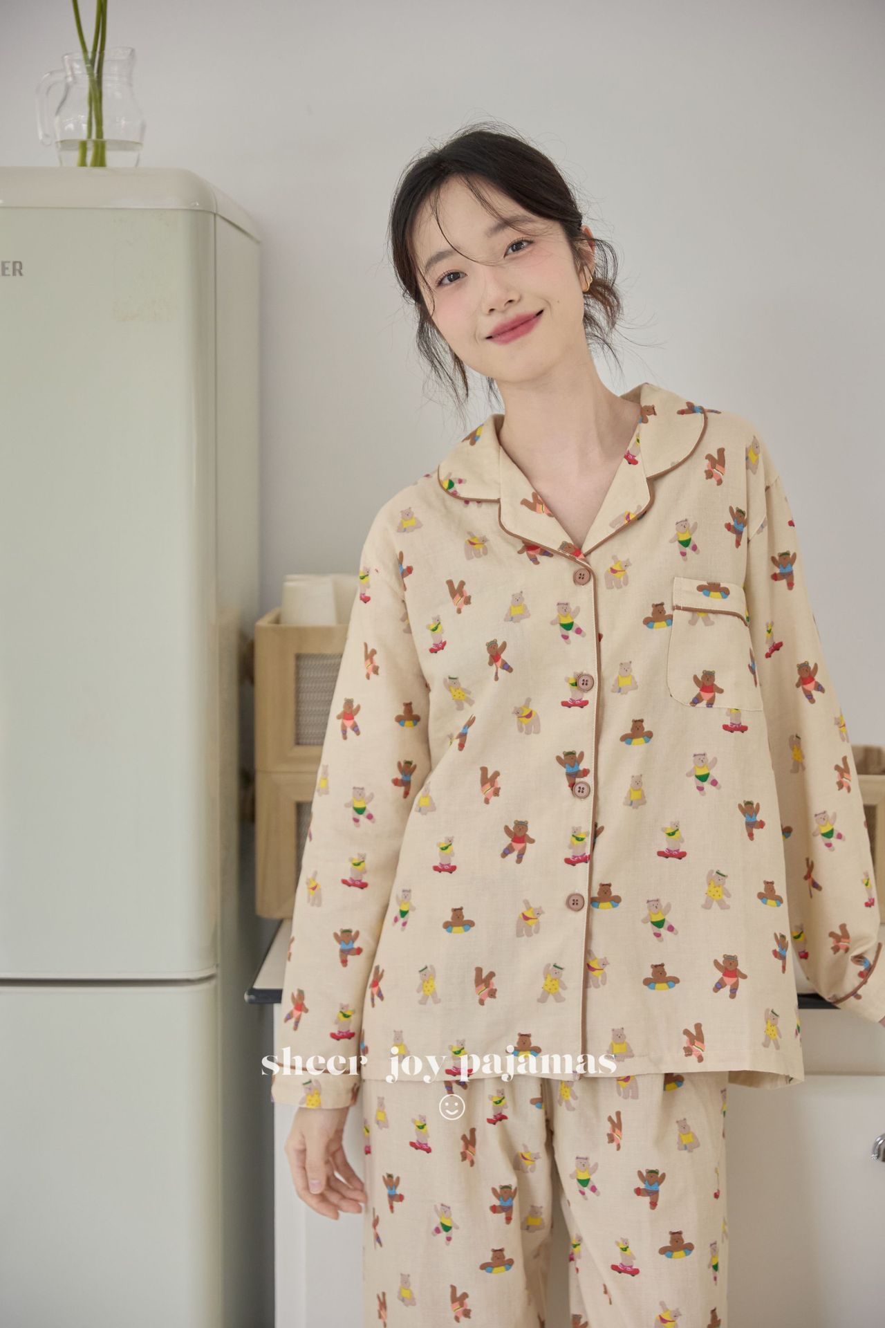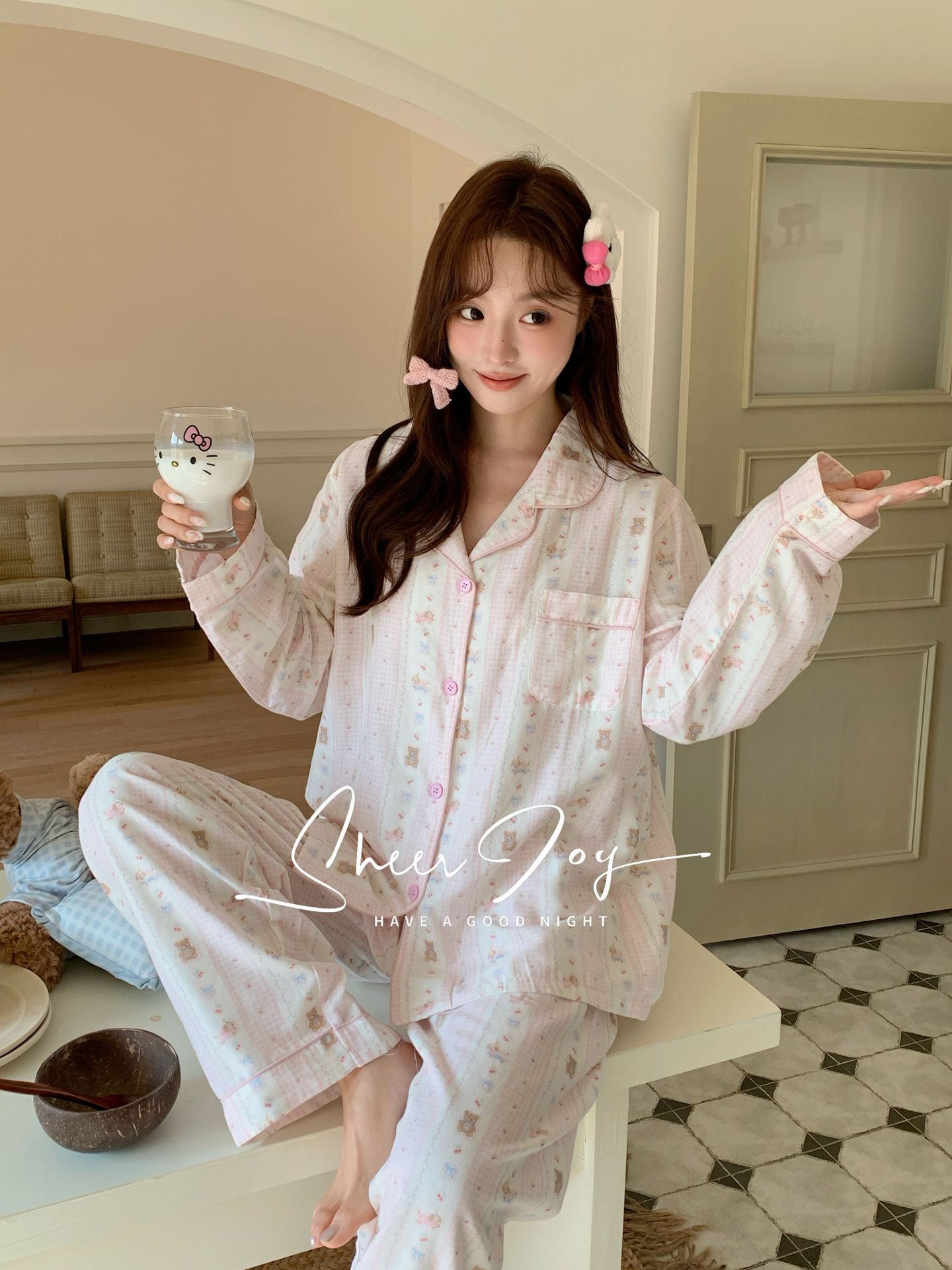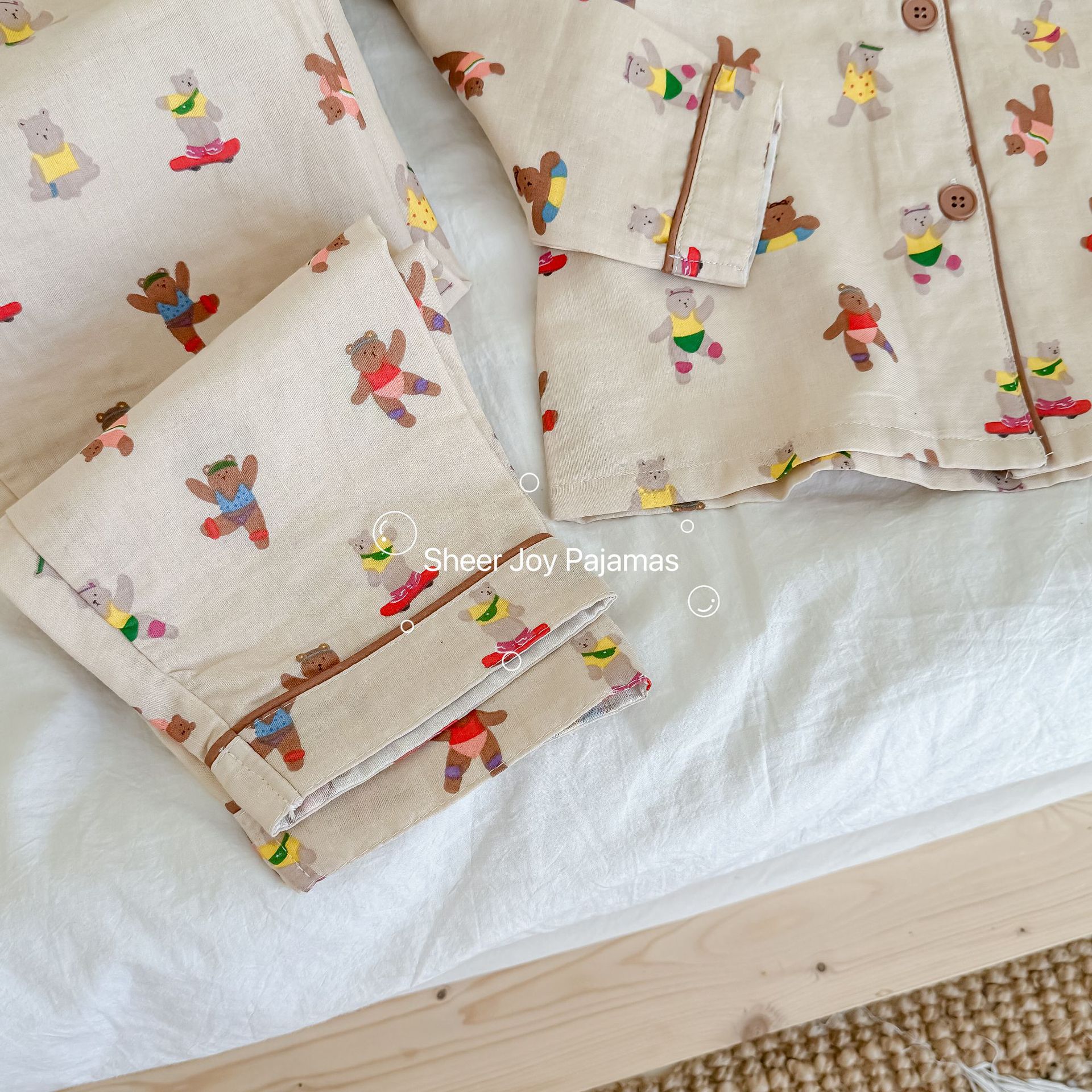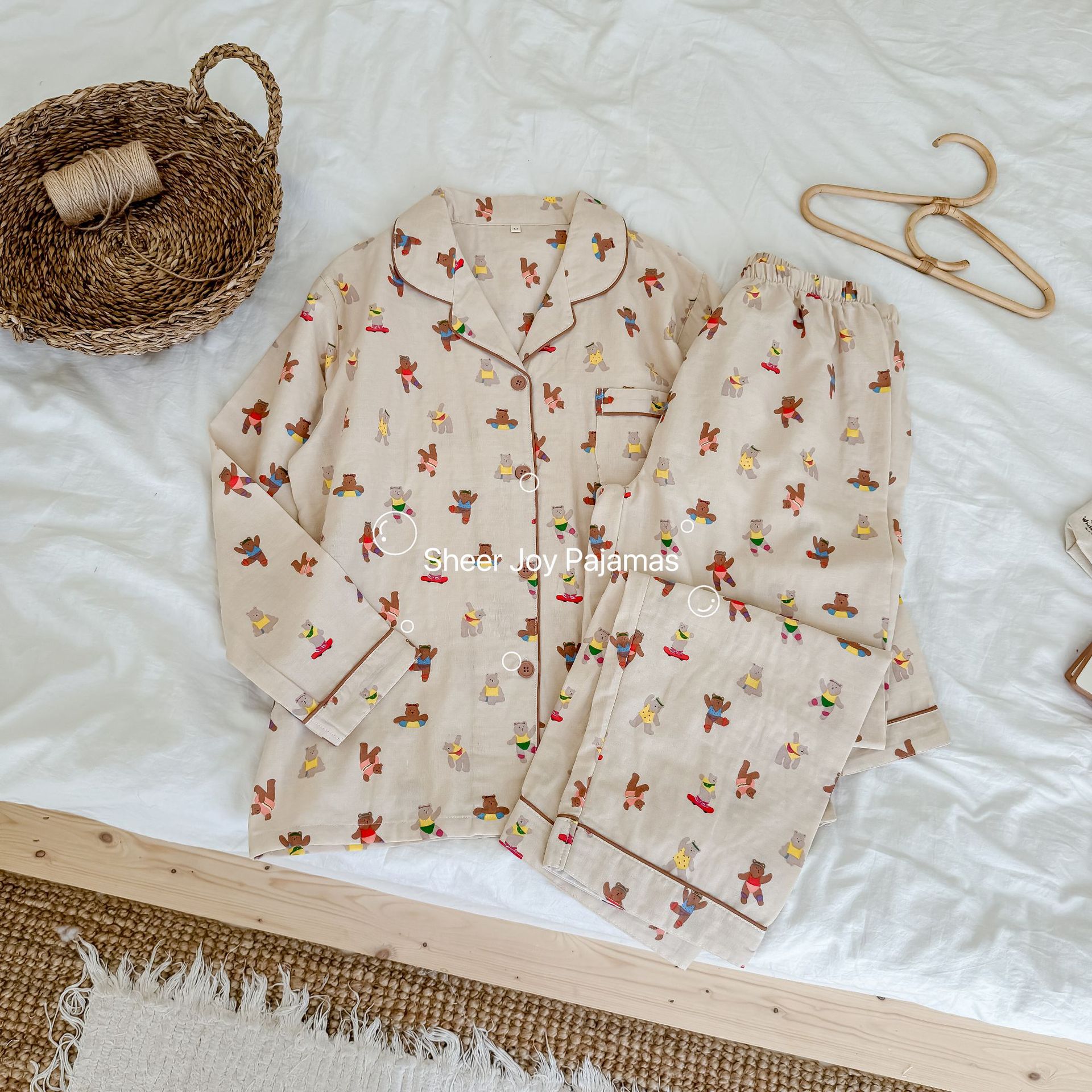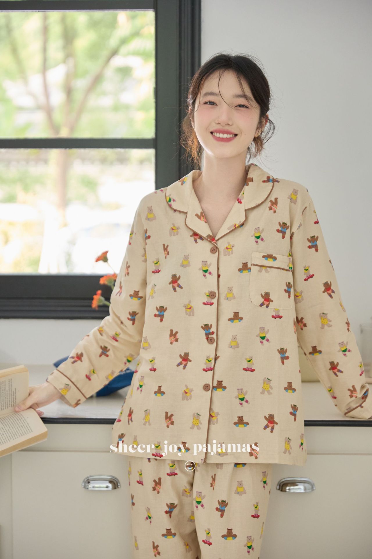 순수 면 더블 레이어 원사 임베디드 용어 부모 자식 긴팔 바지 홈 의류 세트 댄싱 베어