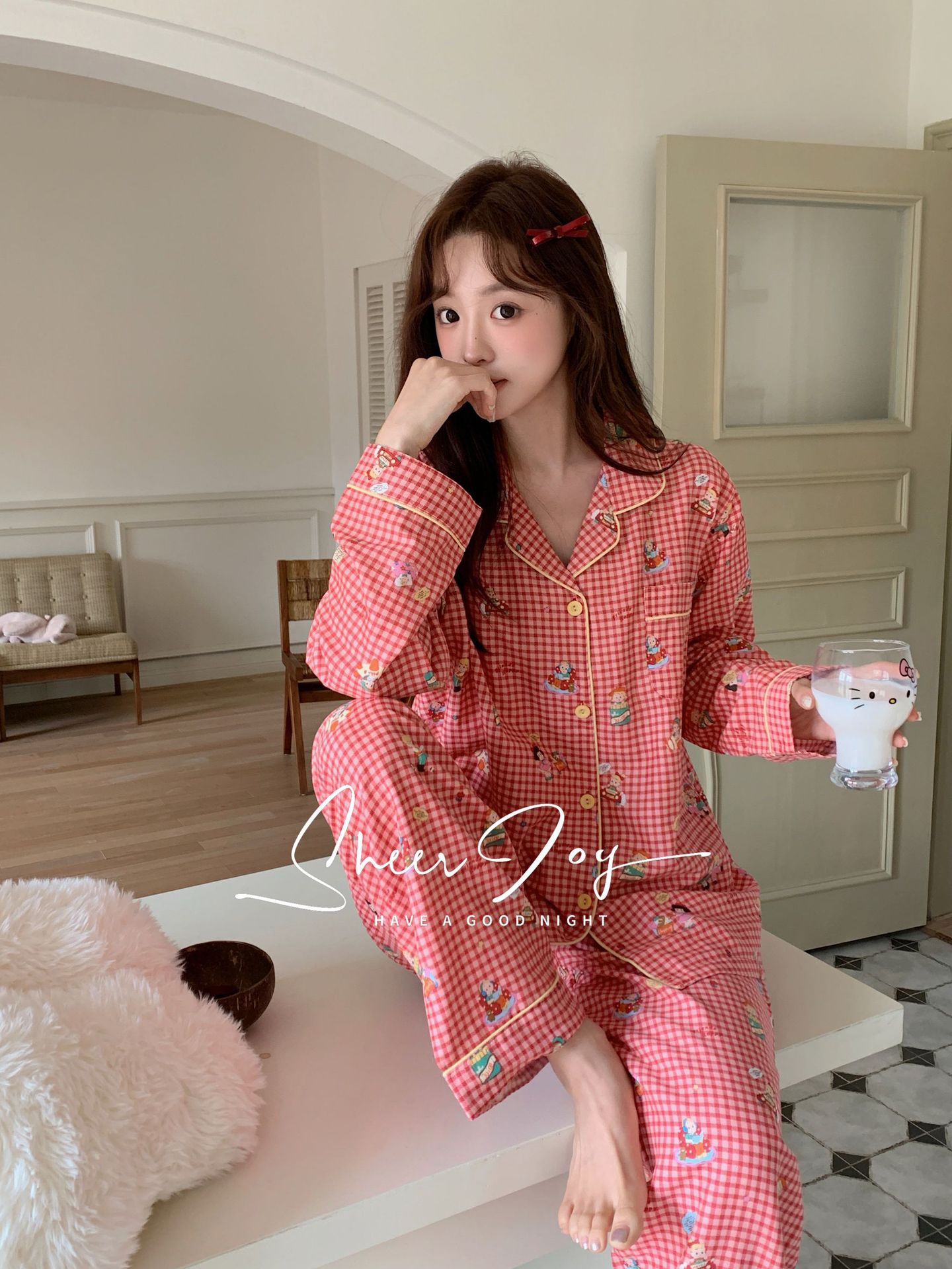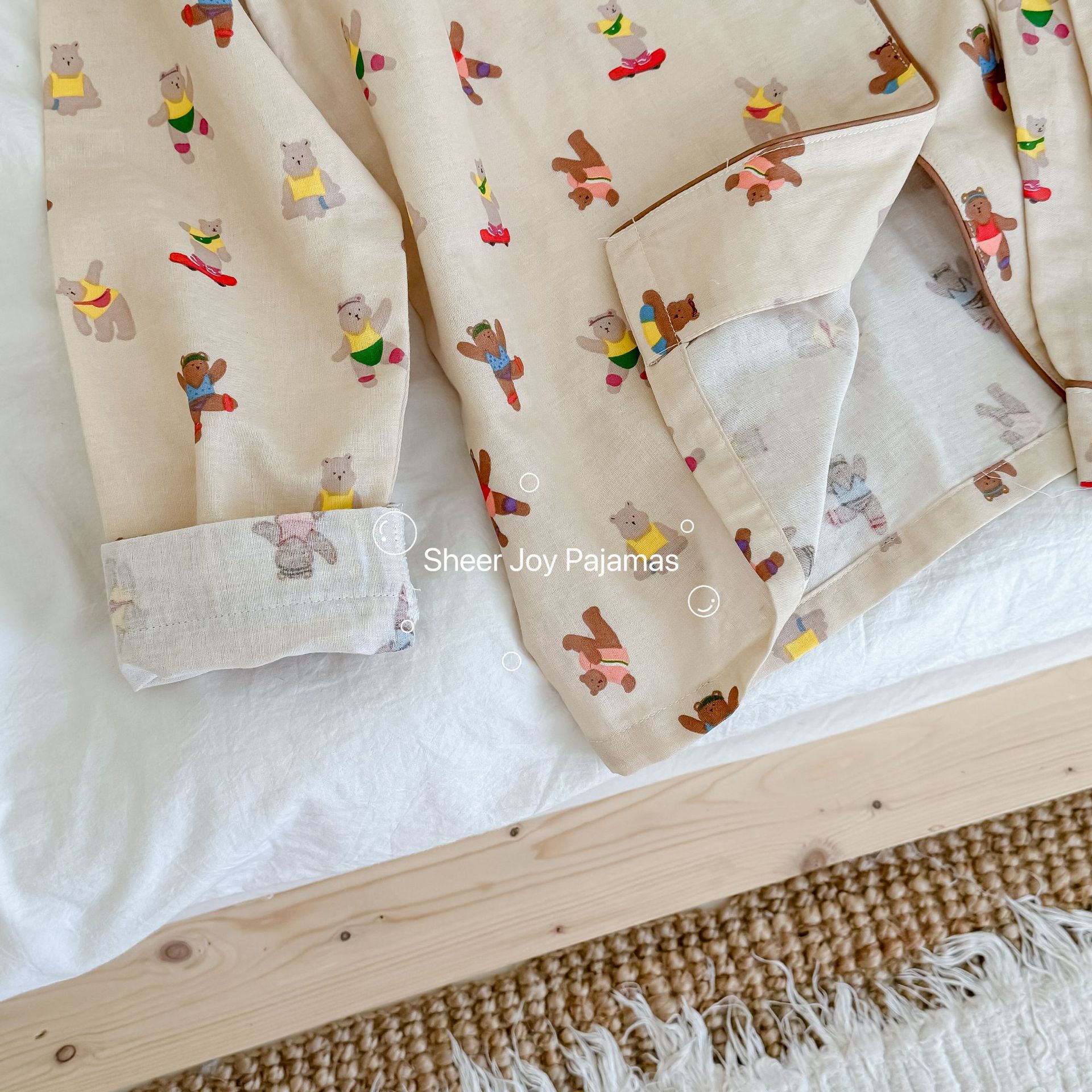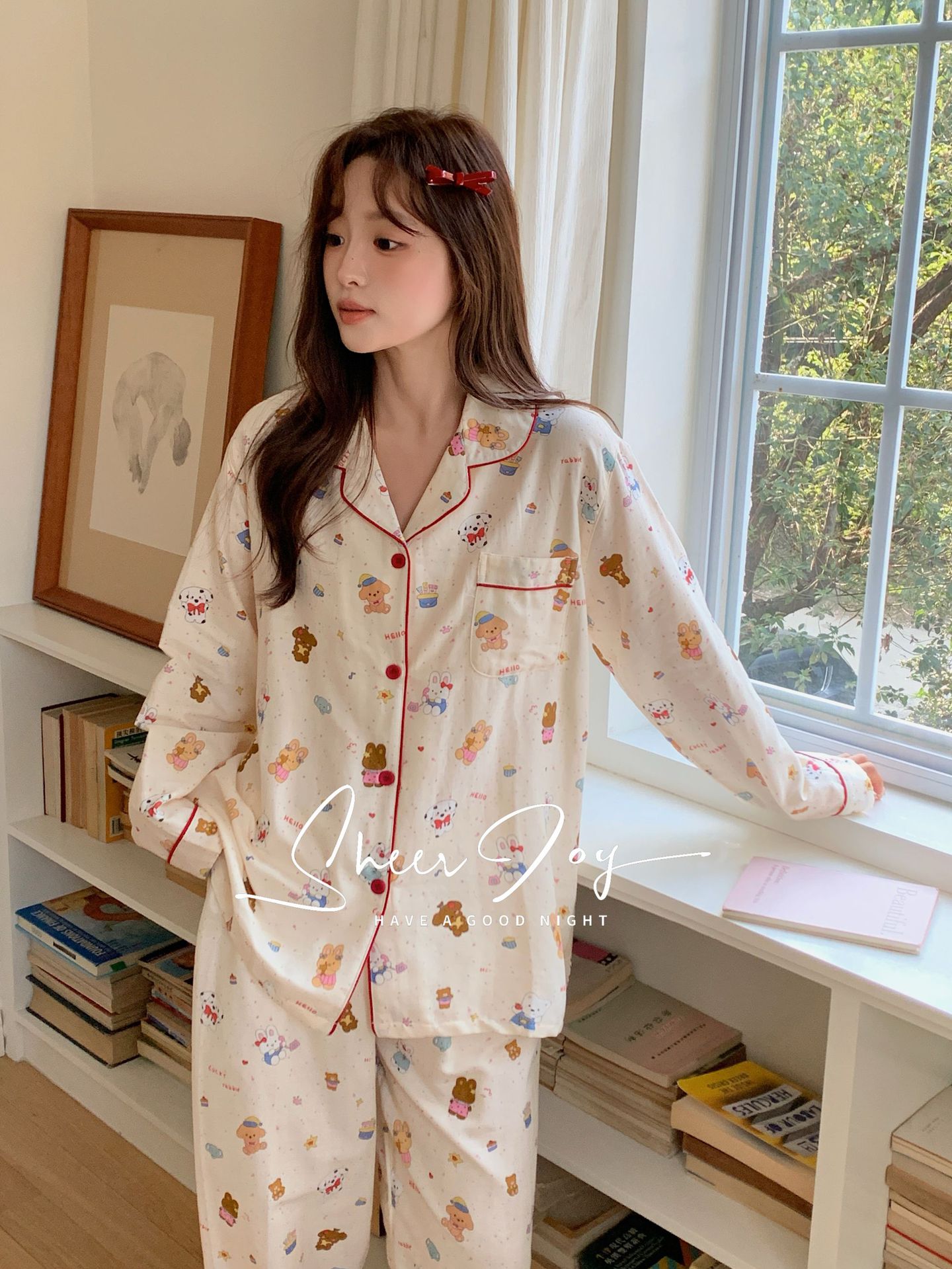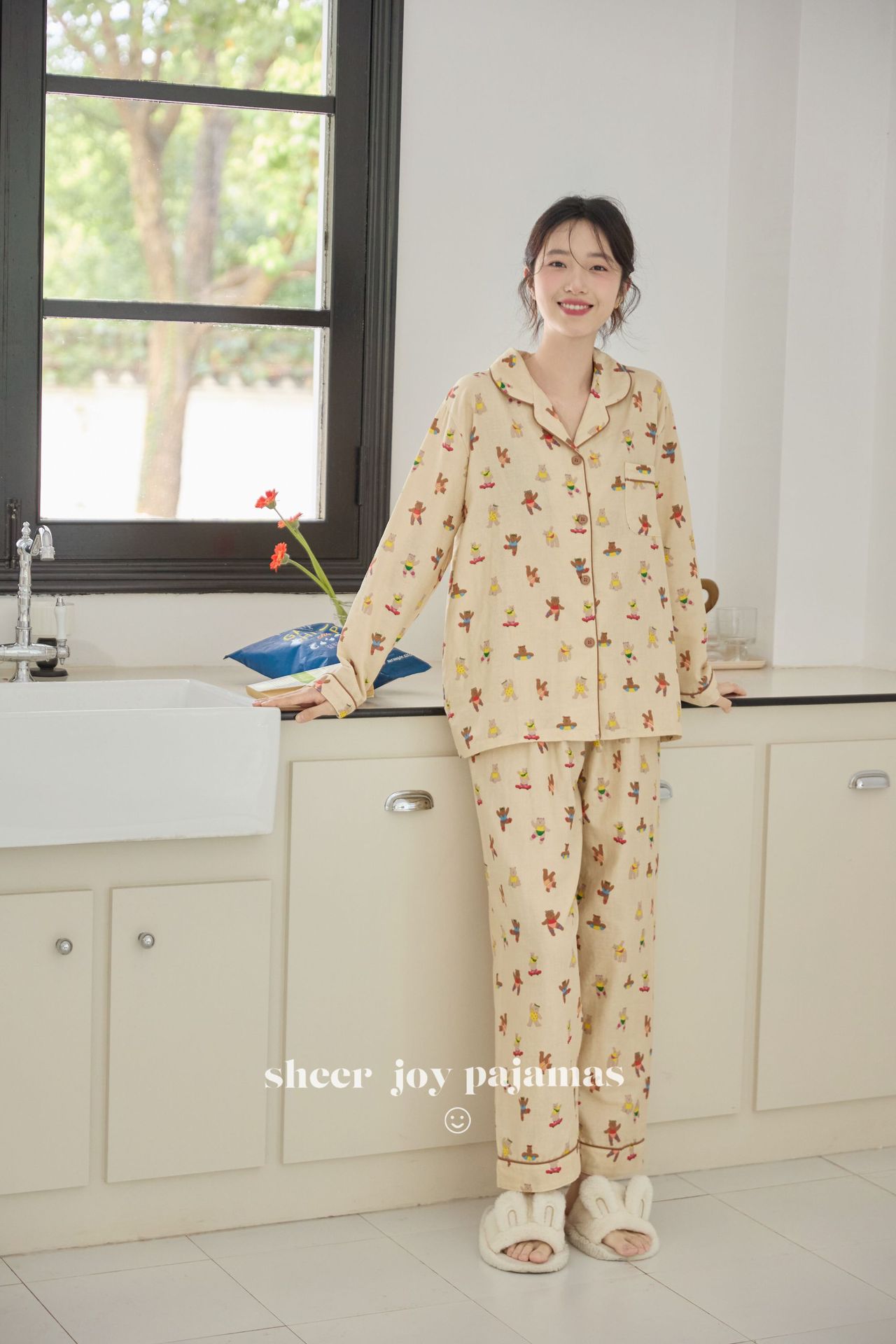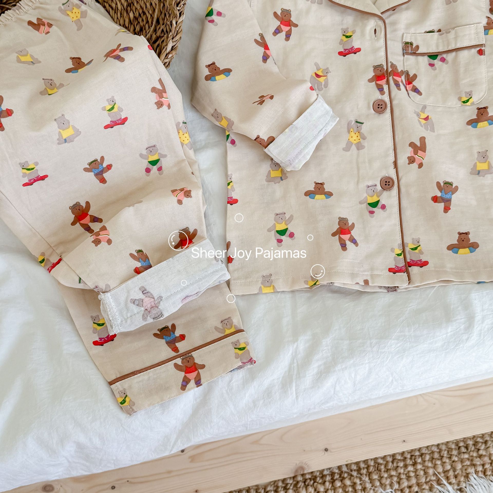 순수 면 더블 레이어 원사 임베디드 용어 부모 자식 긴팔 바지 홈 의류 세트 댄싱 베어