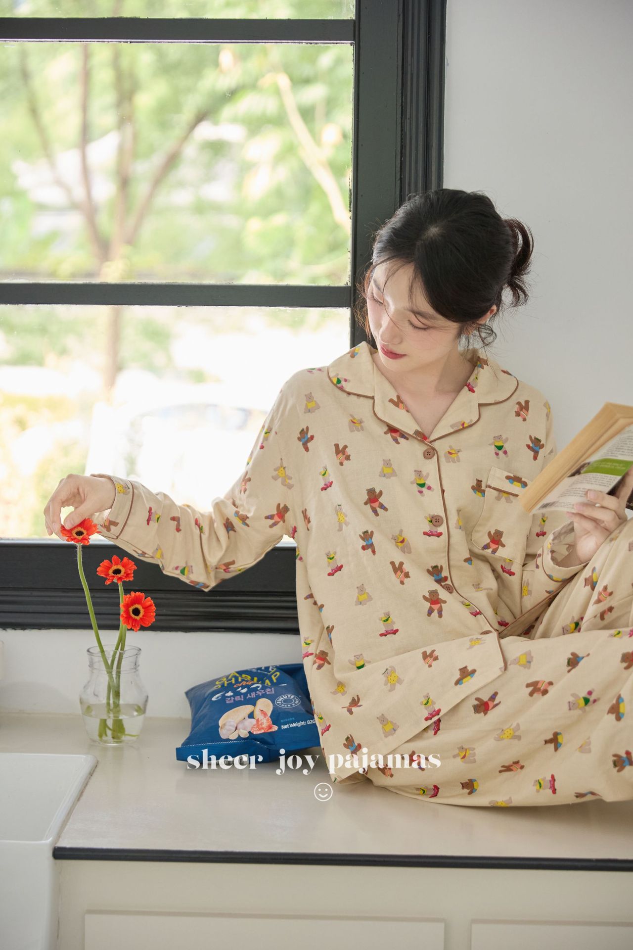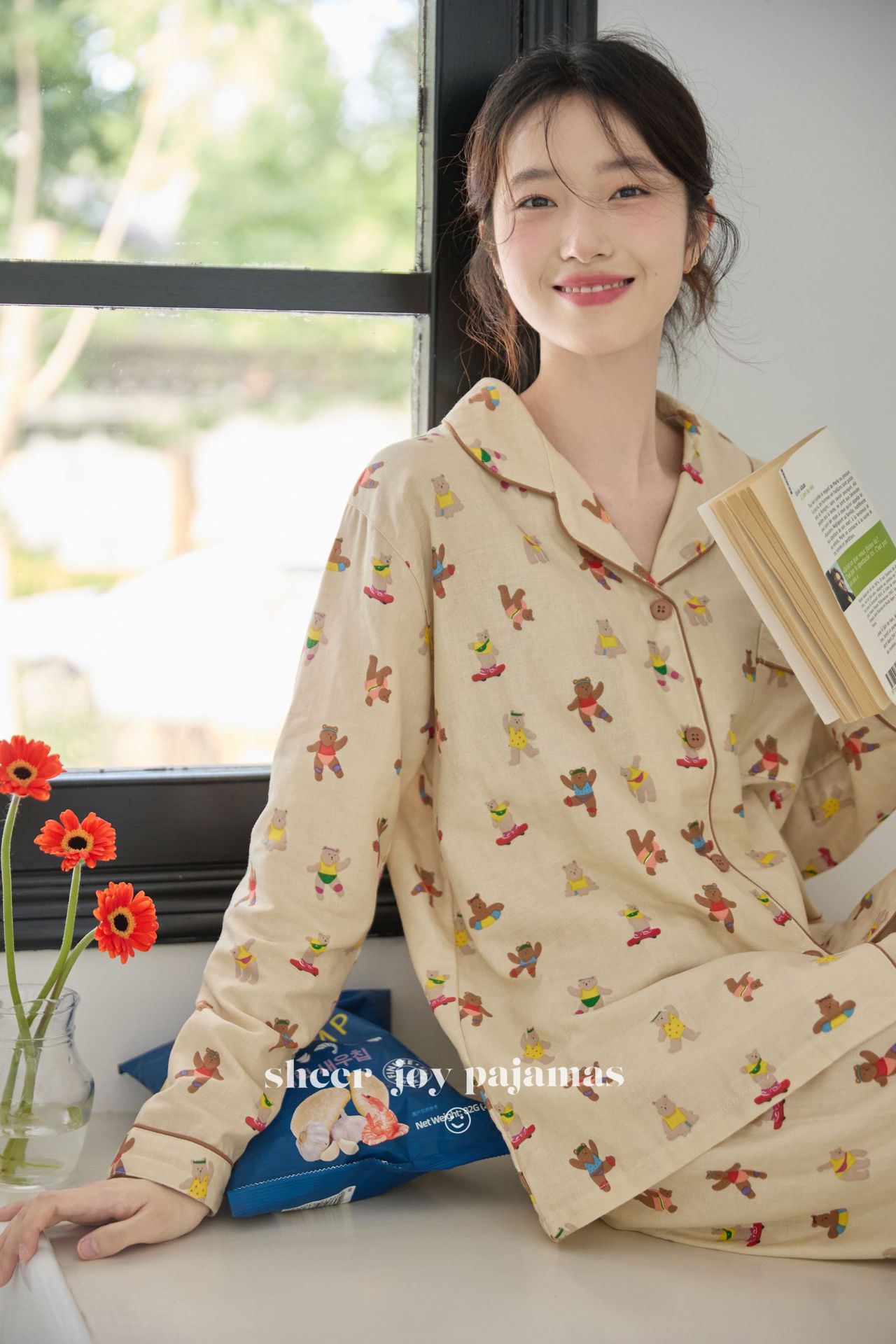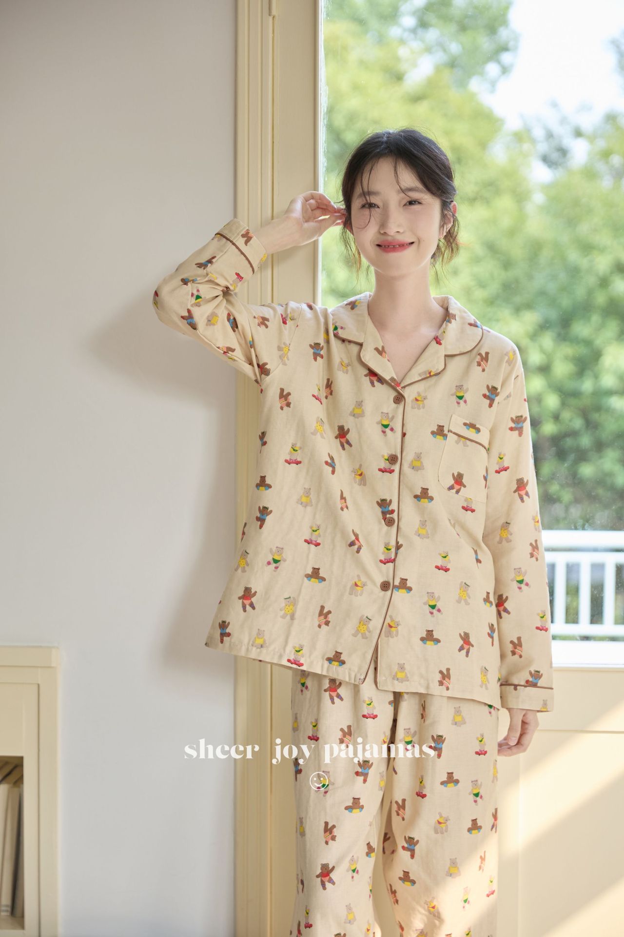 순수 면 더블 레이어 원사 임베디드 용어 부모 자식 긴팔 바지 홈 의류 세트 댄싱 베어스토어 가기