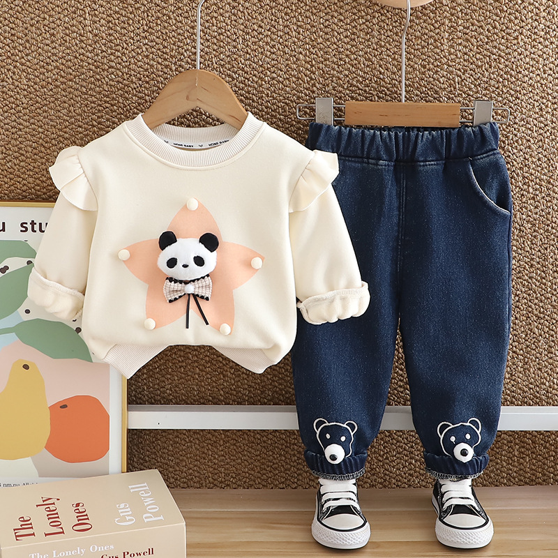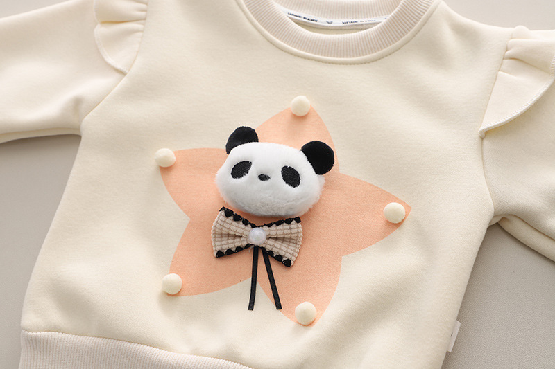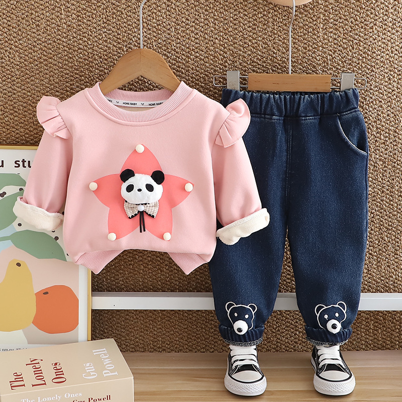 아동복 2024 가을과 겨울 새로운 한국 어린이 세트 다섯개 별 곰 소녀 기모 긴 소매 투피스 가을 의류