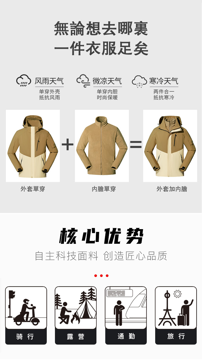 가을과 겨울 3 대 1 러시 의류 남성 야외 기모 두꺼운 여행 등산 2 피스 여성용 방풍 재킷 코트스토어 가기