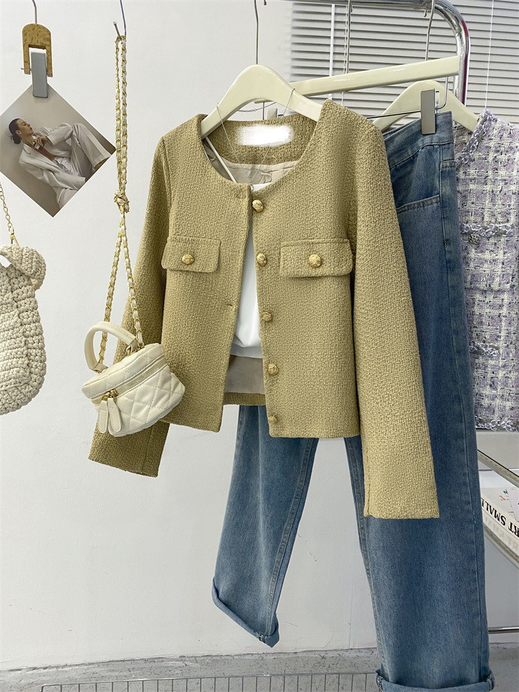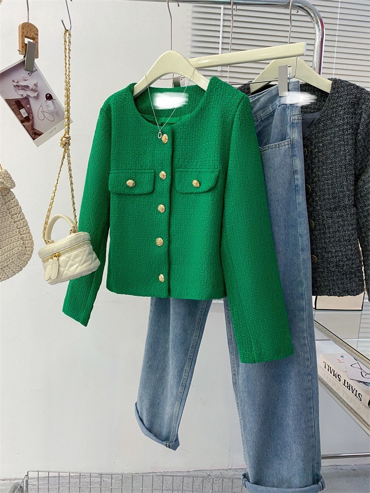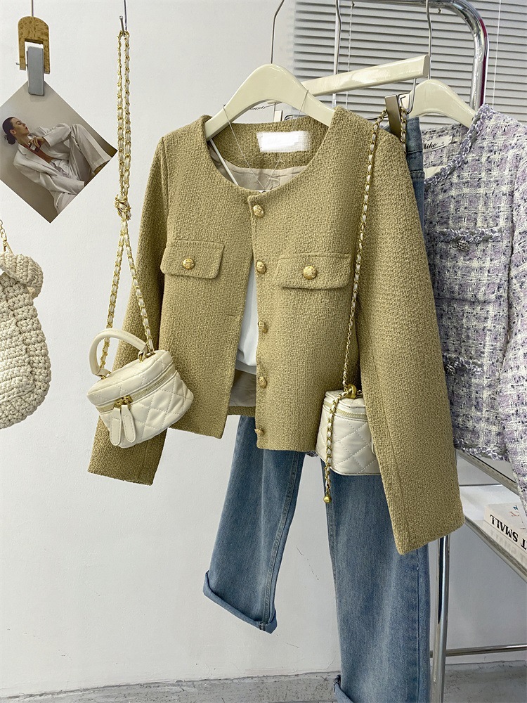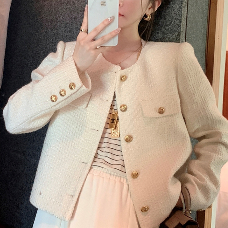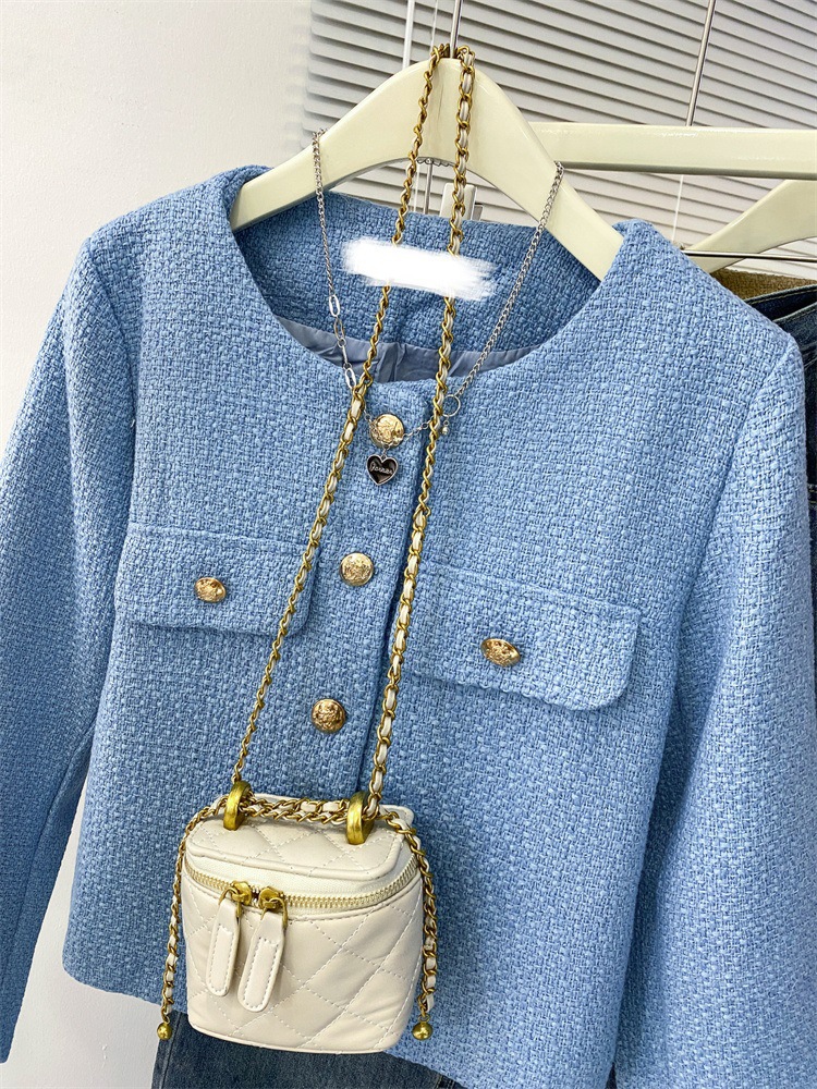 인터넷 연예인 같은 스타일 2024 트위드 스타일 코트 여성의 봄과 가을 짧은 하이 엔드 스타일 프라이팬 스트리트 우아한 여성 탑스토어 가기