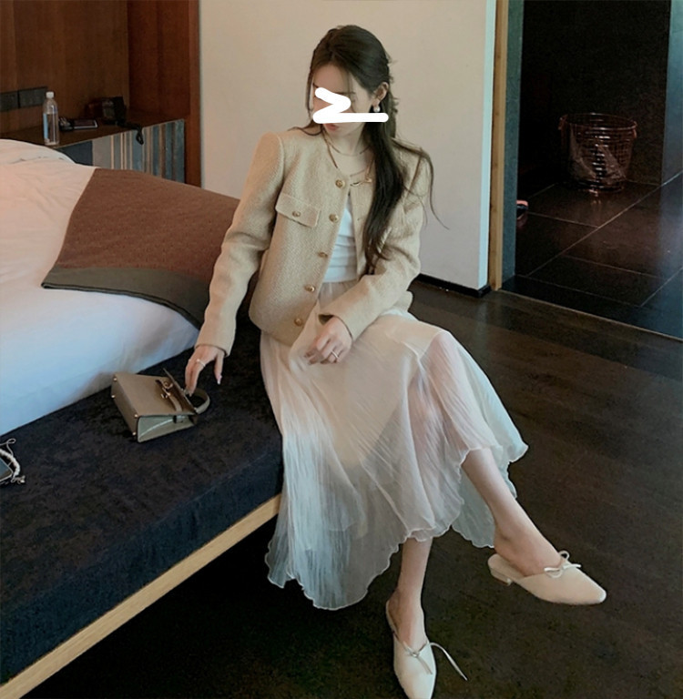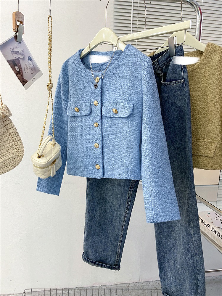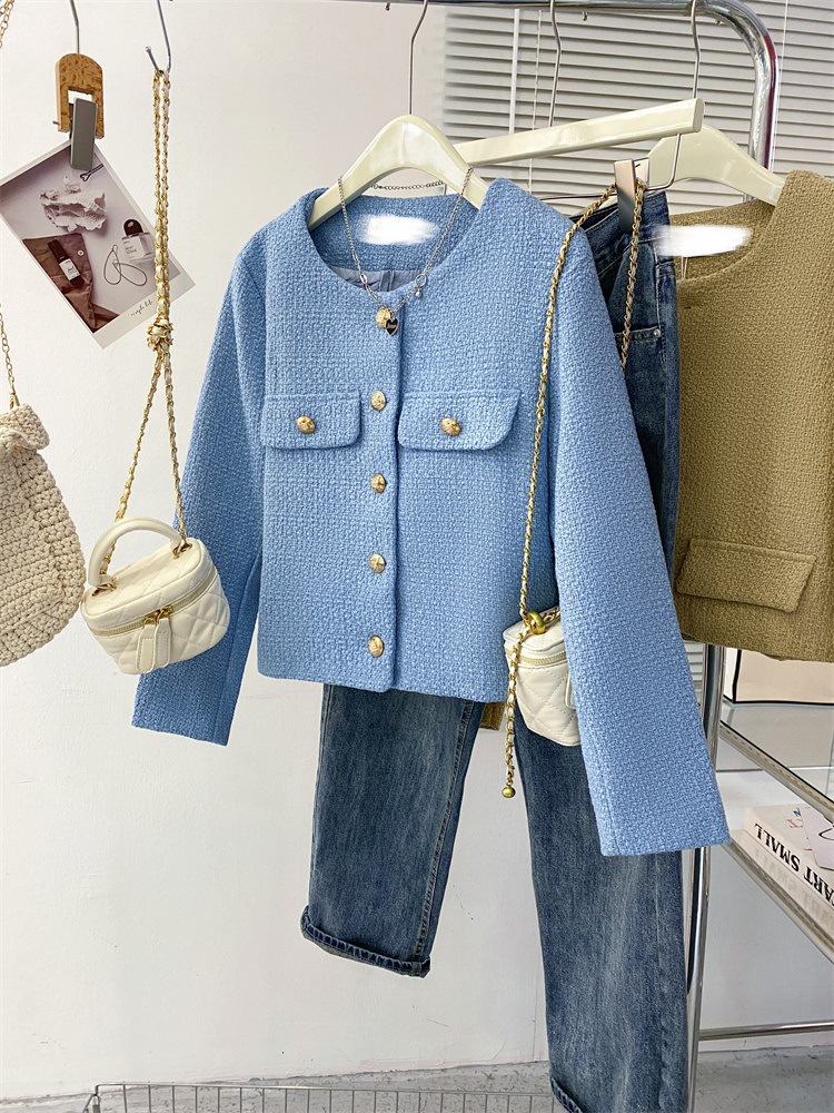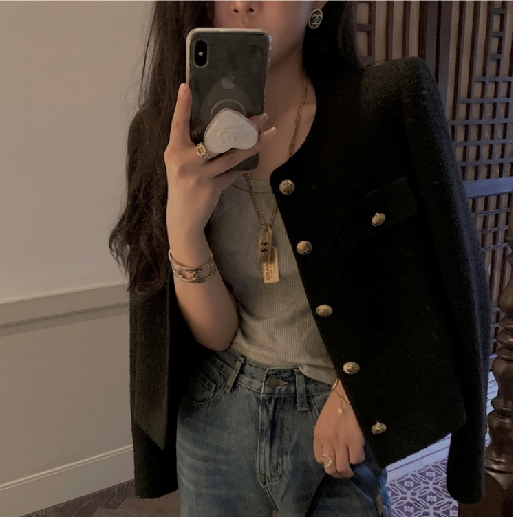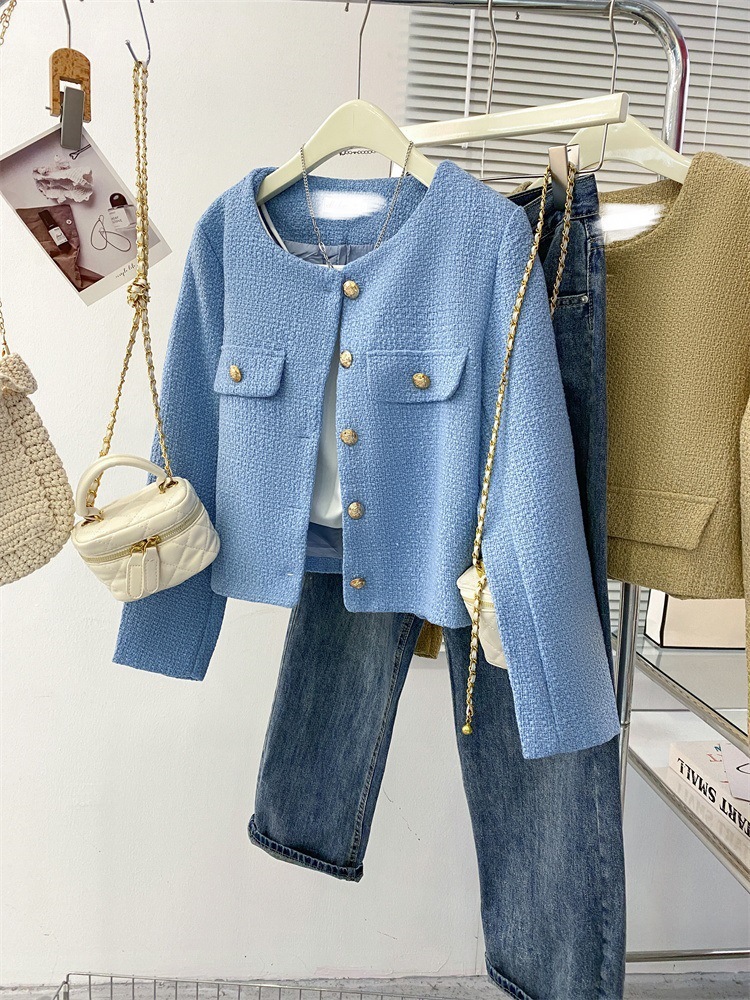 인터넷 연예인 같은 스타일 2024 트위드 스타일 코트 여성의 봄과 가을 짧은 하이 엔드 스타일 프라이팬 스트리트 우아한 여성 탑스토어 가기