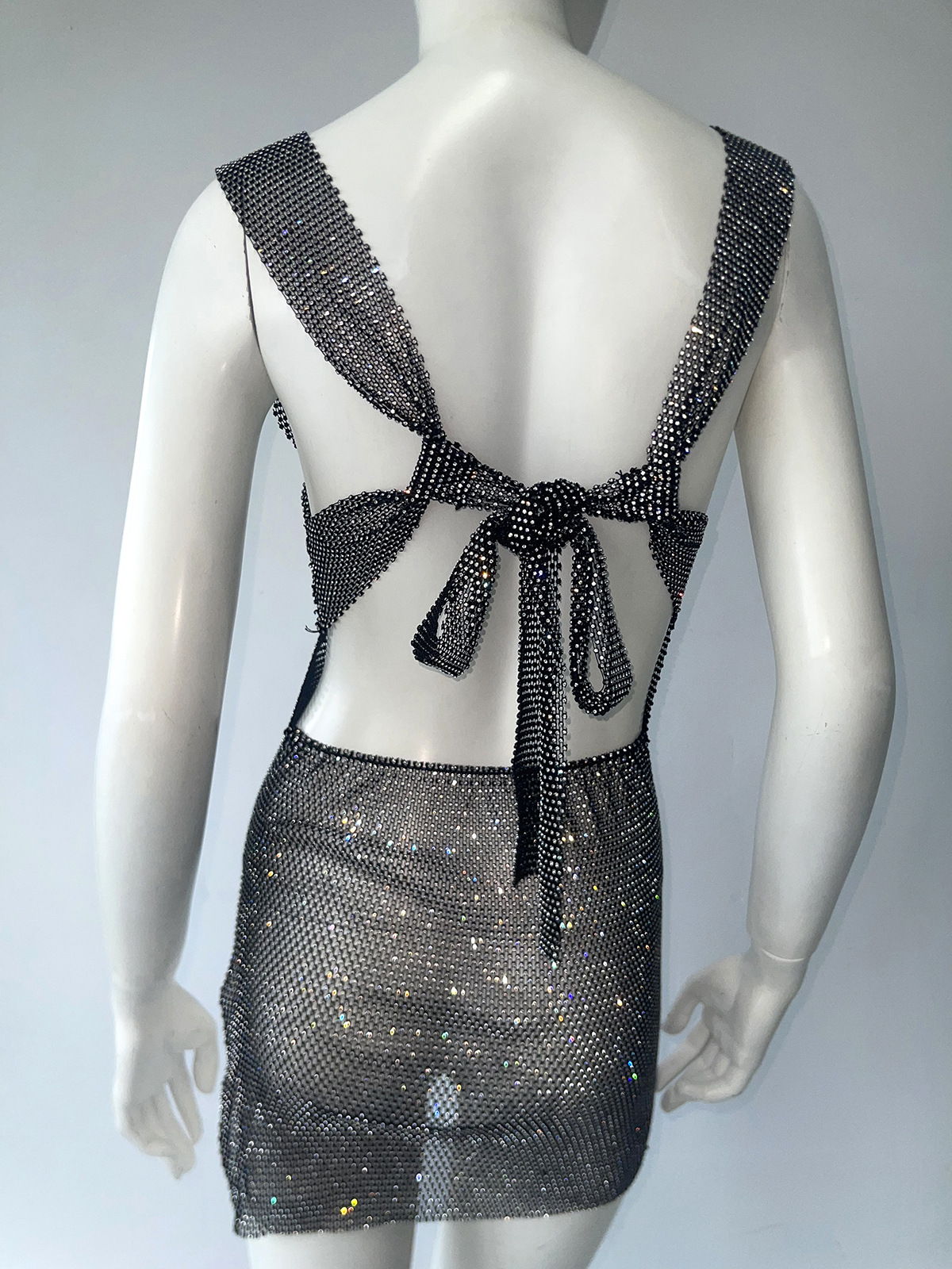 국경 새 디자인 감각 스트랩 활 원피스 모조 다이아몬드 메쉬 섹시한 나이트 클럽 스커트 고급 여성 의류스토어 가기