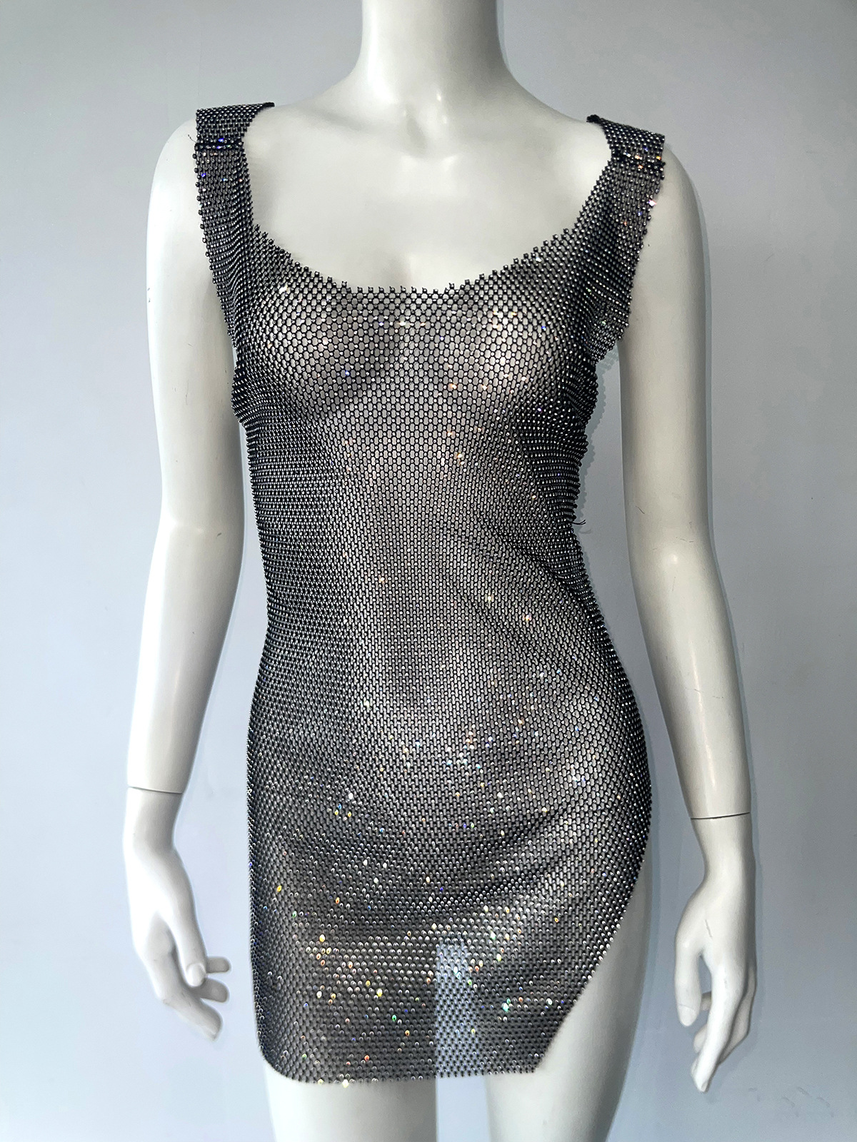 국경 새 디자인 감각 스트랩 활 원피스 모조 다이아몬드 메쉬 섹시한 나이트 클럽 스커트 고급 여성 의류