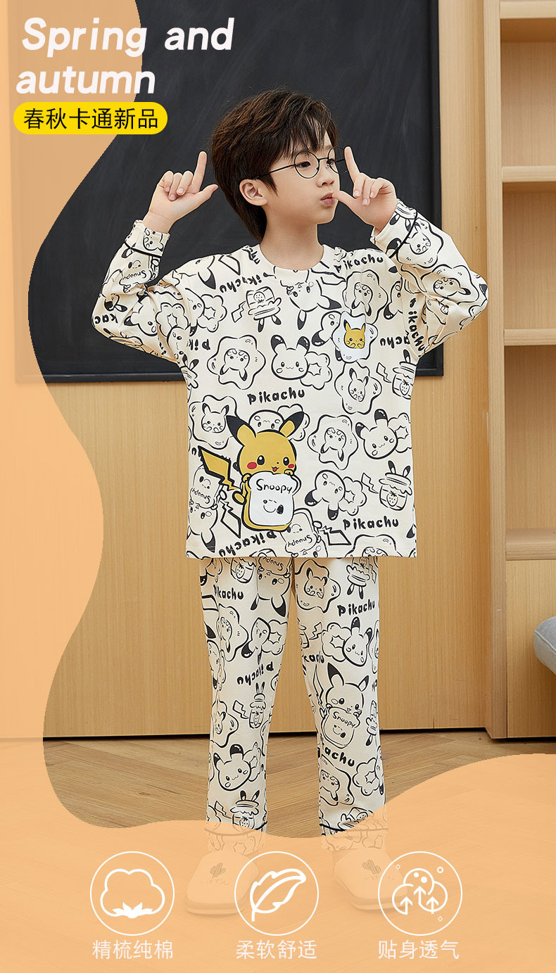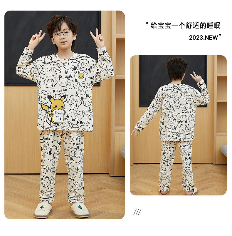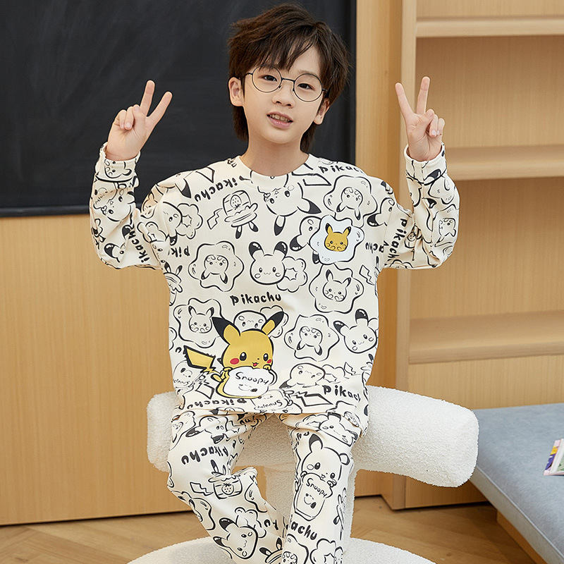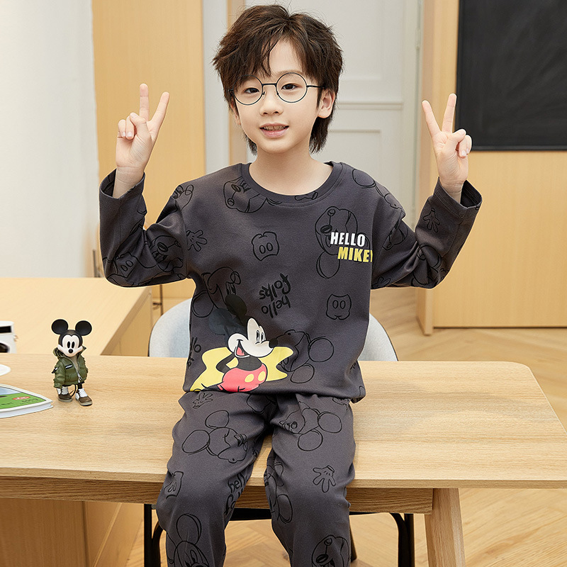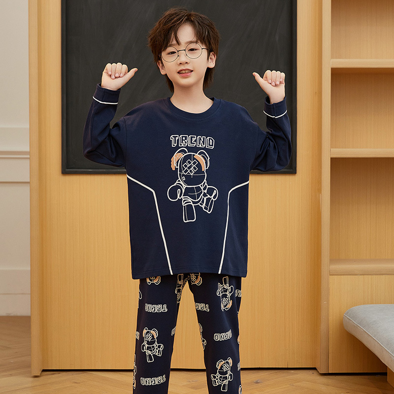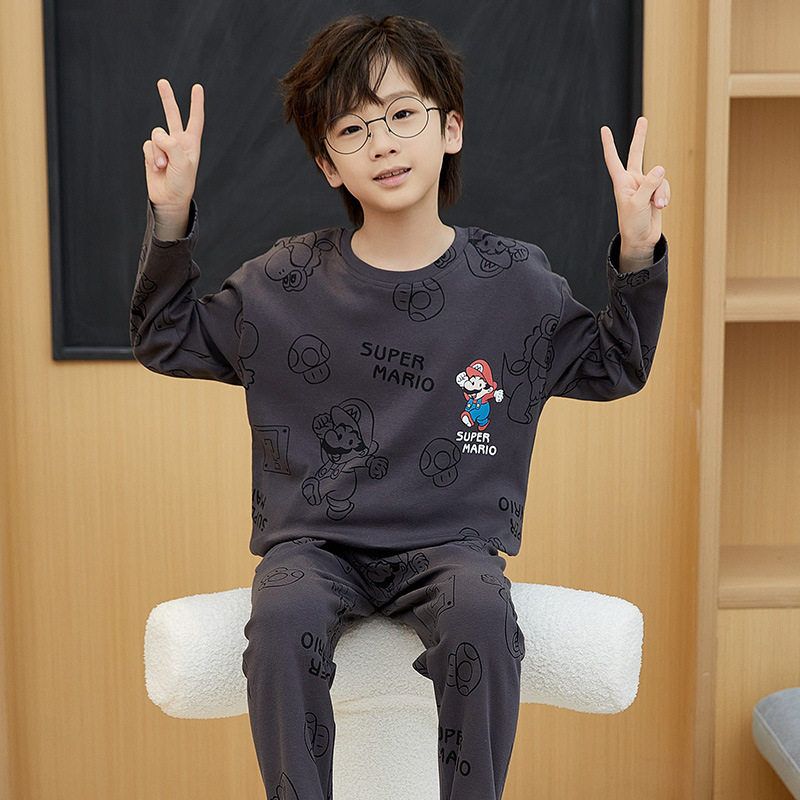 어린이 잠옷 새 스타일 봄과 가을 순면 긴 소매 풀오버 어린이 어린 소년 십대 빅 보이 홈 옷