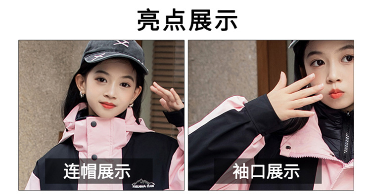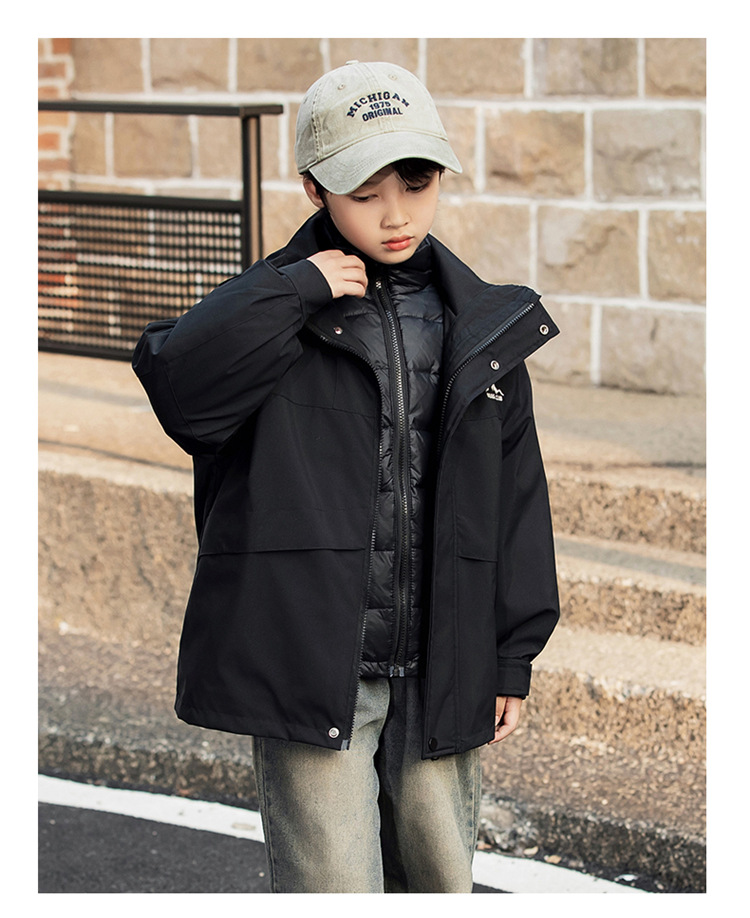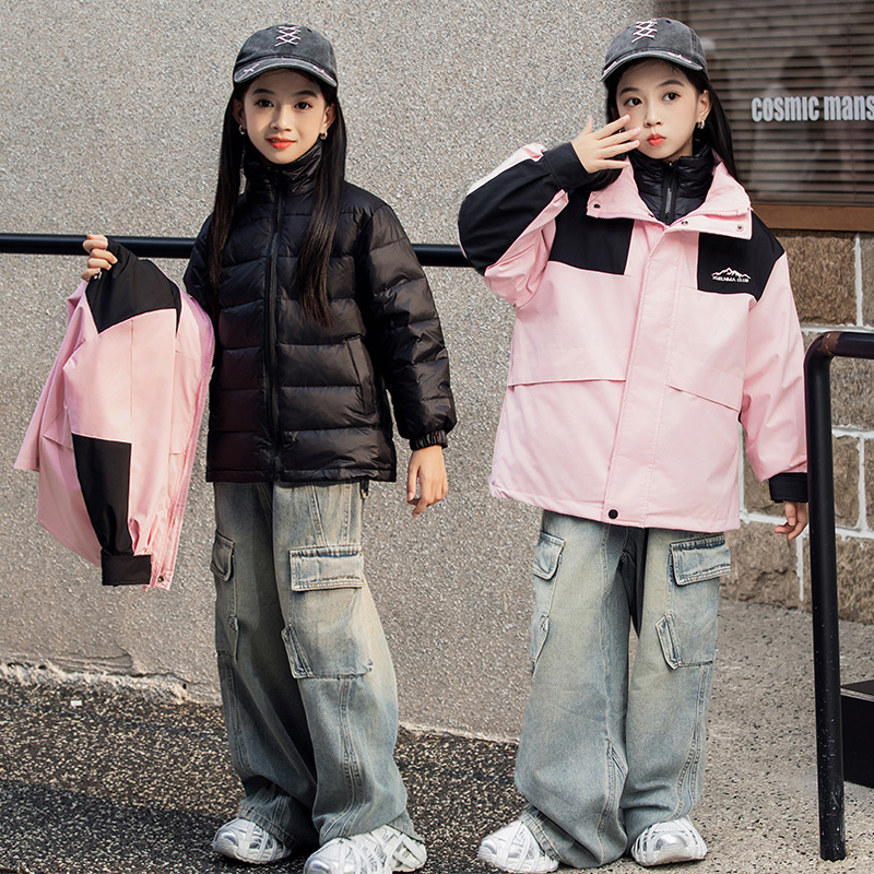 Three-in-one 새로운 어린이 다운 재킷 겨울 남학생과 여학생 중 큰 어린이의 두꺼운 따뜻한 재킷