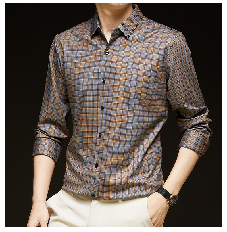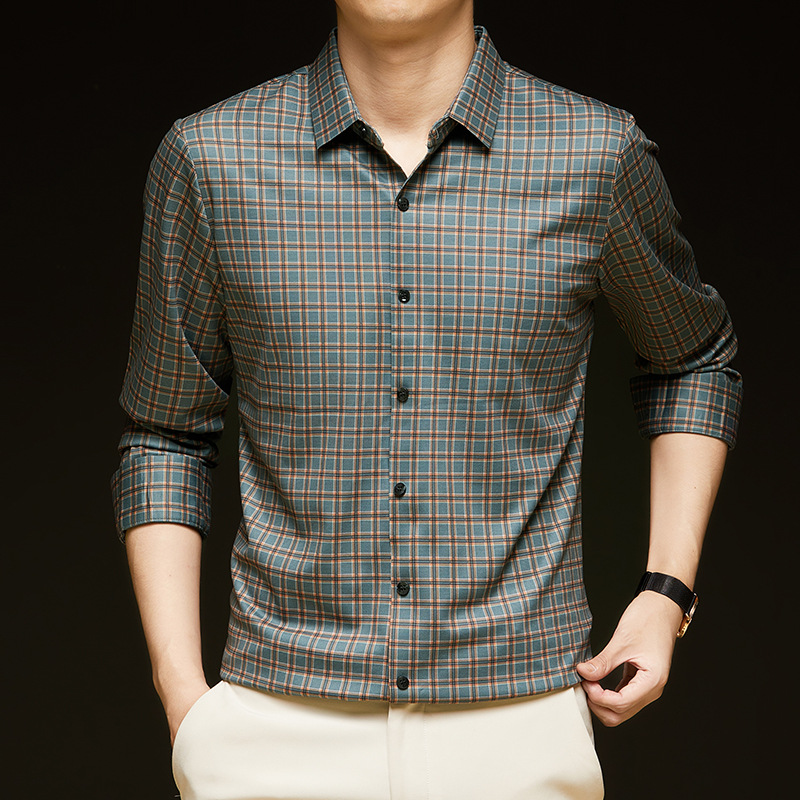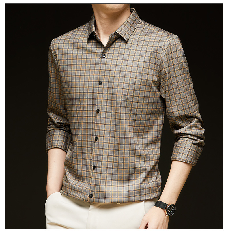 하이 엔드 남성 청소년 새로운 체크 무늬 간단한 셔츠 옷깃 긴 소매 봄과 가을 비즈니스 캐주얼 패션 공식 탑스토어 가기