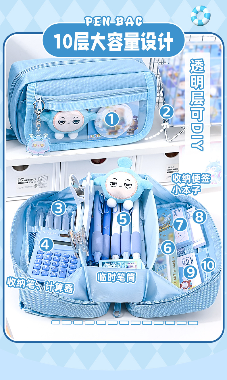 에그 파티 연필 가방 고 부가가치 연필 가방 대형 용량 더티 저항하는 틈새 문구 가방 초중고생 용 문구 상자