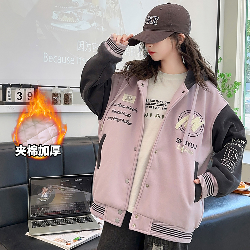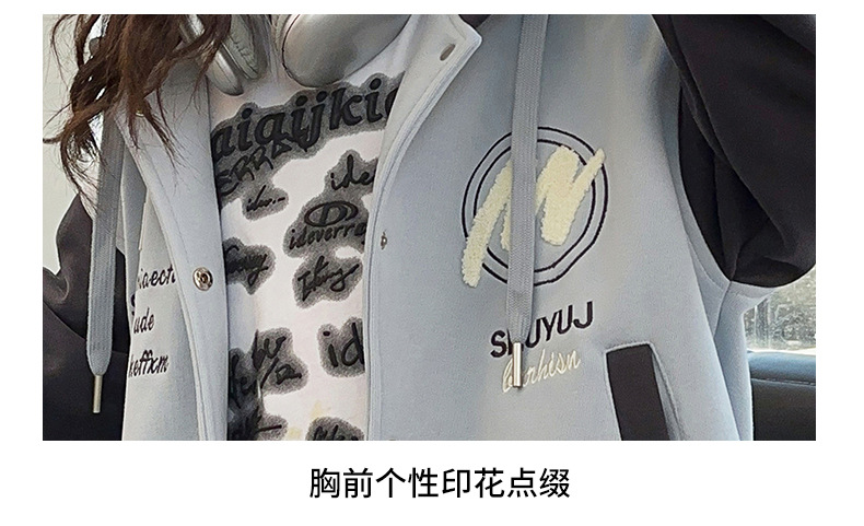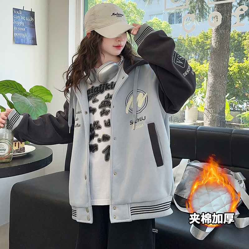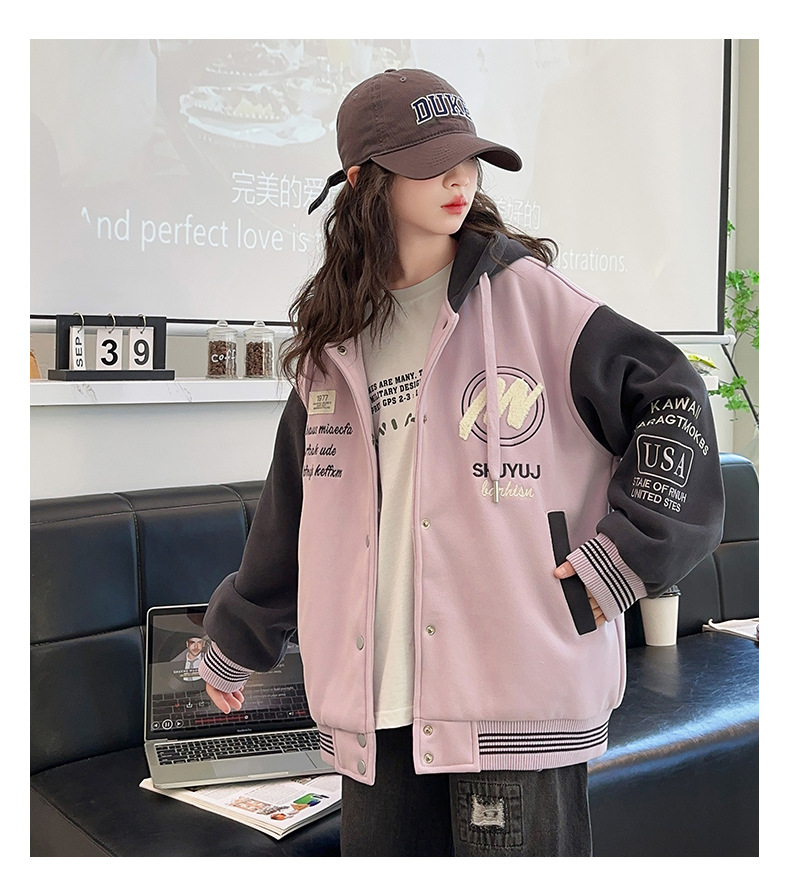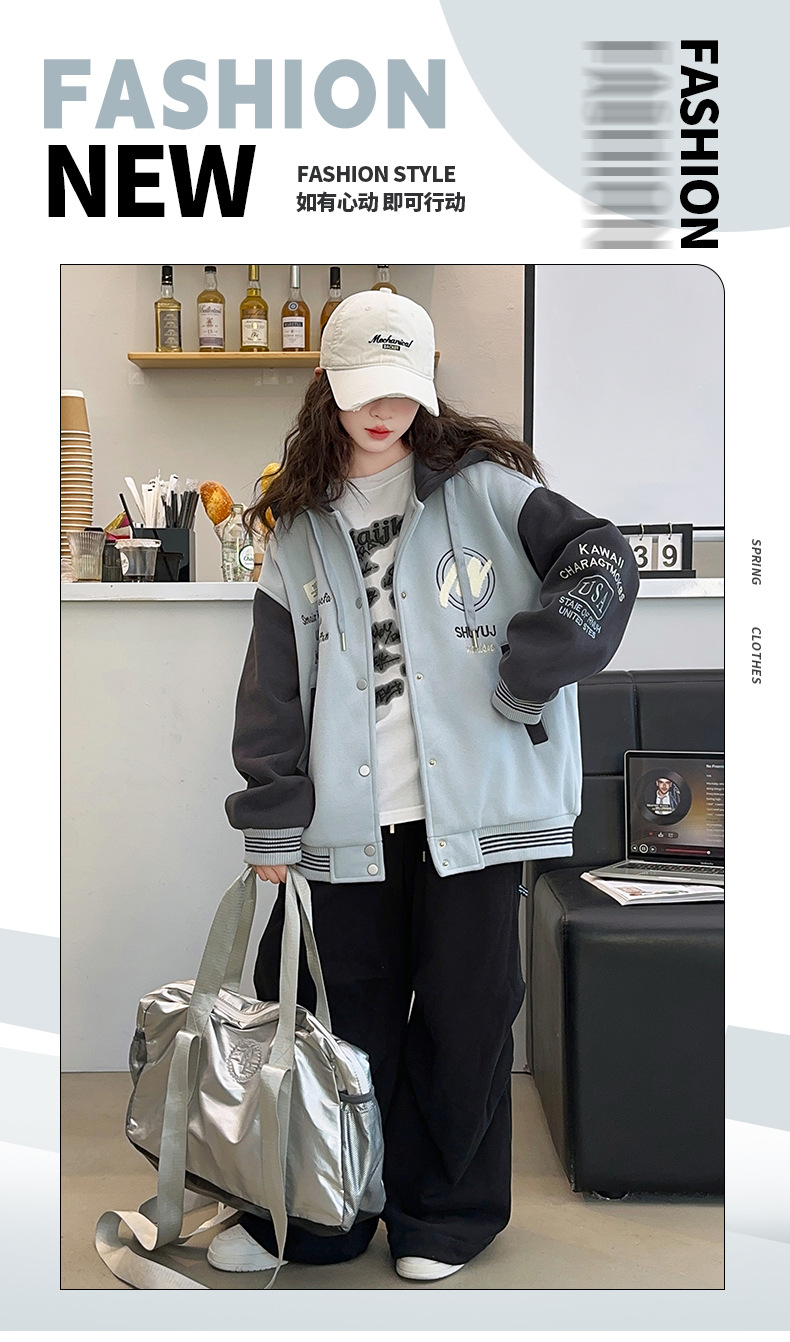 소녀 코트 봄과 가을 2025 새로운 어린이 서양 스타일 느슨한 캐주얼 후드 탑 어린이 가을 야구 세트스토어 가기