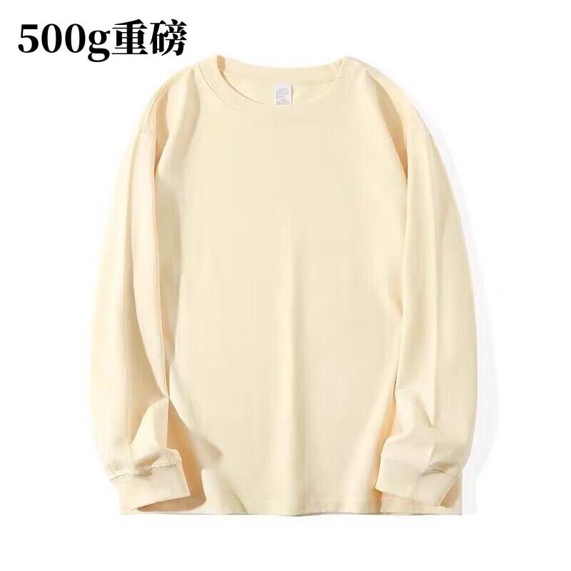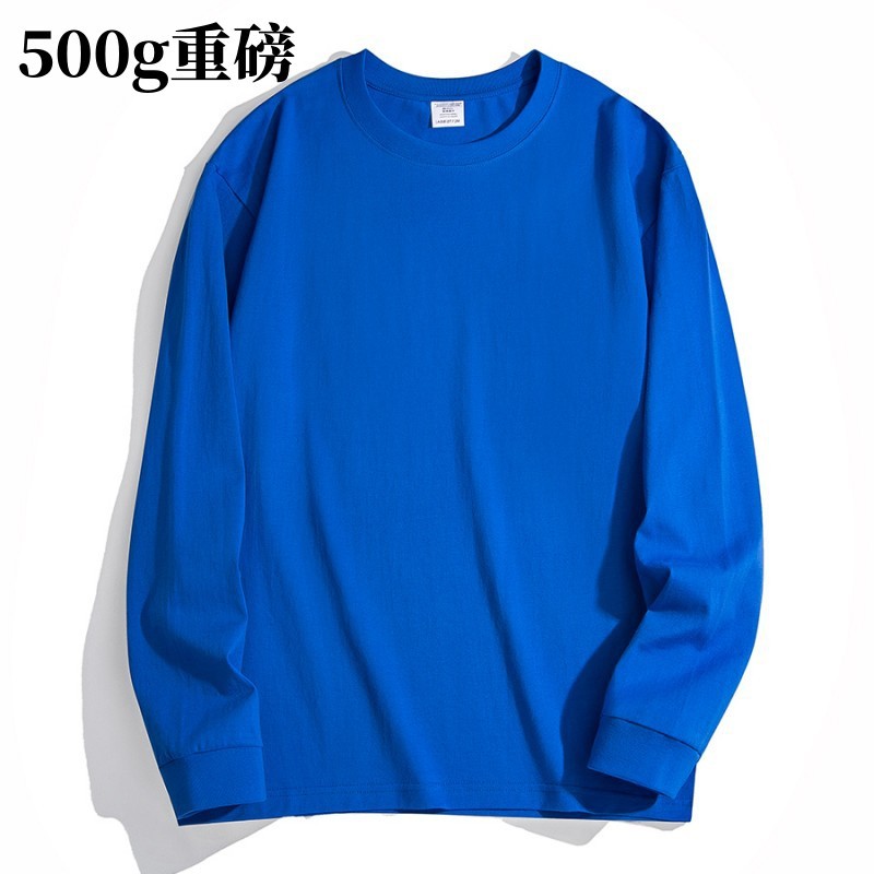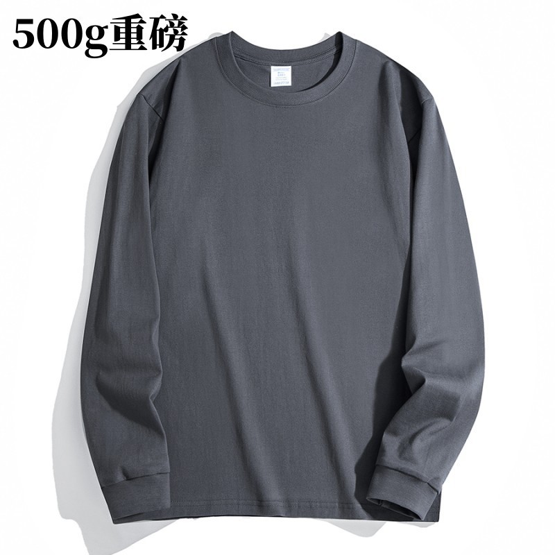 500g 헤비 퓨어 코튼 솔리드 컬러 티셔츠 남성과 여성베이스 셔츠 화이트 바디 셔츠 (순수 블랙 탑 남성용 롱 슬리브 티셔츠)스토어 가기