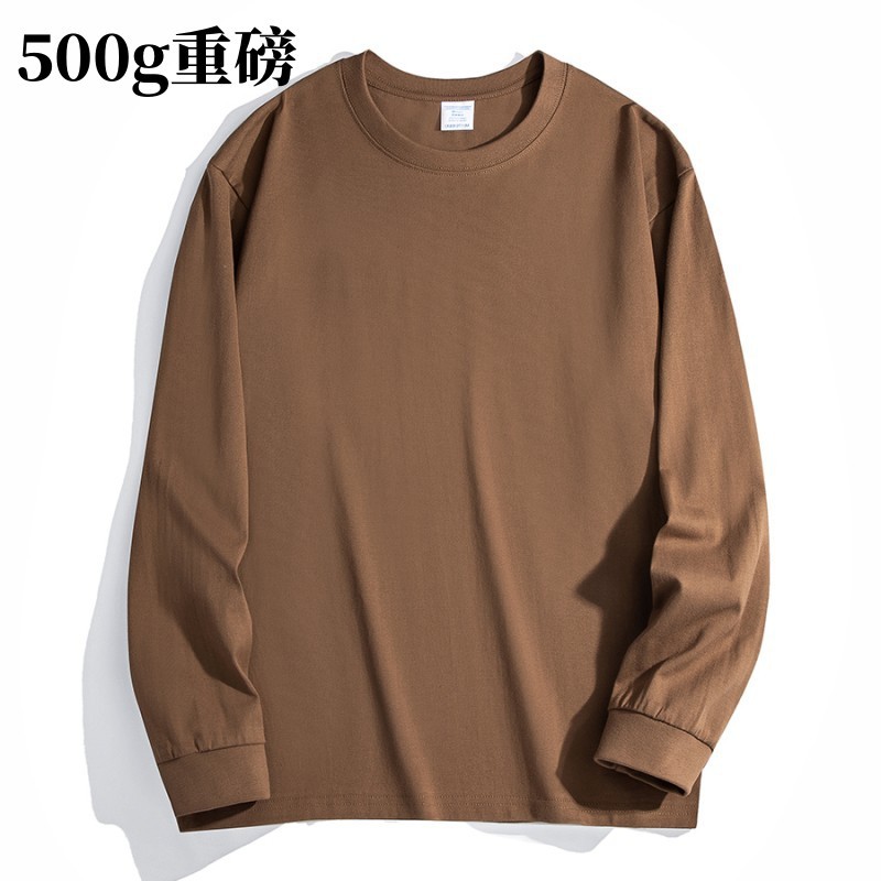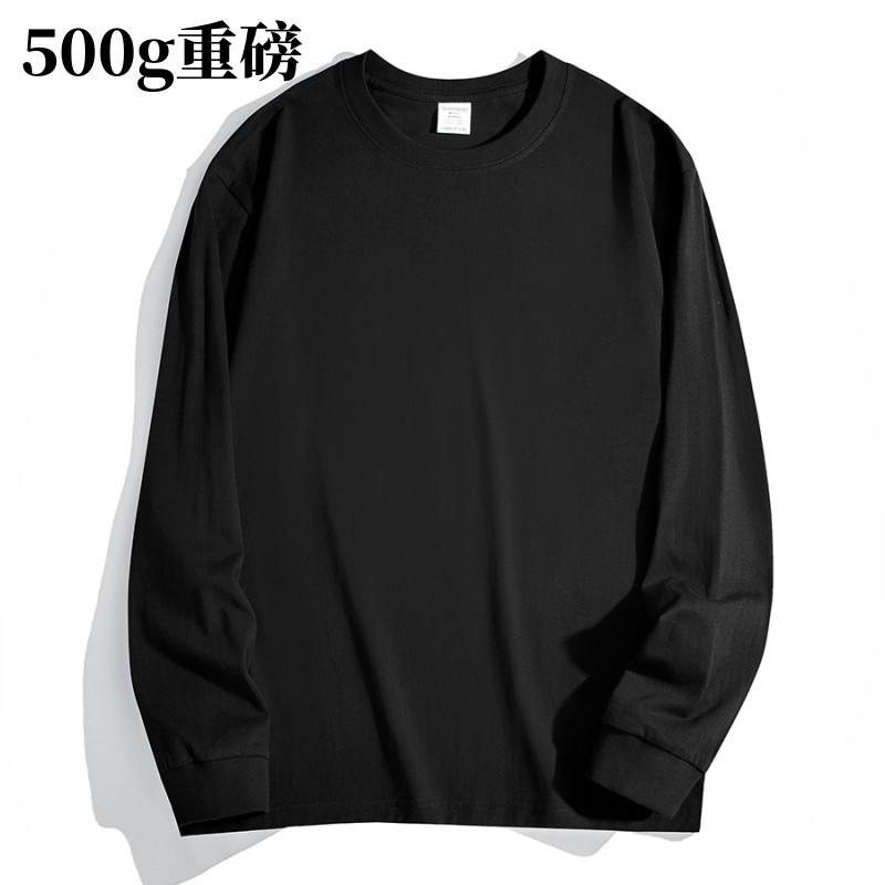 500g 헤비 퓨어 코튼 솔리드 컬러 티셔츠 남성과 여성베이스 셔츠 화이트 바디 셔츠 (순수 블랙 탑 남성용 롱 슬리브 티셔츠)