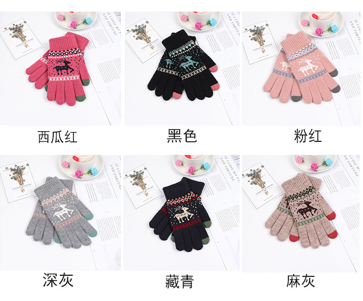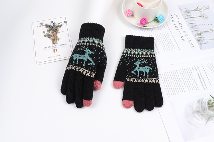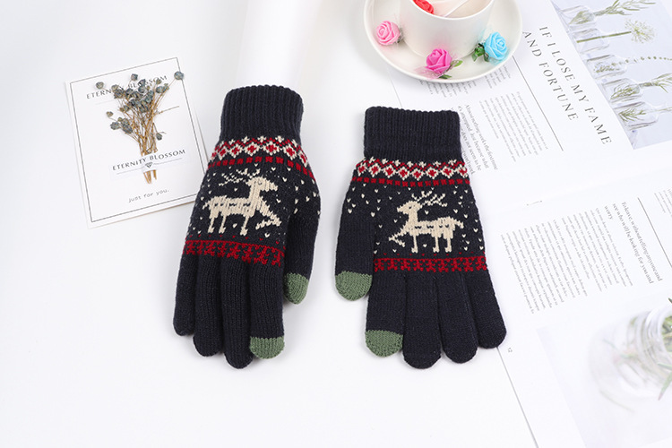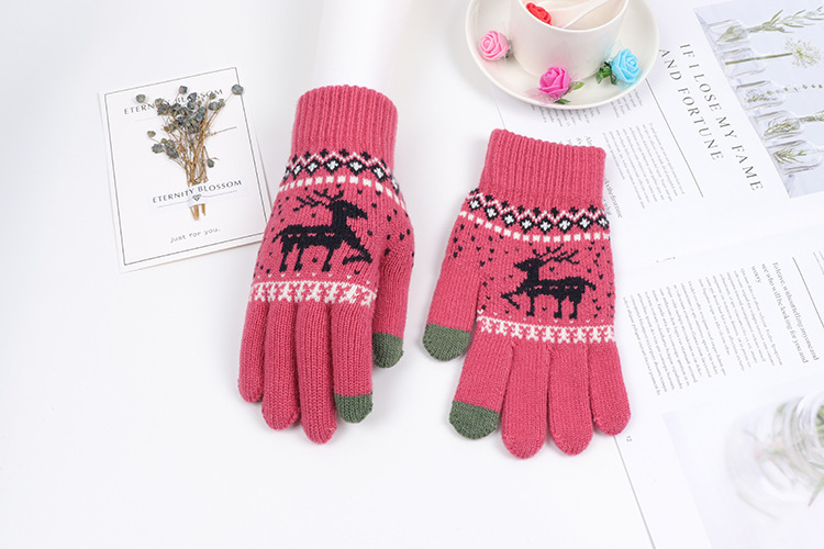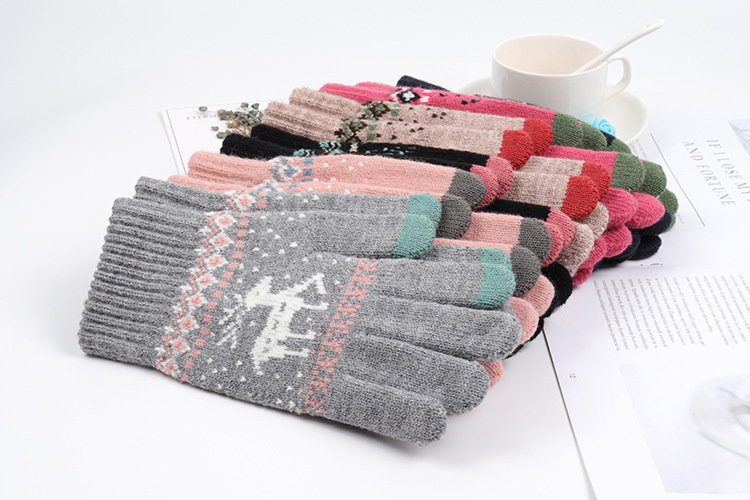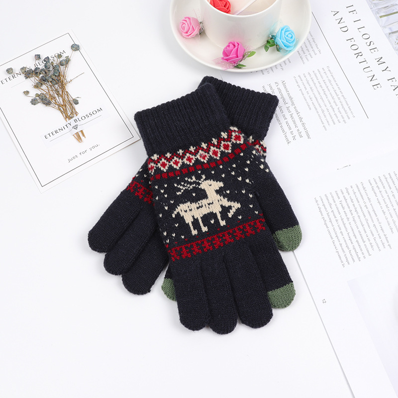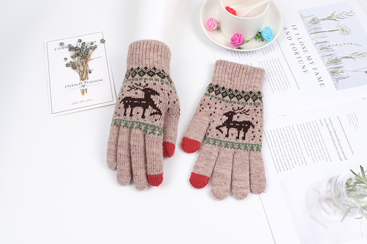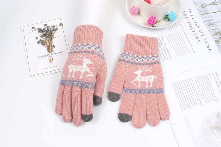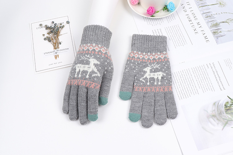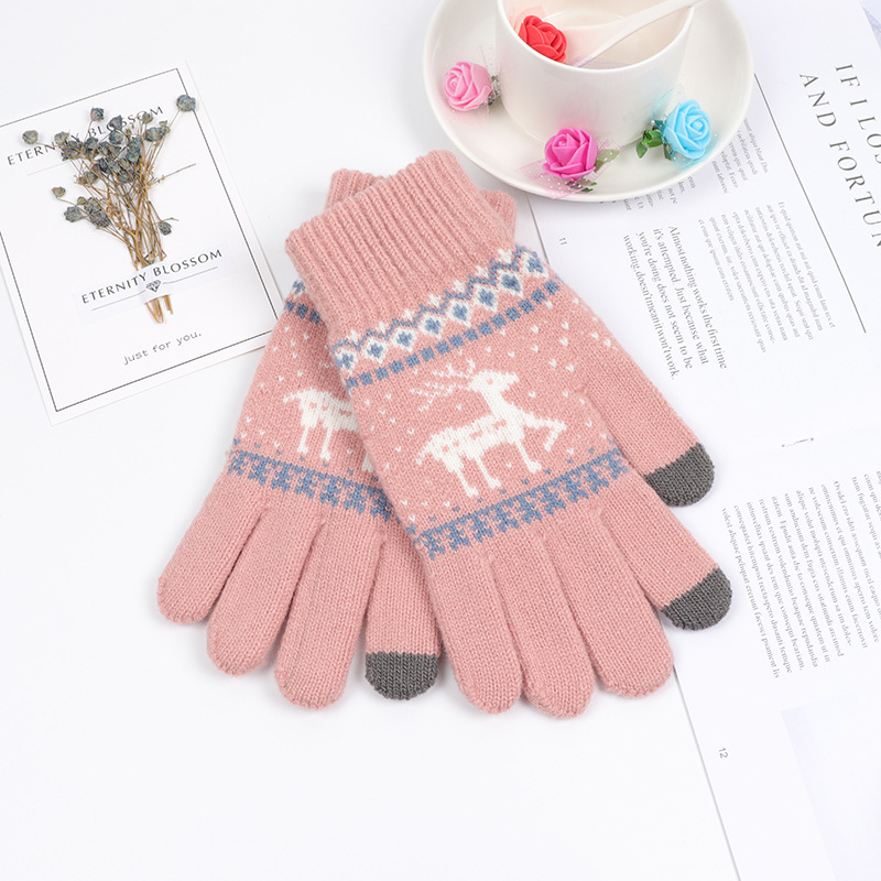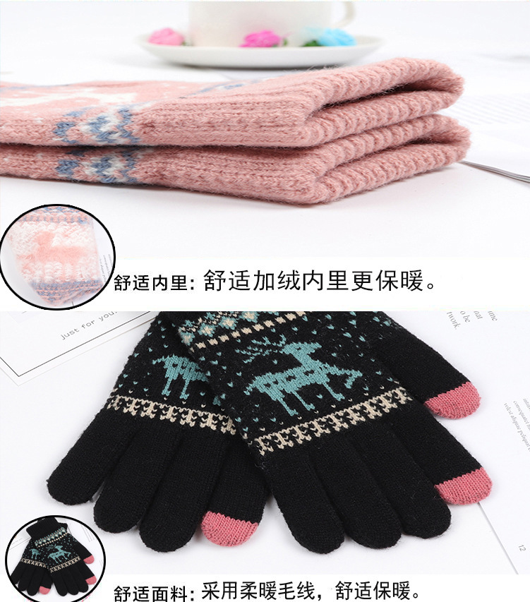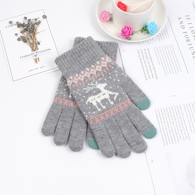 한국 스타일 가을 겨울 여성용 따뜻한 터치스크린 니트 장갑 패션 사슴 프린트 크리스마스 커플용 성인용