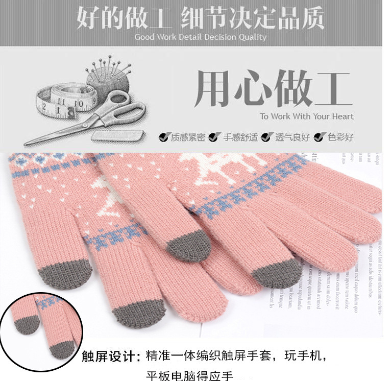 한국 스타일 가을 겨울 여성용 따뜻한 터치스크린 니트 장갑 패션 사슴 프린트 크리스마스 커플용 성인용스토어 가기