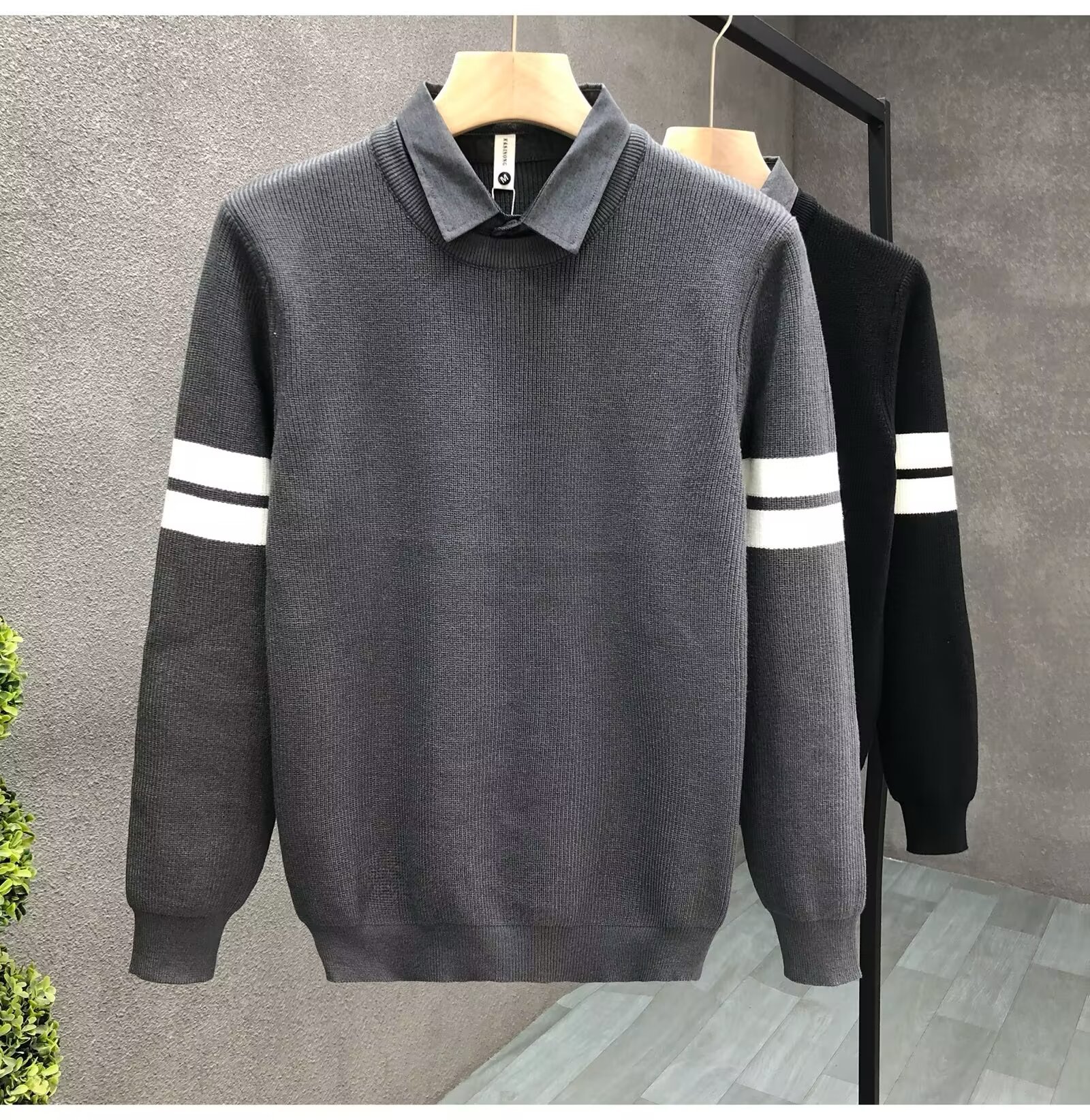 가짜 투피스 스웨터 남성용 트렌디 브랜드 셔츠 칼라 내베이스 셔츠 가을과 겨울 뉴 남성용 슬림 핏 옷깃 스웨터