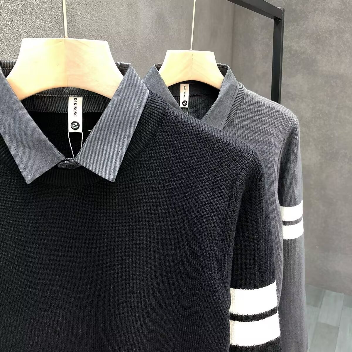 가짜 투피스 스웨터 남성용 트렌디 브랜드 셔츠 칼라 내베이스 셔츠 가을과 겨울 뉴 남성용 슬림 핏 옷깃 스웨터스토어 가기