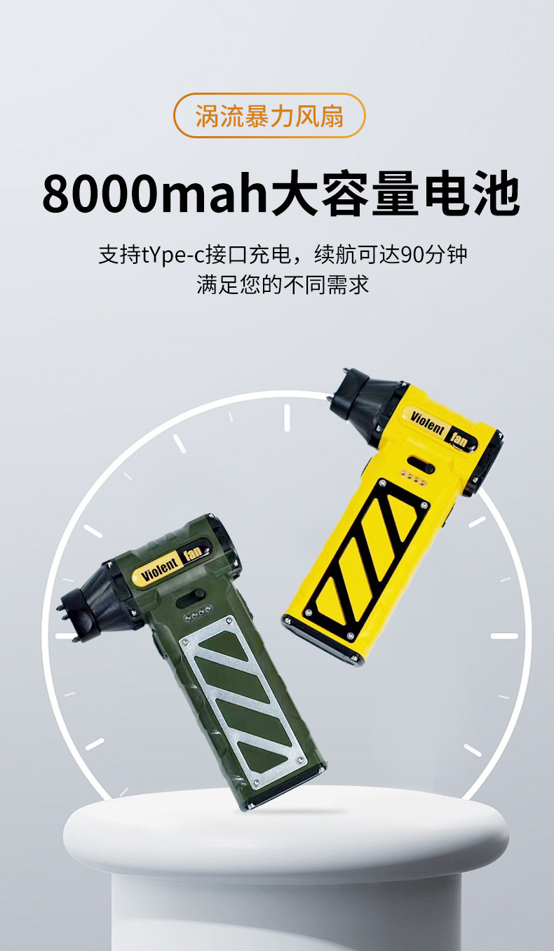 국경 간 야외 핸드 헬드 팬 캠핑 USB 무전해 폭력 팬 브러시리스 모터 미니 터보 팬 도매스토어 가기