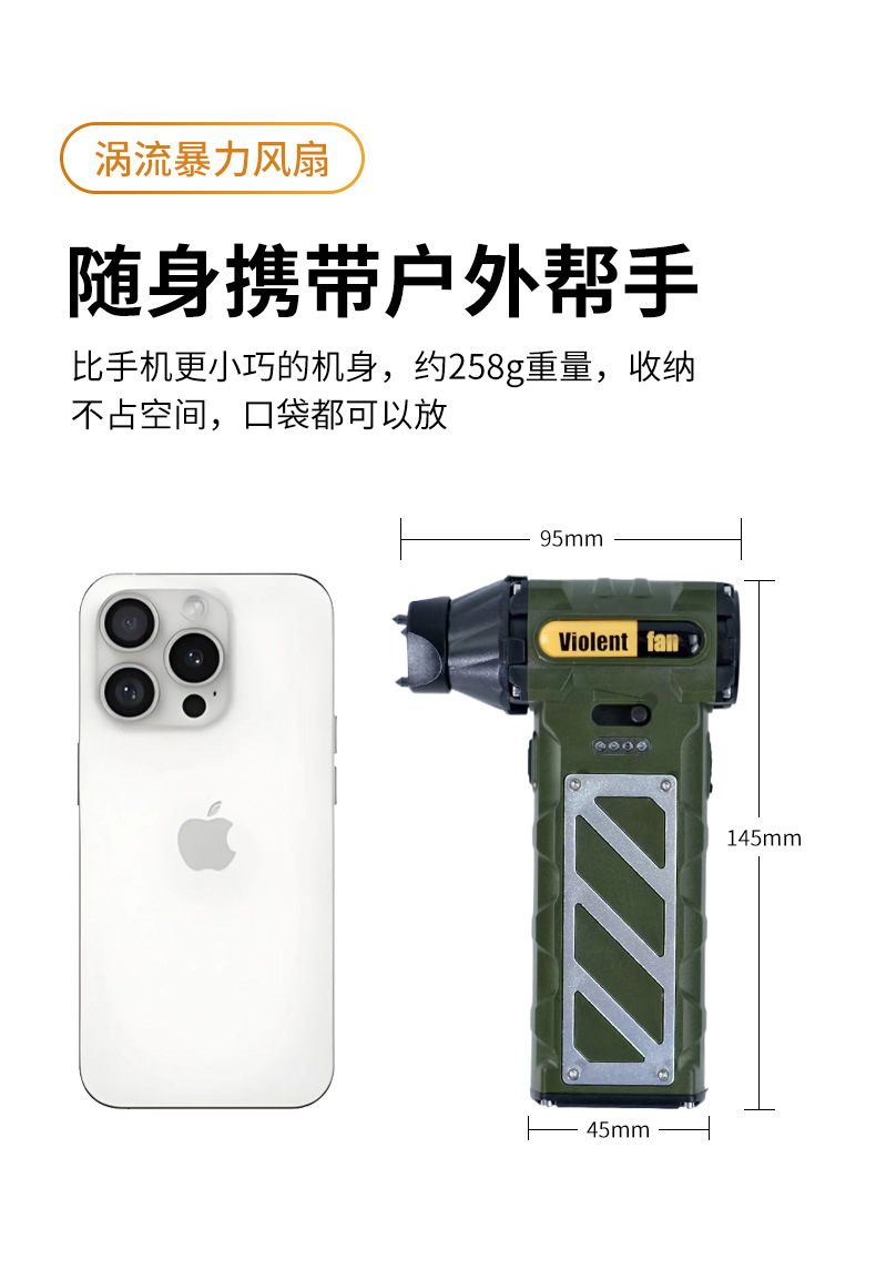 국경 간 야외 핸드 헬드 팬 캠핑 USB 무전해 폭력 팬 브러시리스 모터 미니 터보 팬 도매