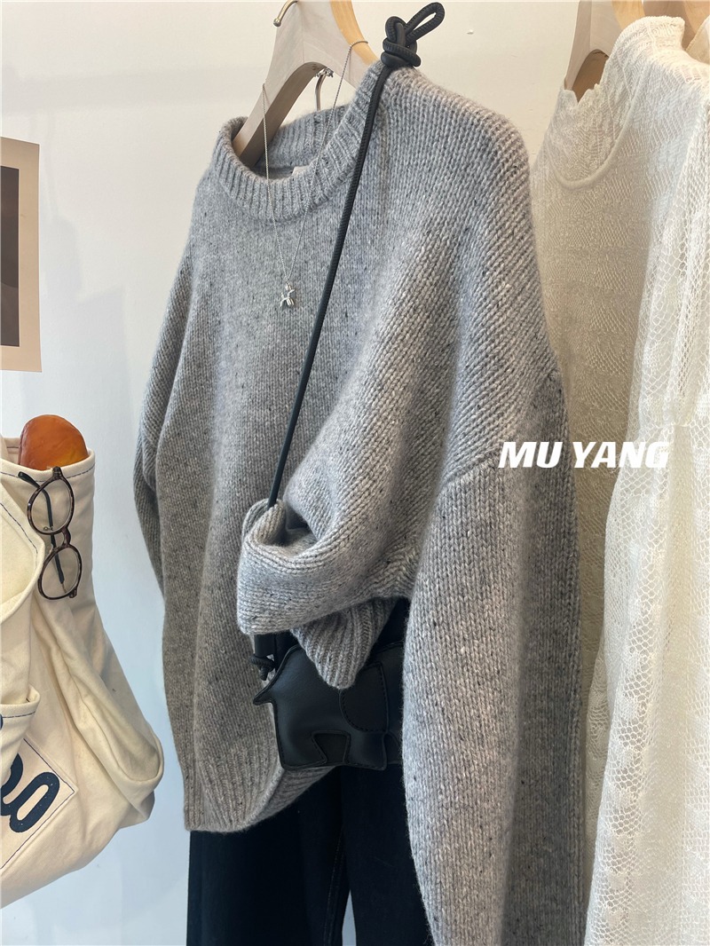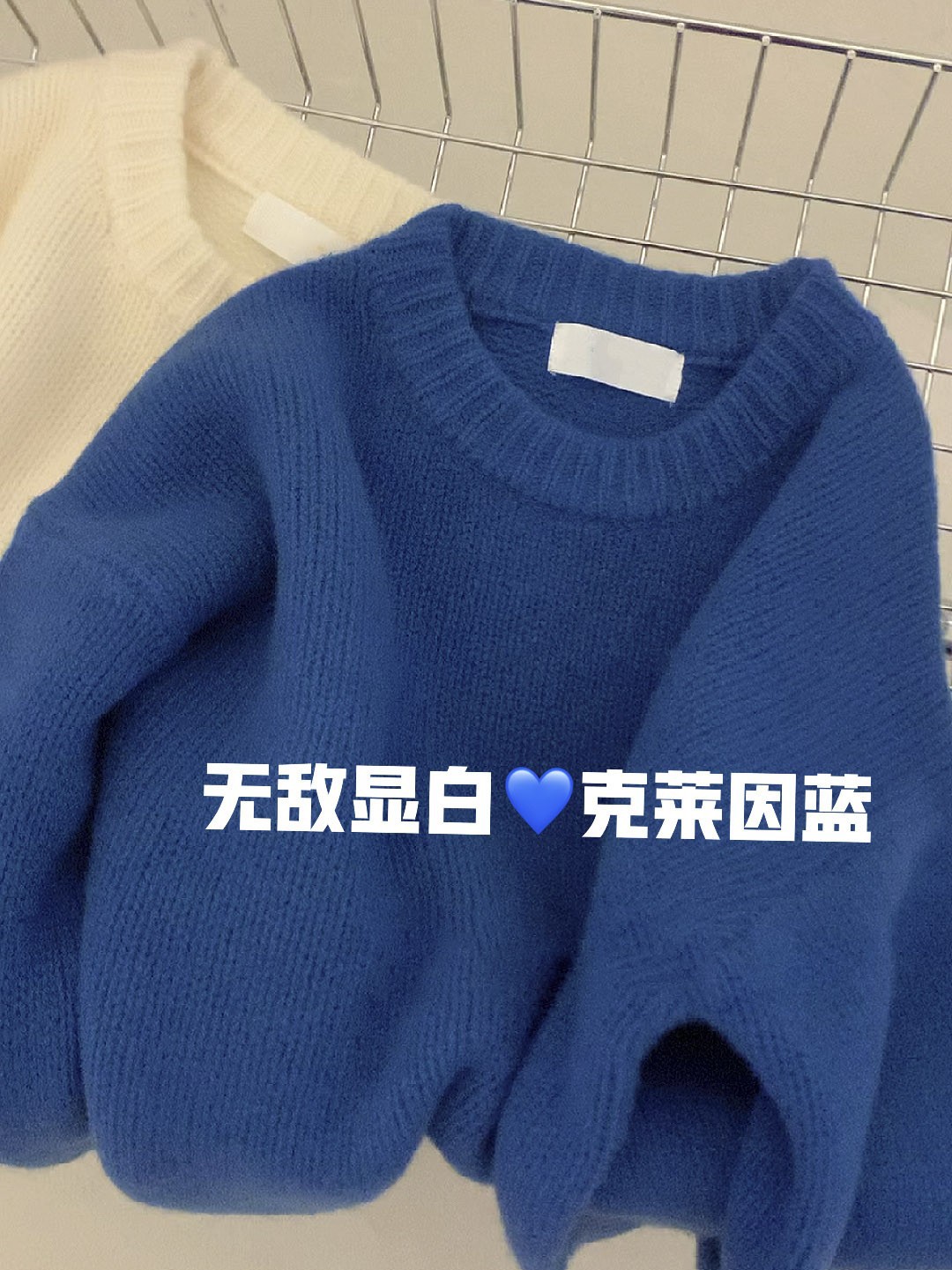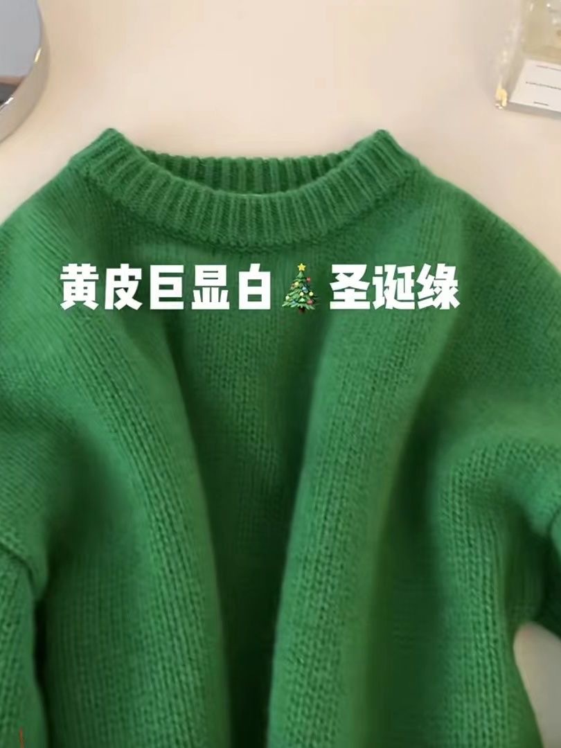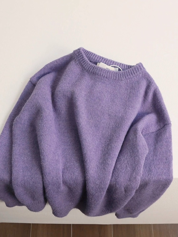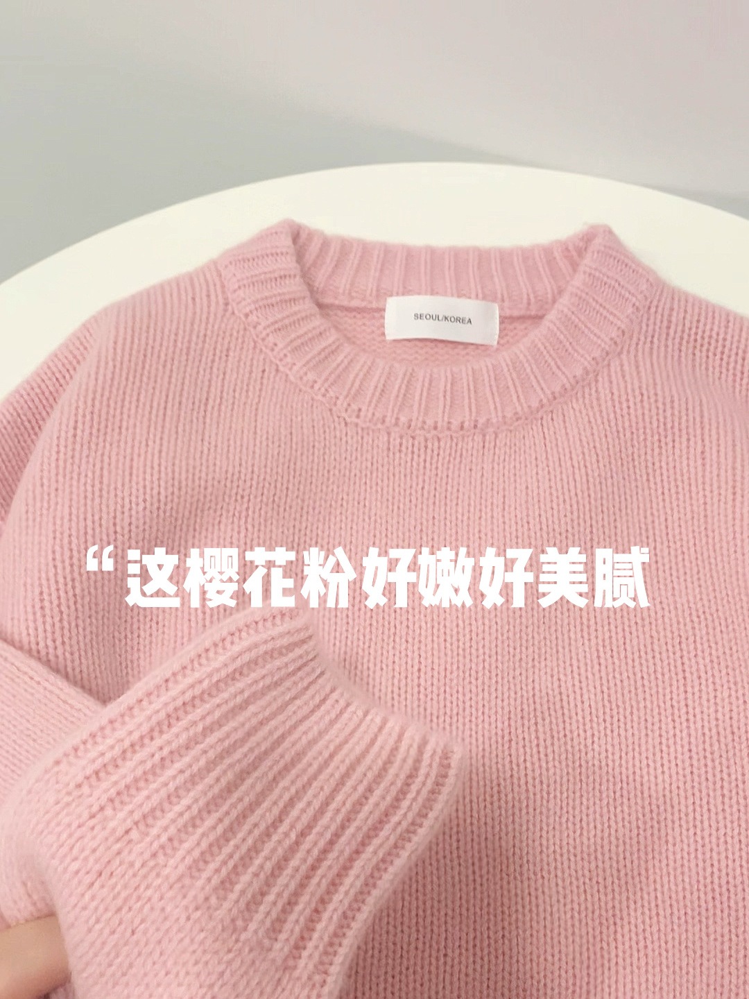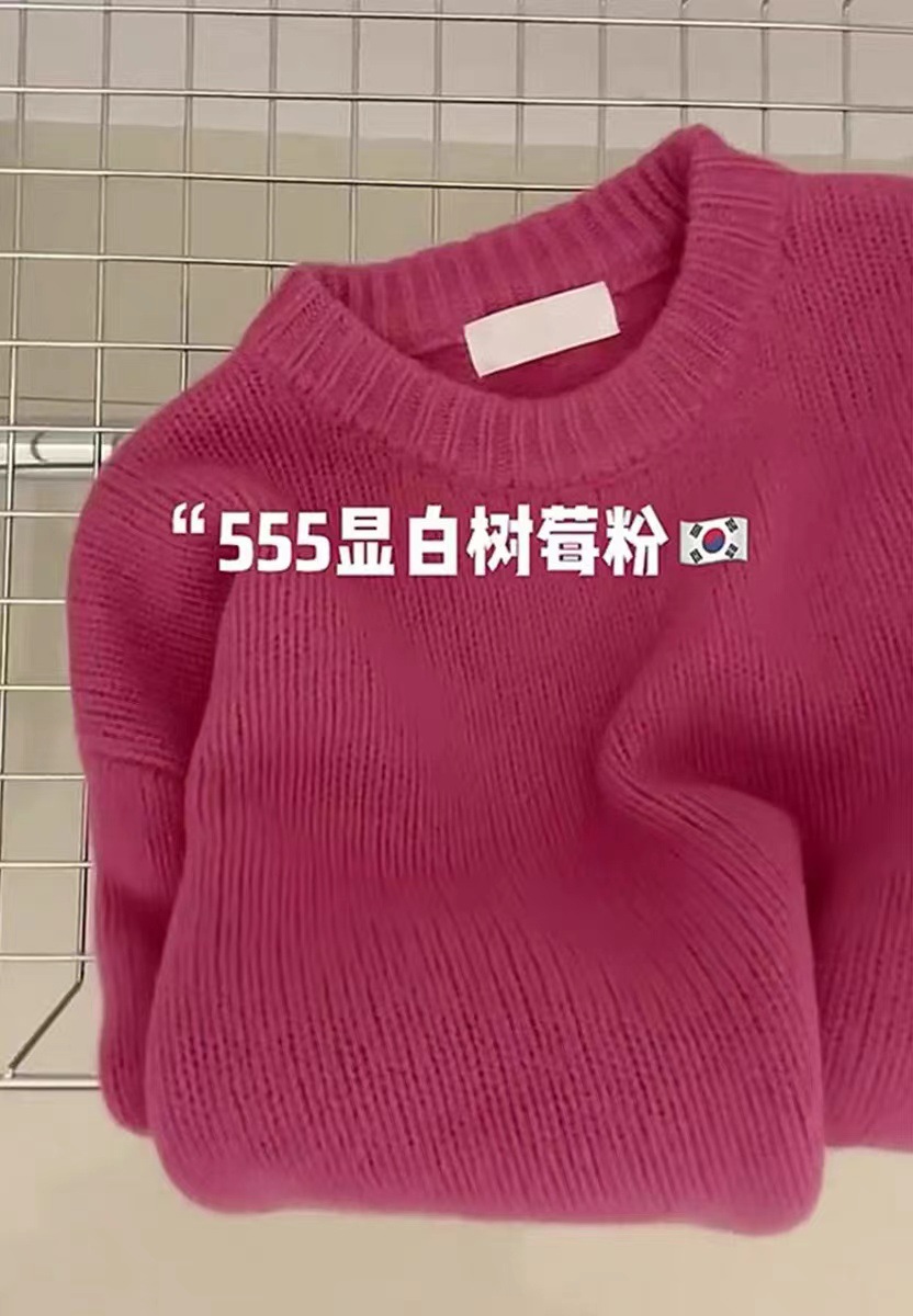绵羊绒#温柔慵懒风玫红色套头毛衣女秋冬小众高级感纯色针织衫