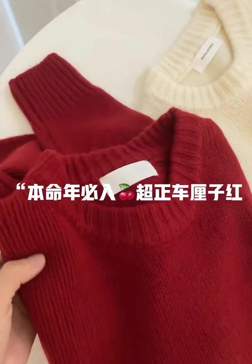 캐시미어 젠틀 게으른 스타일 로즈 레드 풀오버 스웨터 여성의 가을과 겨울 틈새 하이 엔드 솔리드 컬러 여성용 스웨터