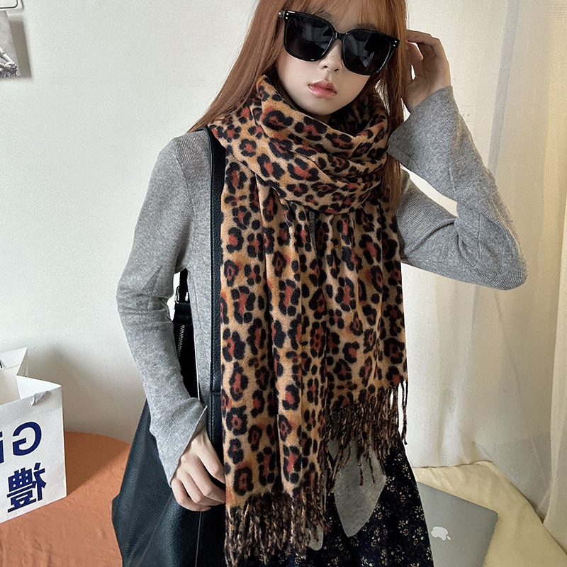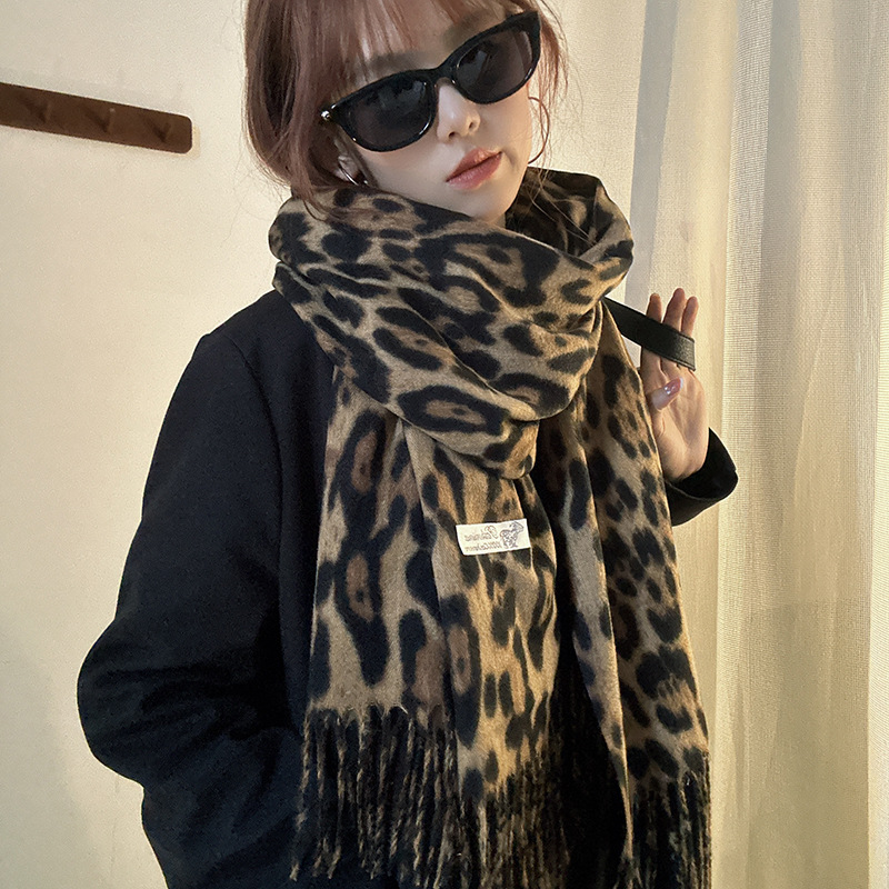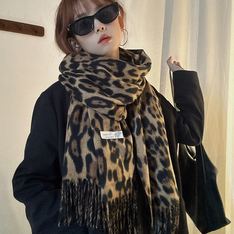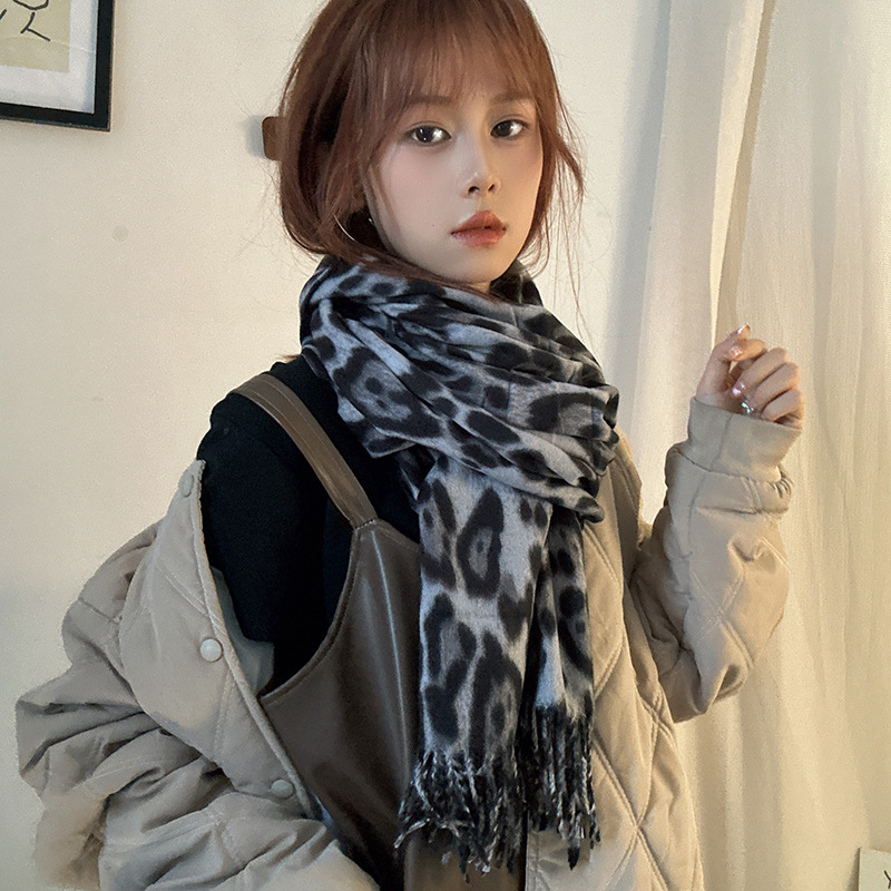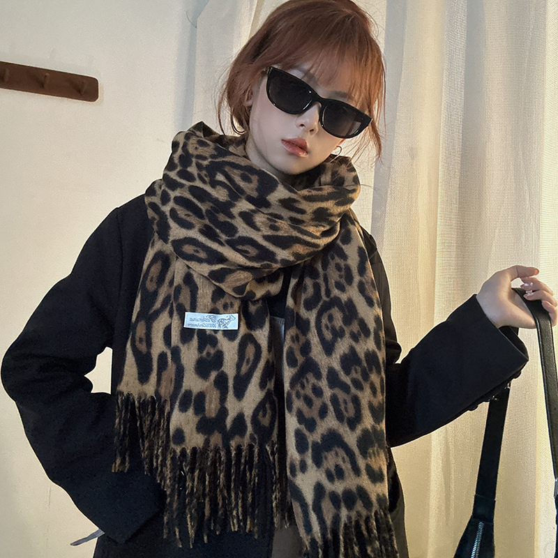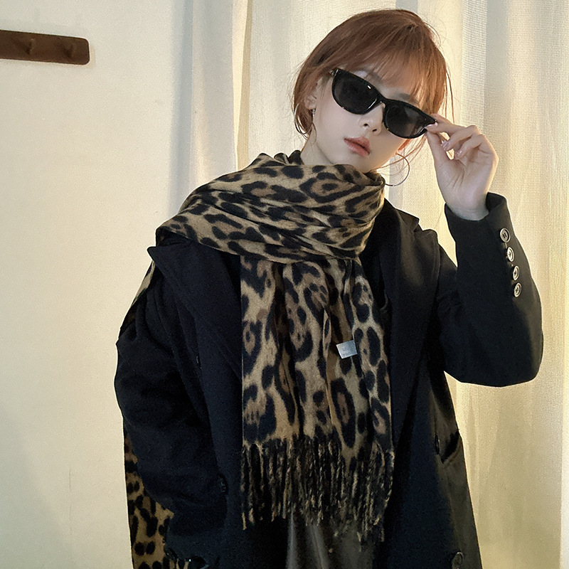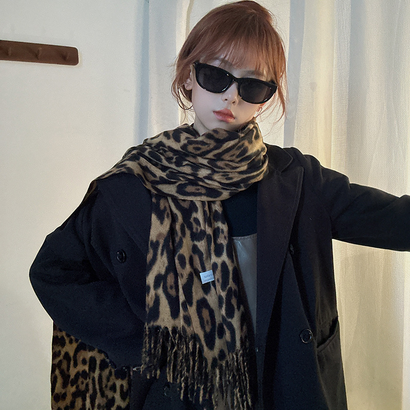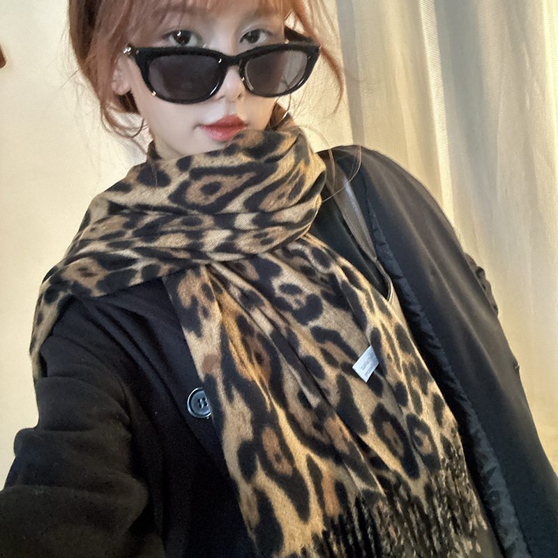떨어지는 수영장 뜨개질 ~ 그물 빨간 스카프 미국 뜨거운 소녀 분위기 표범 목도리 여성의 가을과 겨울 따뜻한 스카프스토어 가기