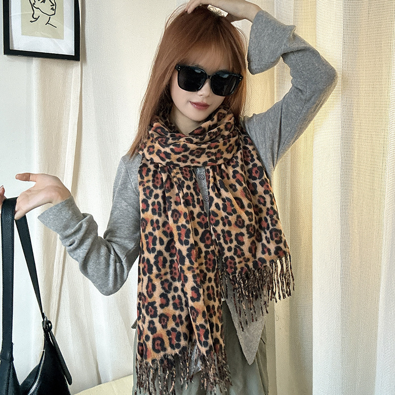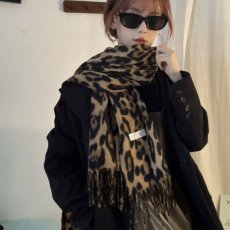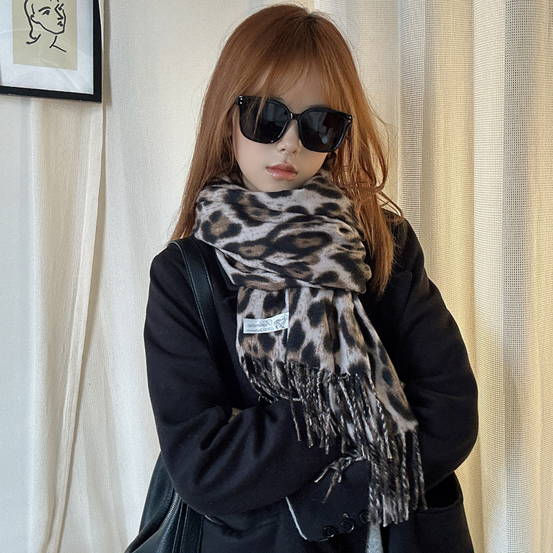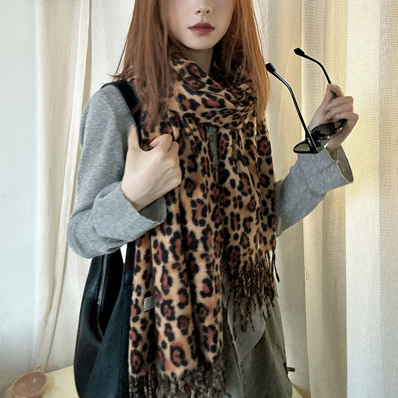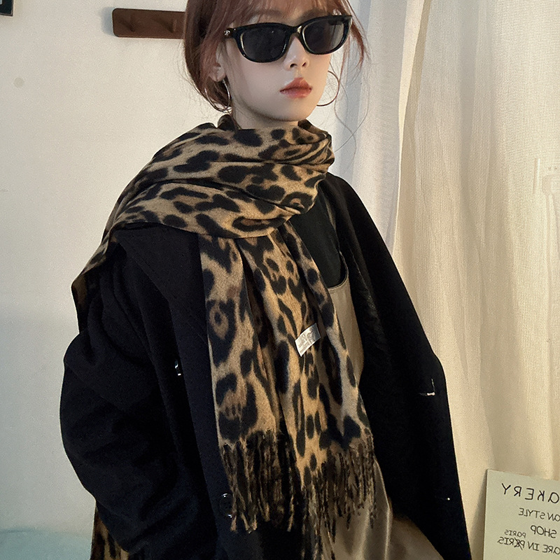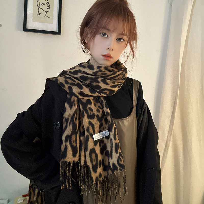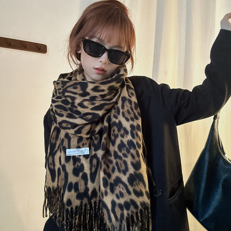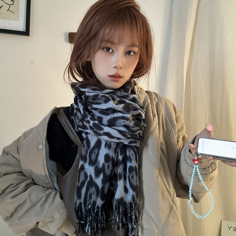 떨어지는 수영장 뜨개질 ~ 그물 빨간 스카프 미국 뜨거운 소녀 분위기 표범 목도리 여성의 가을과 겨울 따뜻한 스카프스토어 가기