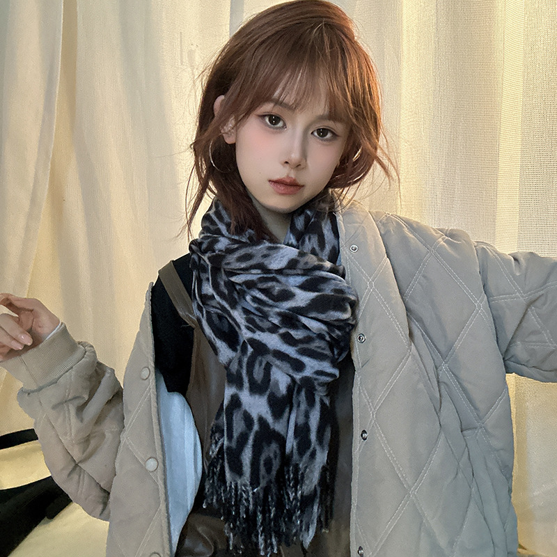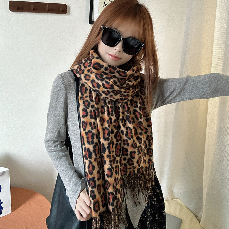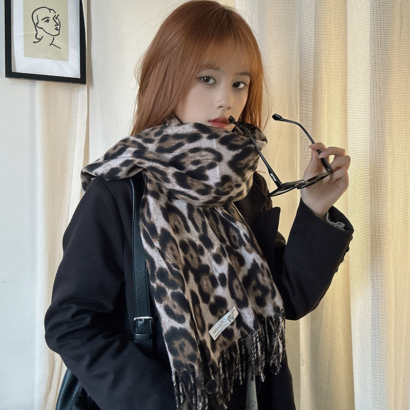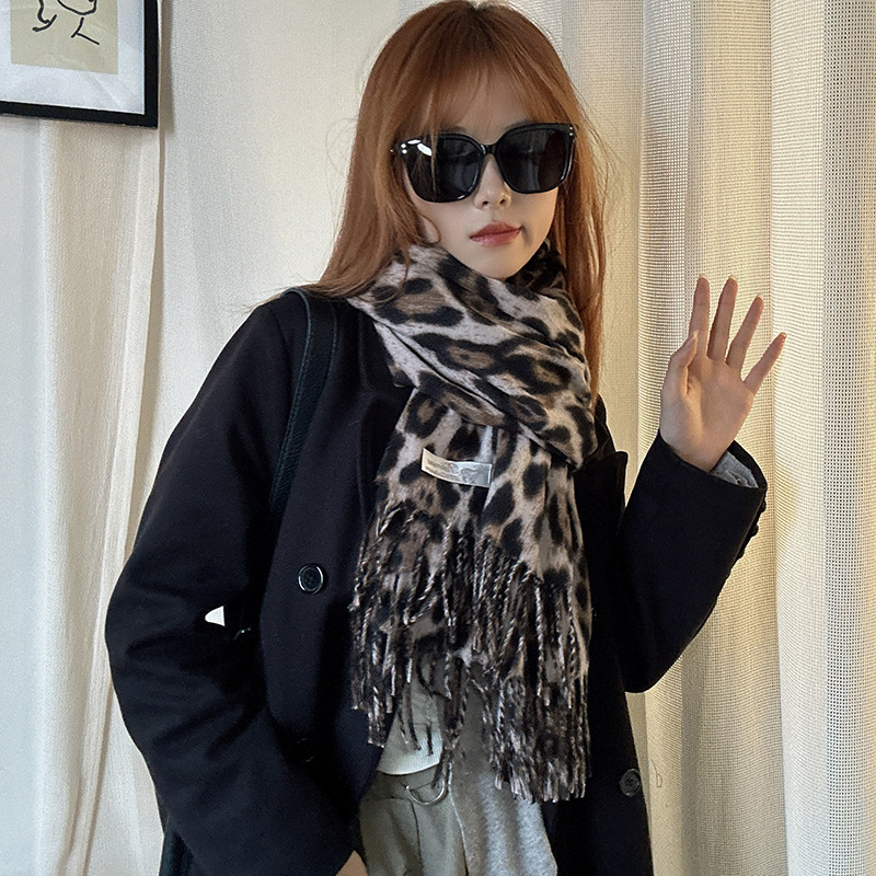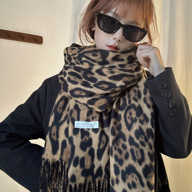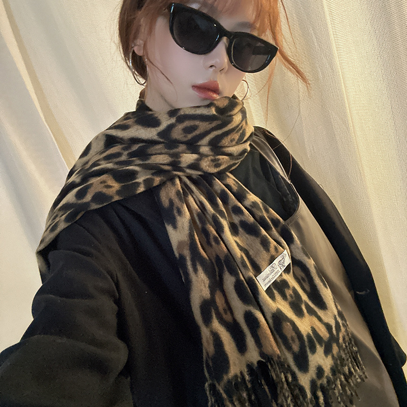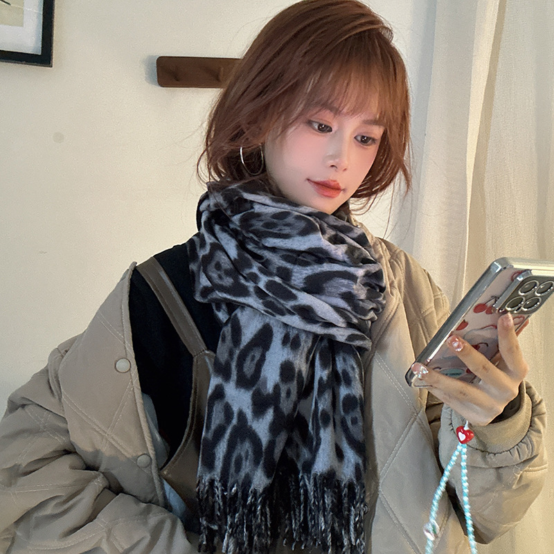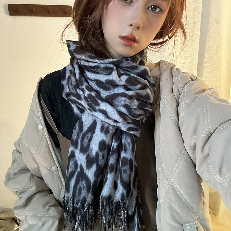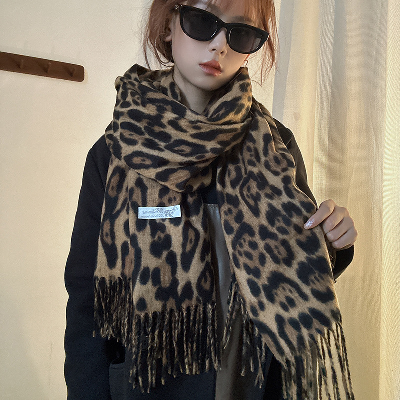 떨어지는 수영장 뜨개질 ~ 그물 빨간 스카프 미국 뜨거운 소녀 분위기 표범 목도리 여성의 가을과 겨울 따뜻한 스카프스토어 가기