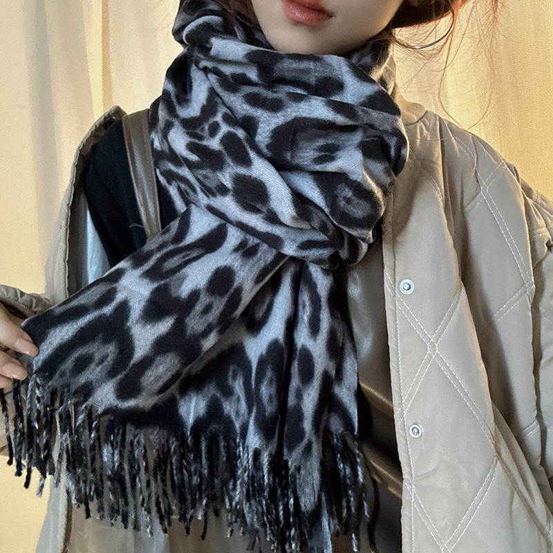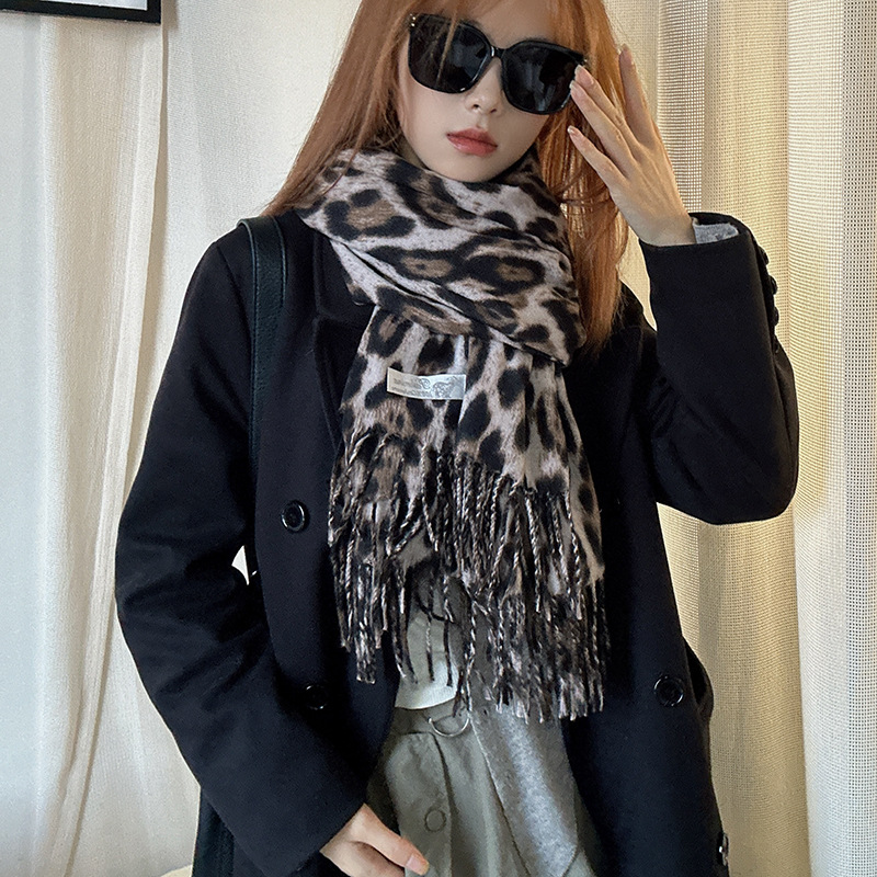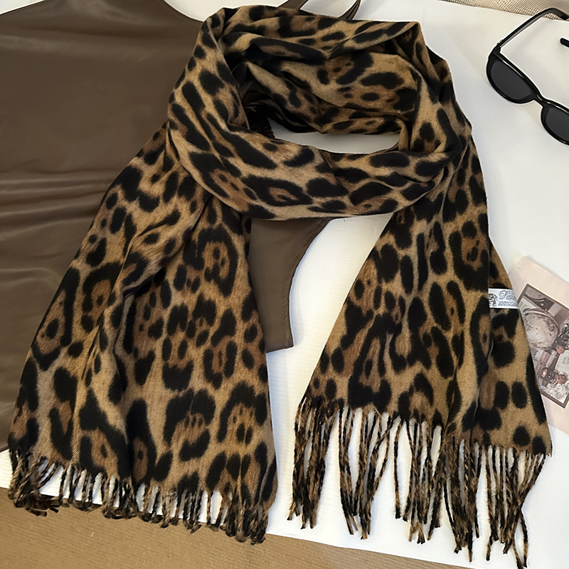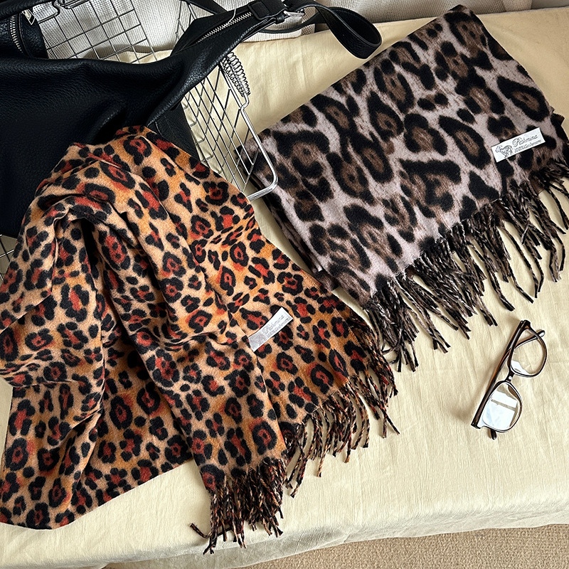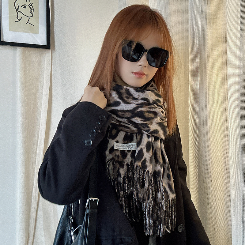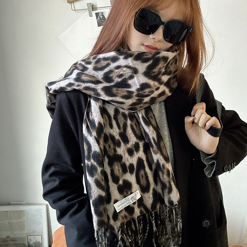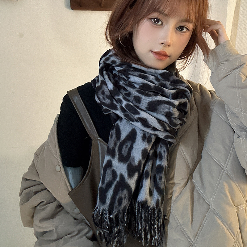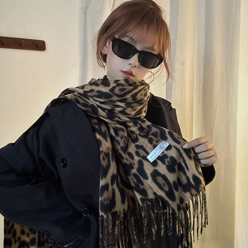 떨어지는 수영장 뜨개질 ~ 그물 빨간 스카프 미국 뜨거운 소녀 분위기 표범 목도리 여성의 가을과 겨울 따뜻한 스카프스토어 가기