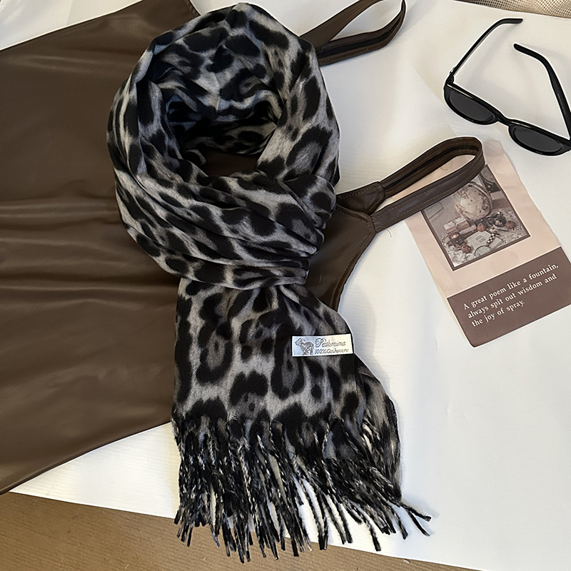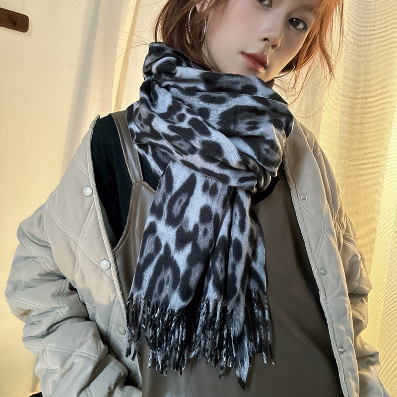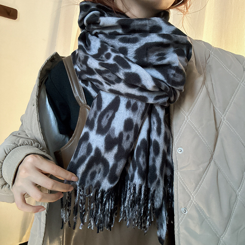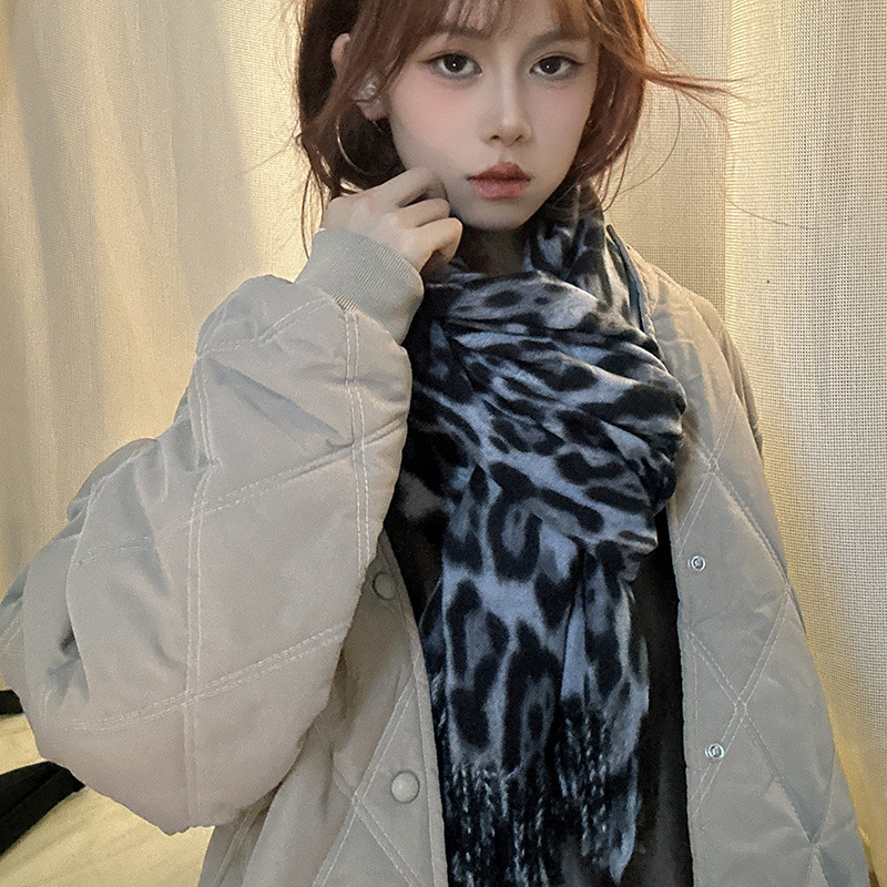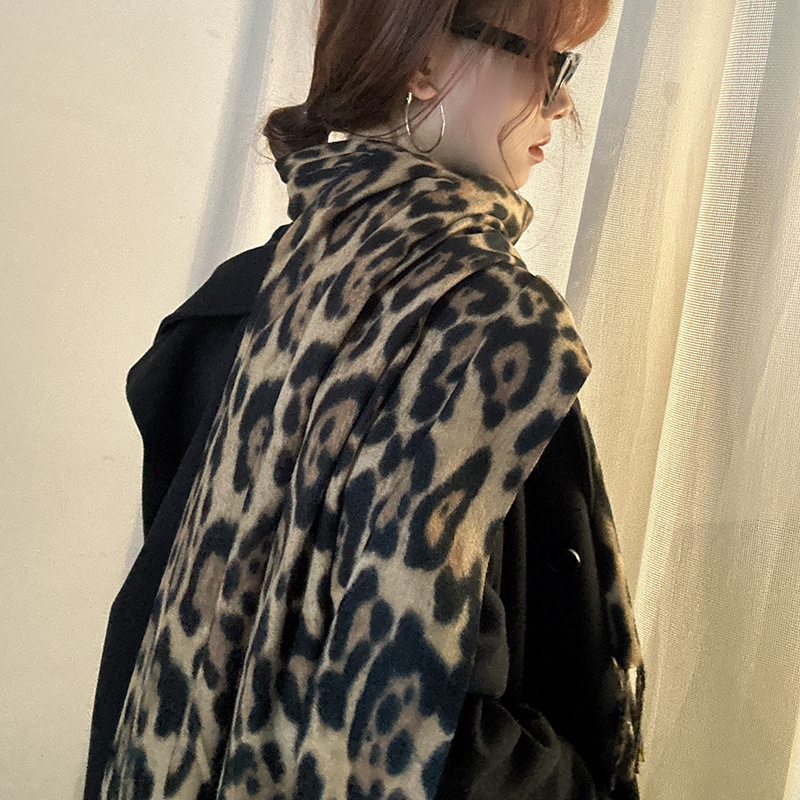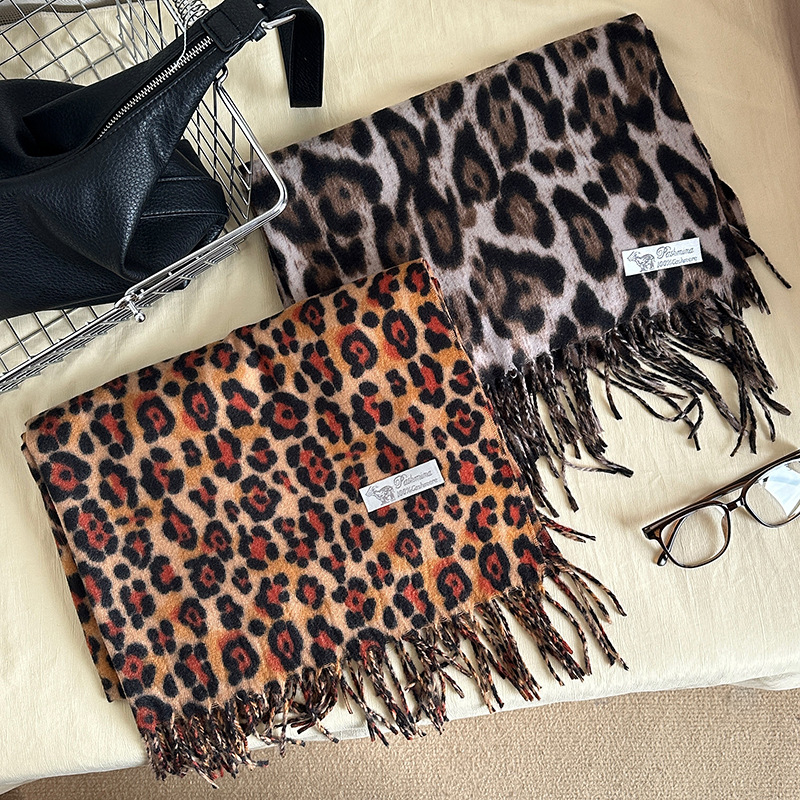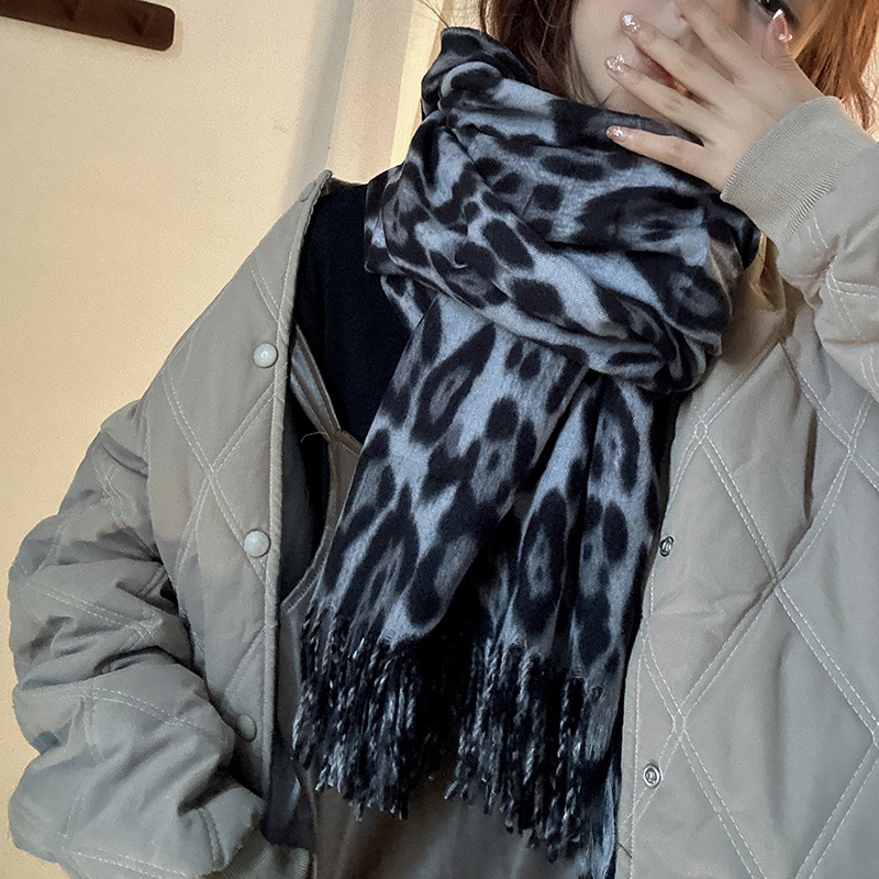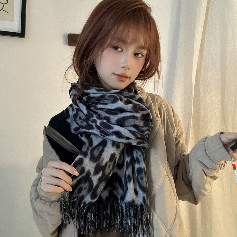 떨어지는 수영장 뜨개질 ~ 그물 빨간 스카프 미국 뜨거운 소녀 분위기 표범 목도리 여성의 가을과 겨울 따뜻한 스카프스토어 가기