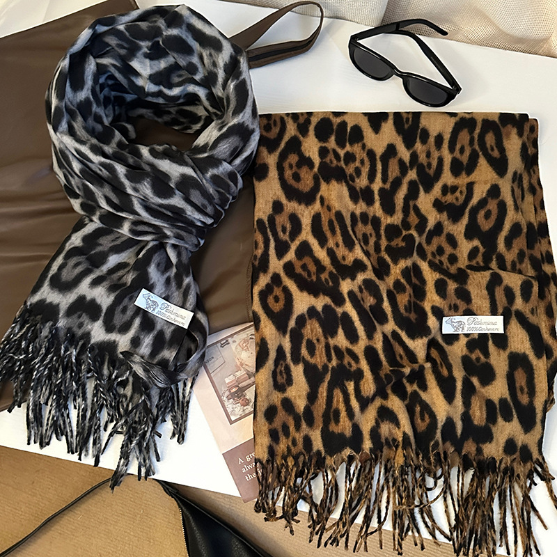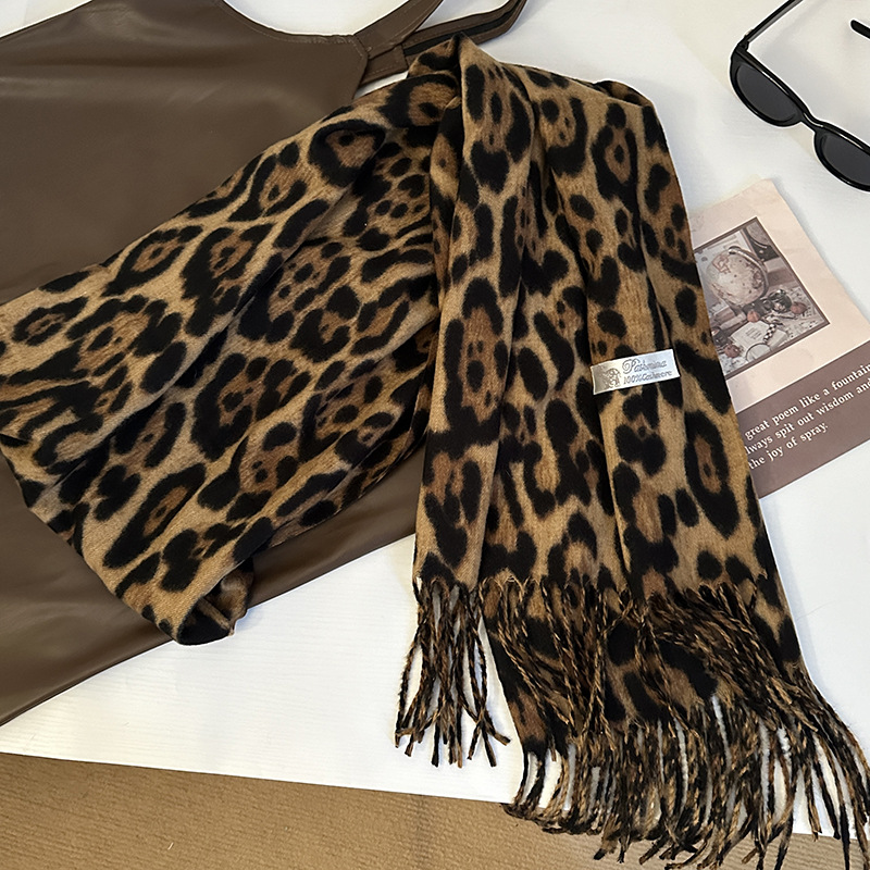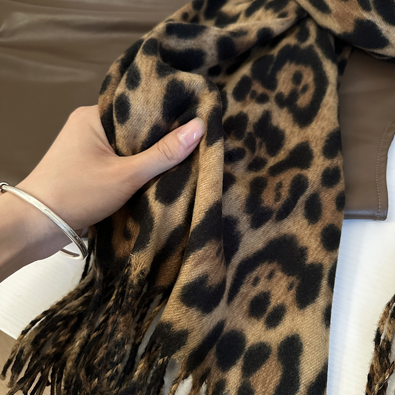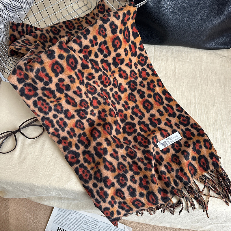 떨어지는 수영장 뜨개질 ~ 그물 빨간 스카프 미국 뜨거운 소녀 분위기 표범 목도리 여성의 가을과 겨울 따뜻한 스카프