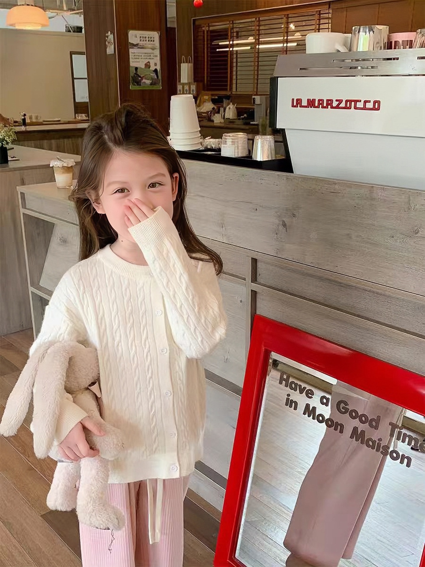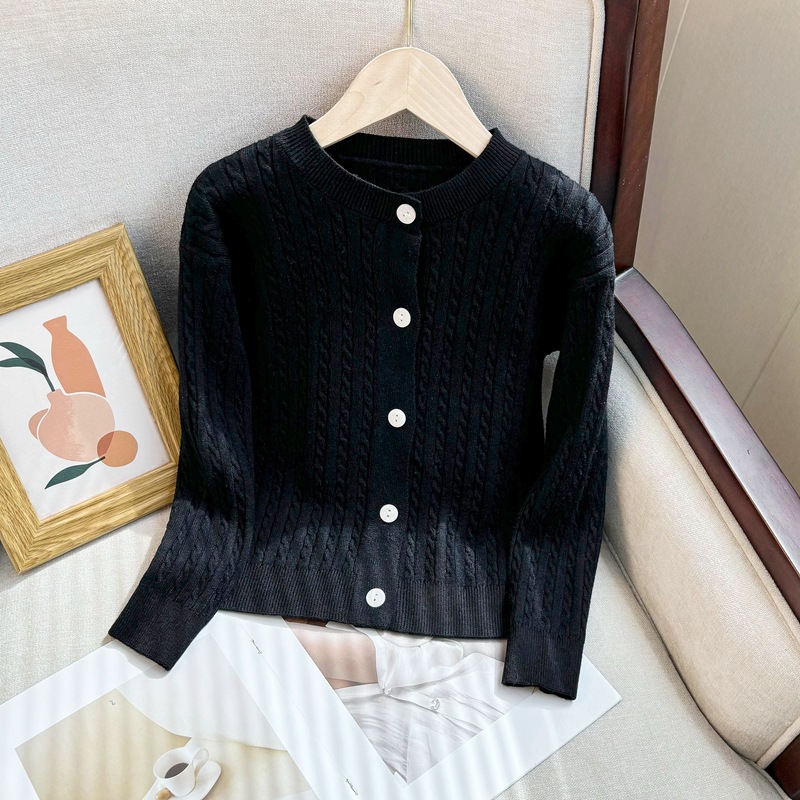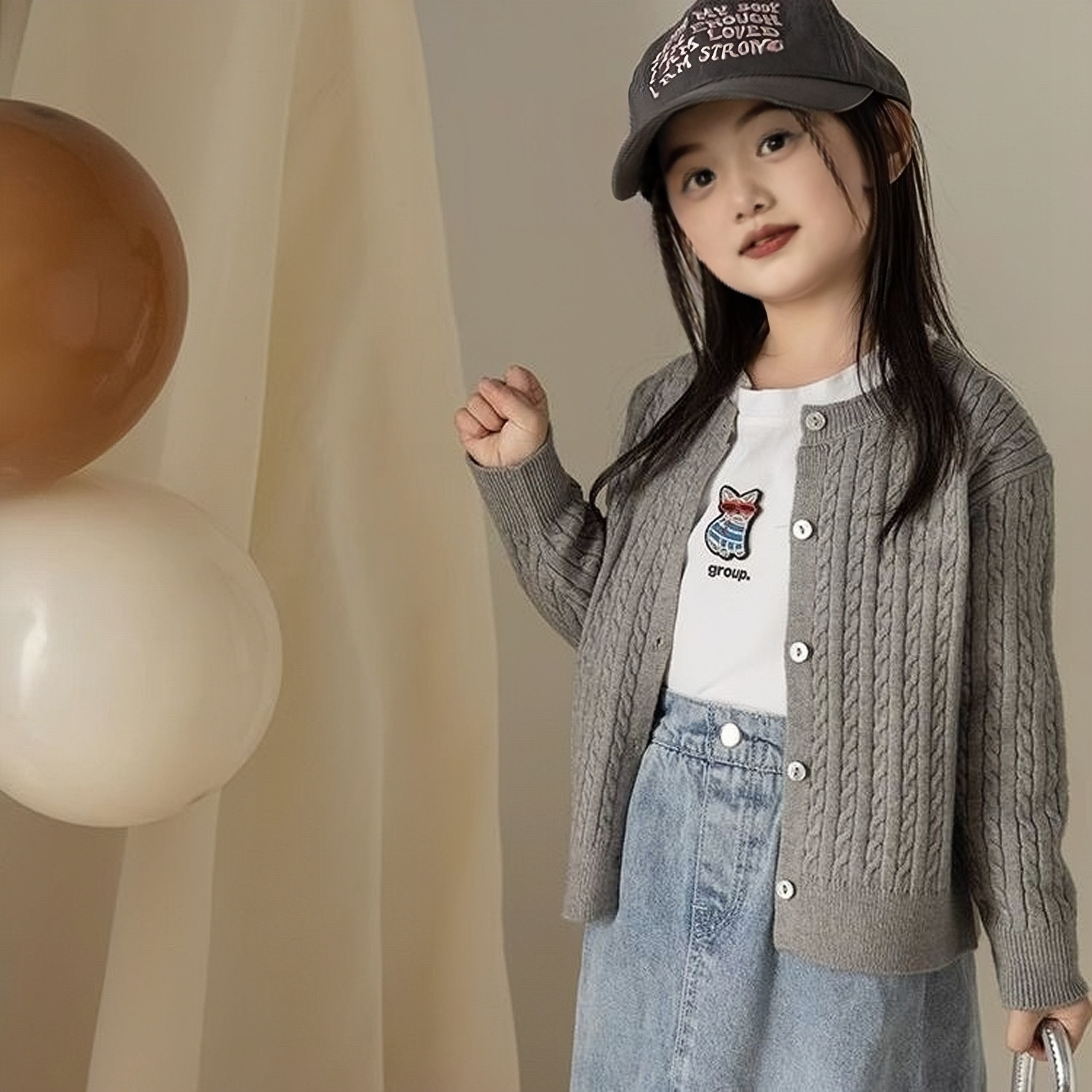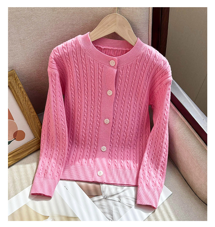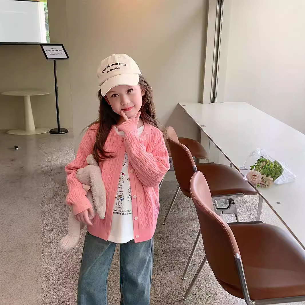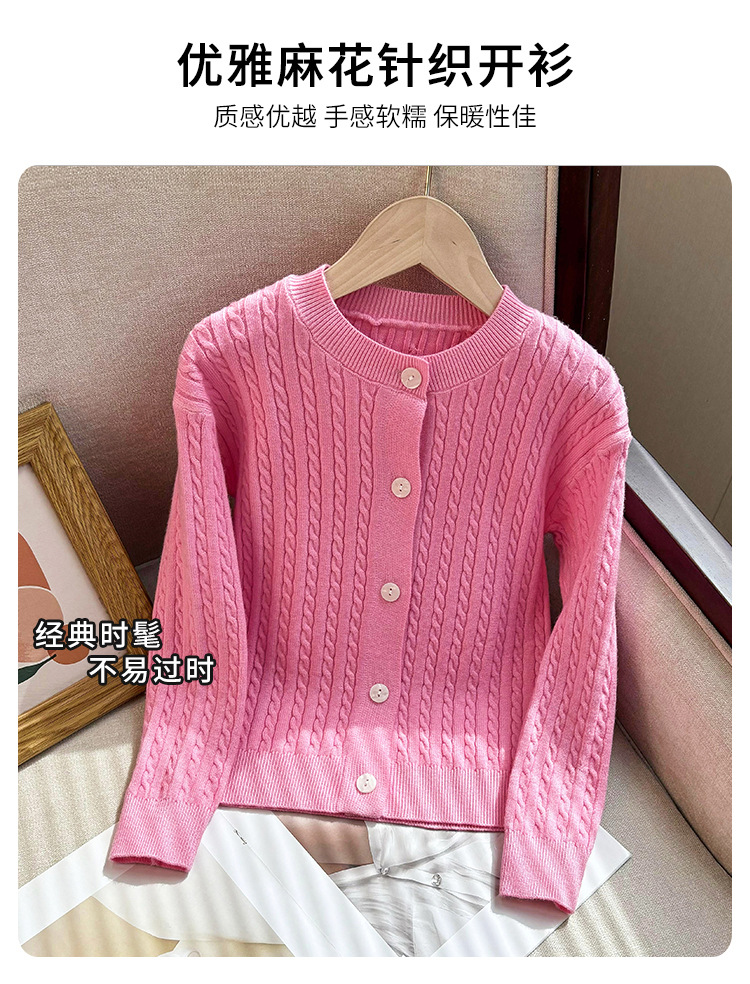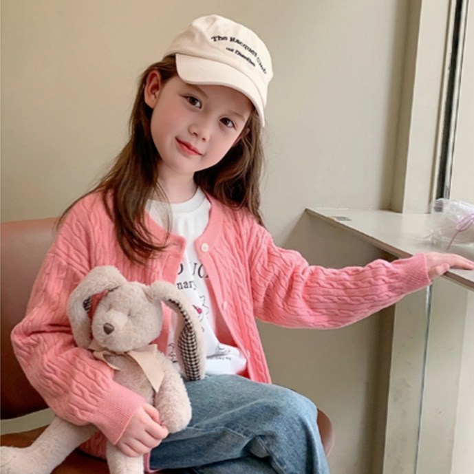 2025 새로운 가을, 겨울 어린이 니트 가디건 아동 의류 한국 스타일 트위스트 솔리드 컬러 소녀 스웨터 재킷 도매스토어 가기
