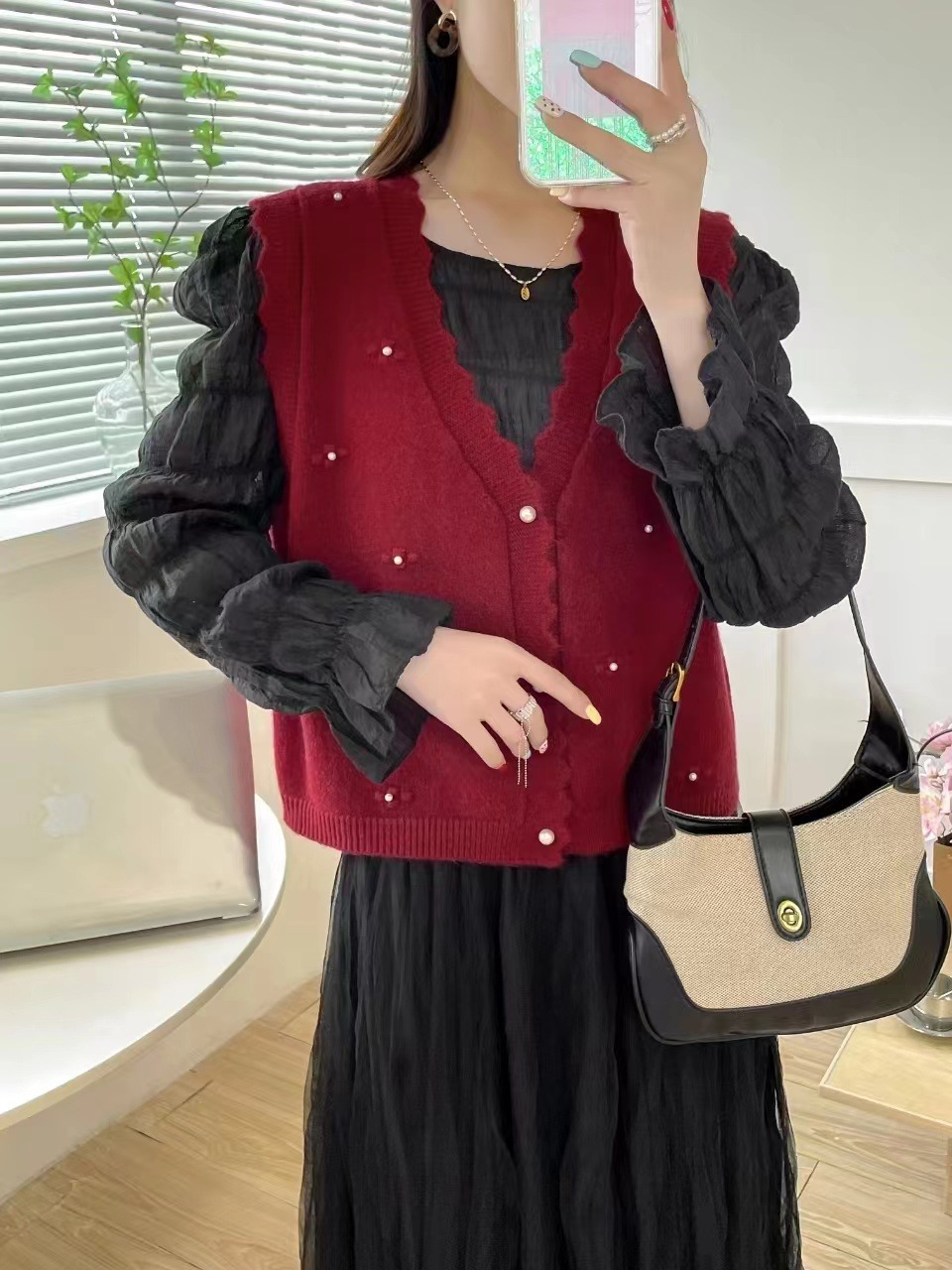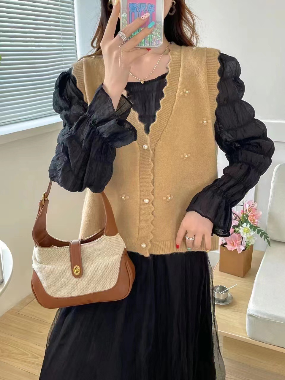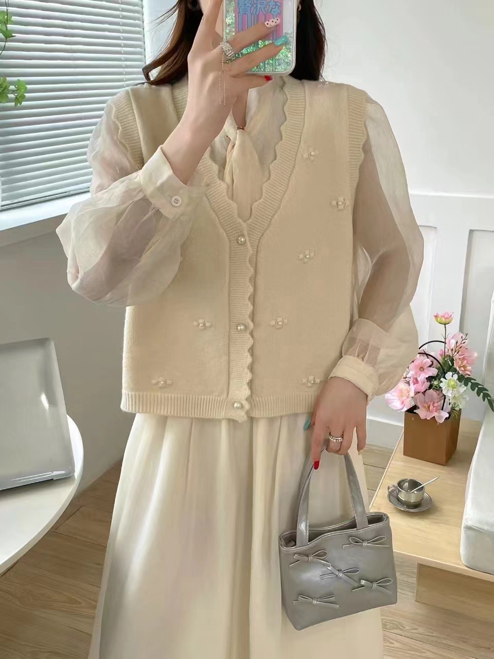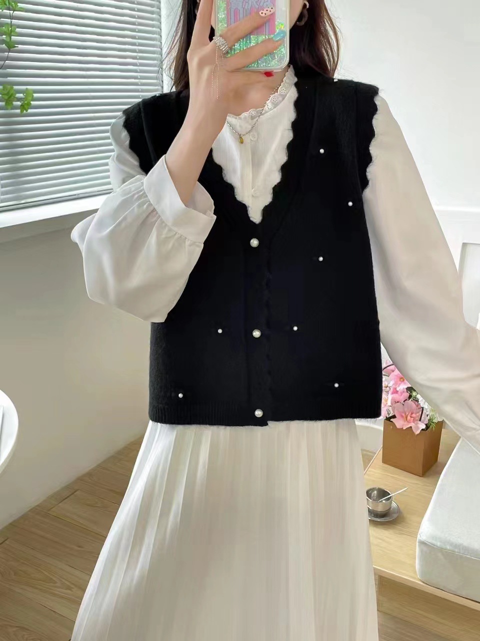 재고 가을 새로운 스웨터 조끼 여성용 구슬 칼리지 스타일 외부 착용 얇은 민소매 니트 카디건 조끼스토어 가기