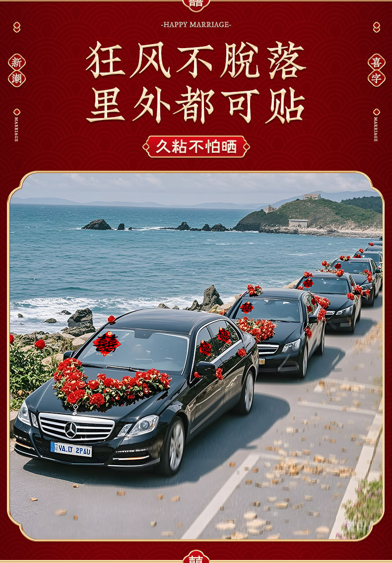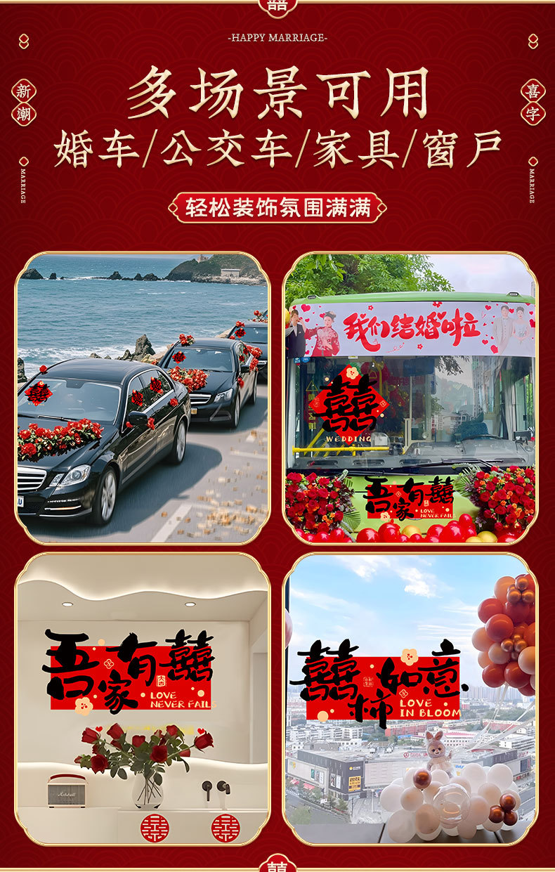 웨딩 카 해피 워드 자동차 스티커 팀 장식 풀 플라워 환영 자동차 헤드 꽃 웨딩 완벽한 세트 레이아웃 해피 워드 스티커 도어 정전기 스티커