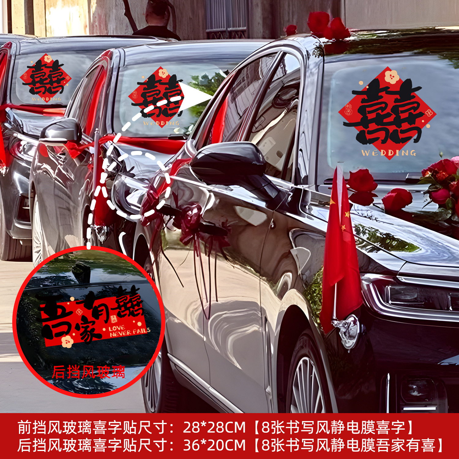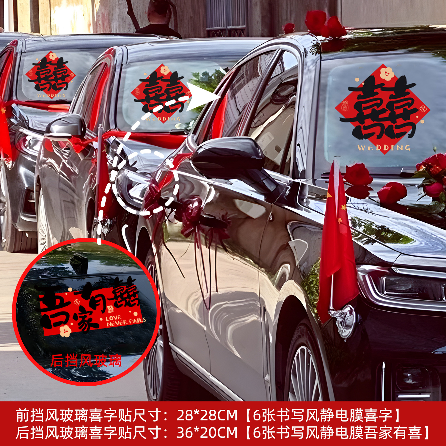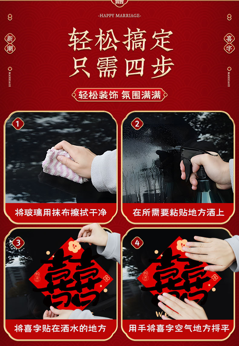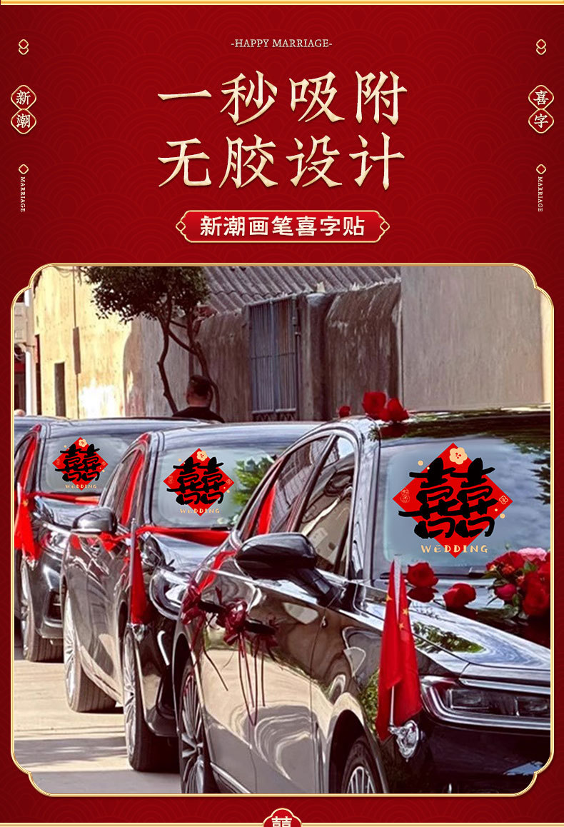 • 캘리그래피 모형 [웨딩카 장식 6대] 다채로운 囍 스티커 6장