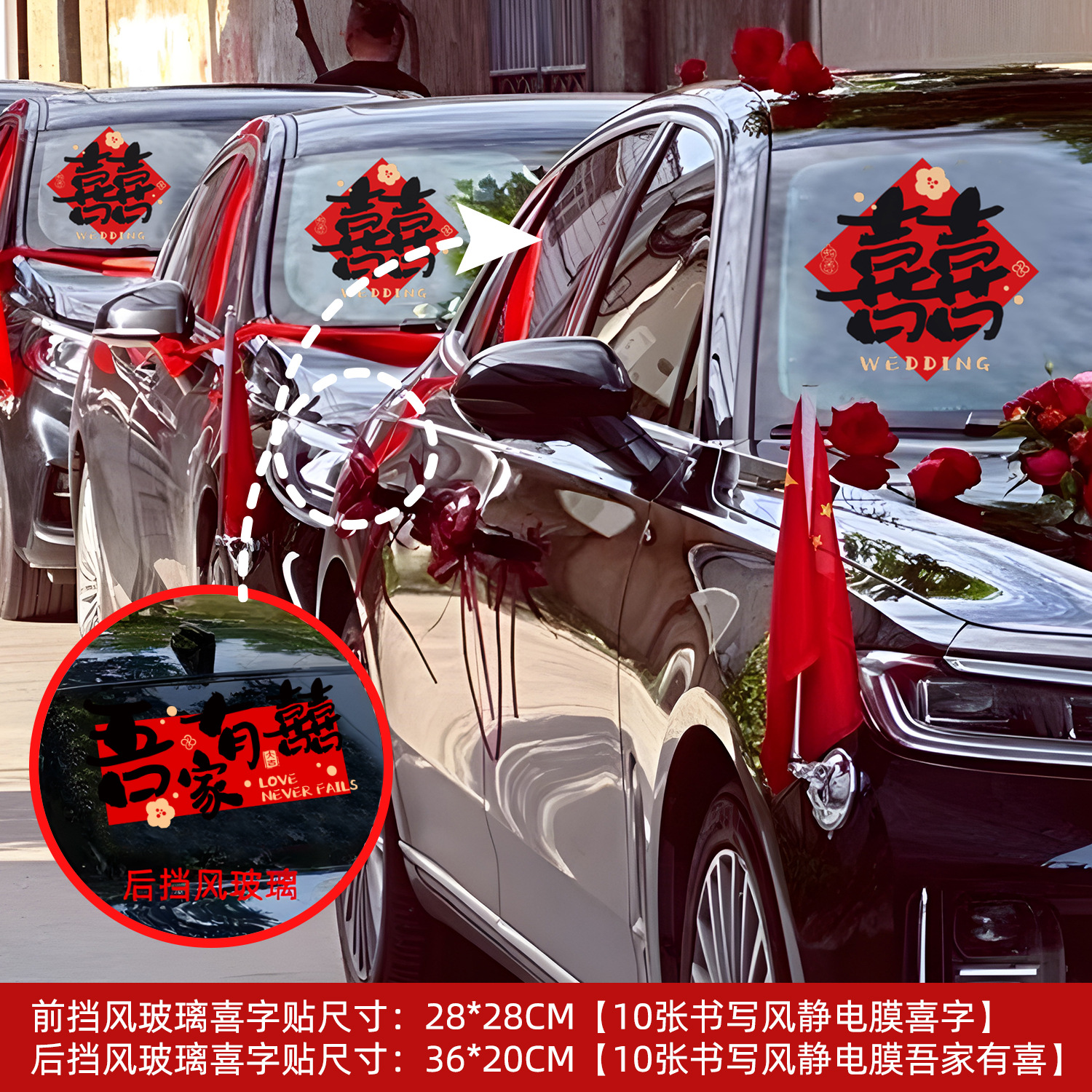 • 캘리그래피 모형 [웨딩카 장식 10대] 다채로운 囍 스티커 10장