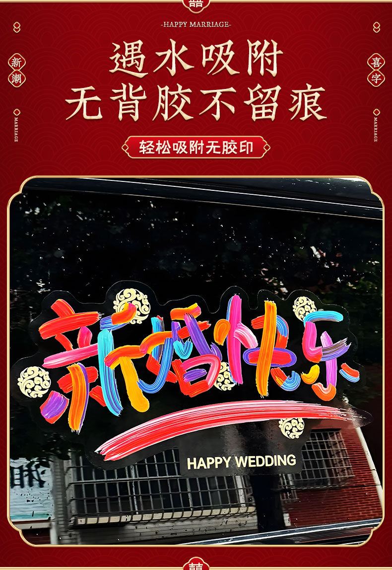 웨딩 카 해피 워드 자동차 스티커 팀 장식 풀 플라워 환영 자동차 헤드 꽃 웨딩 완벽한 세트 레이아웃 해피 워드 스티커 도어 정전기 스티커스토어 가기