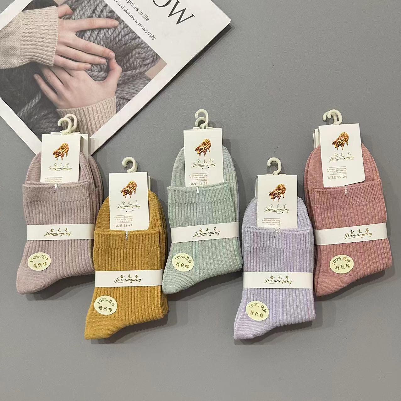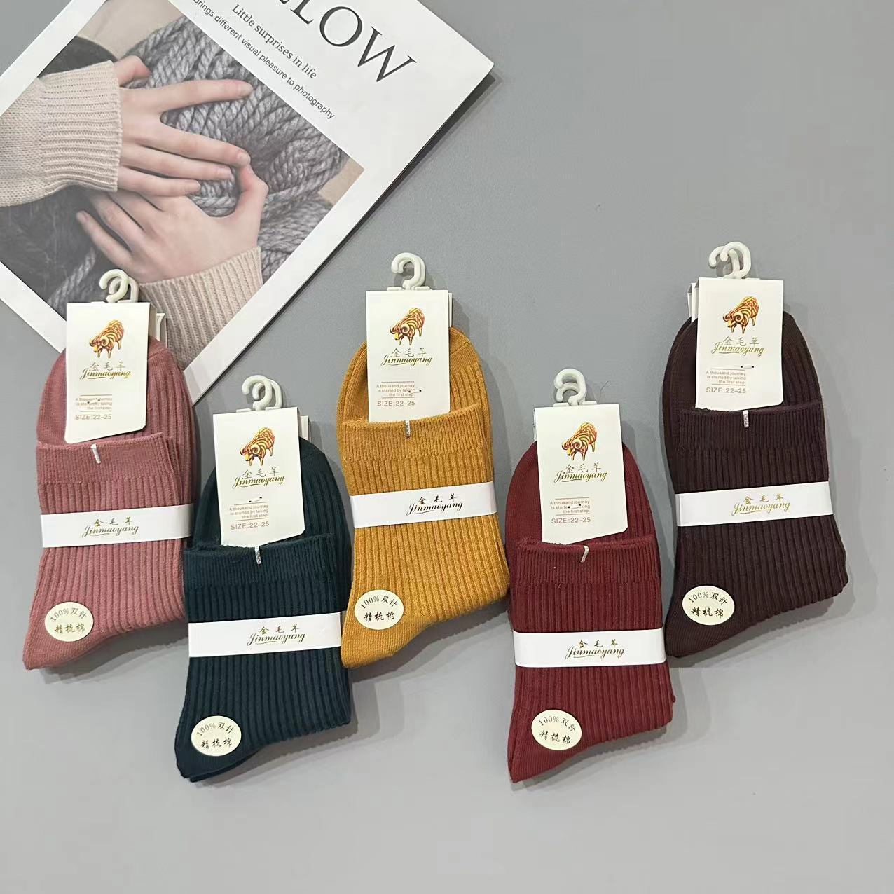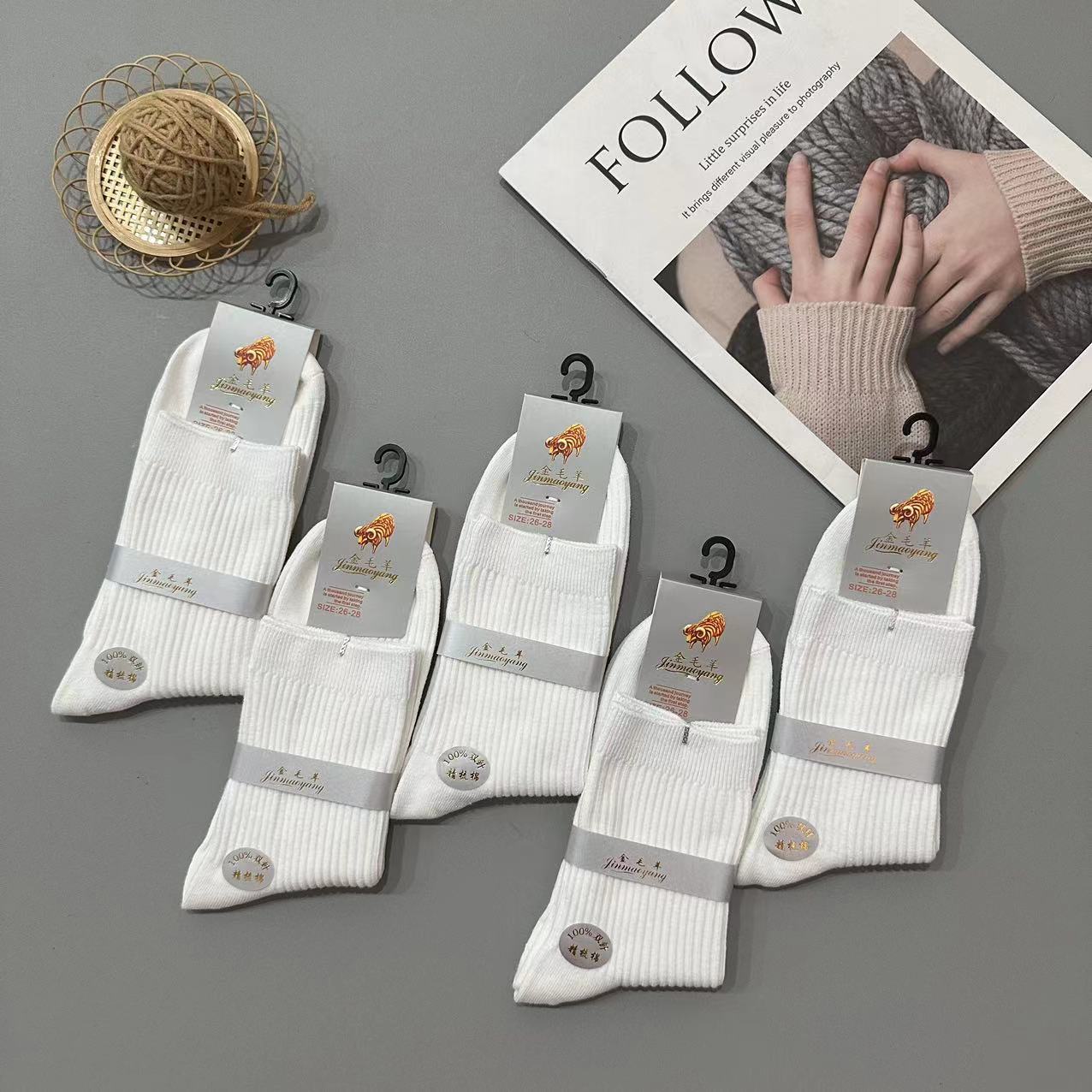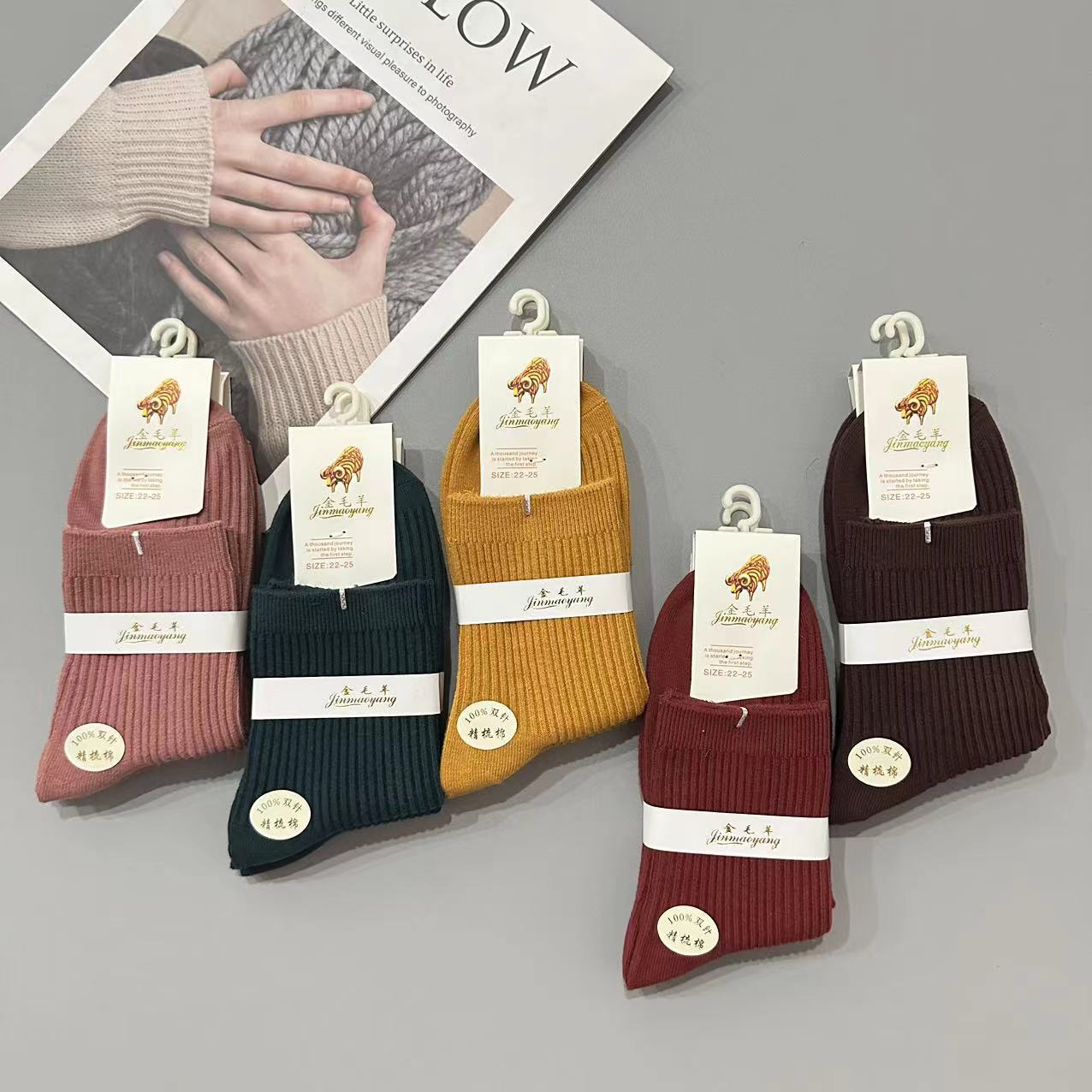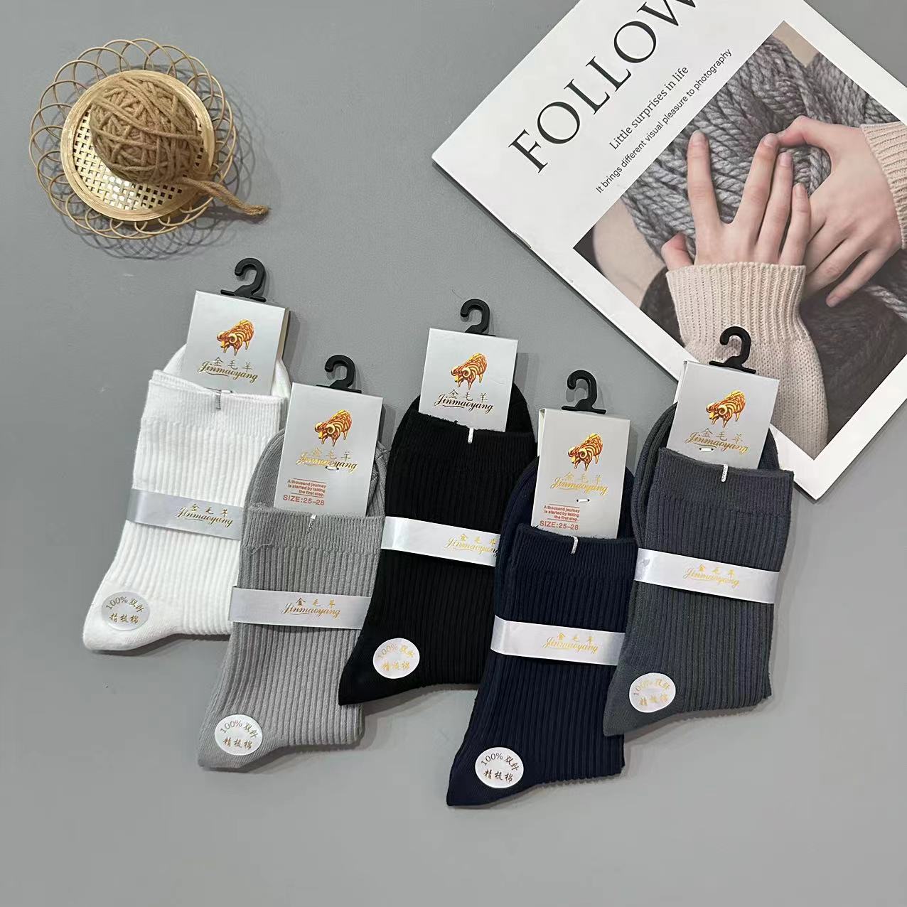 골든 리트리버 양모 가을 겨울 남녀 공용 이중 바늘 세로 줄무늬 다용도 양말 패션 단색 면 양말 두꺼운 양말 대량 도매스토어 가기