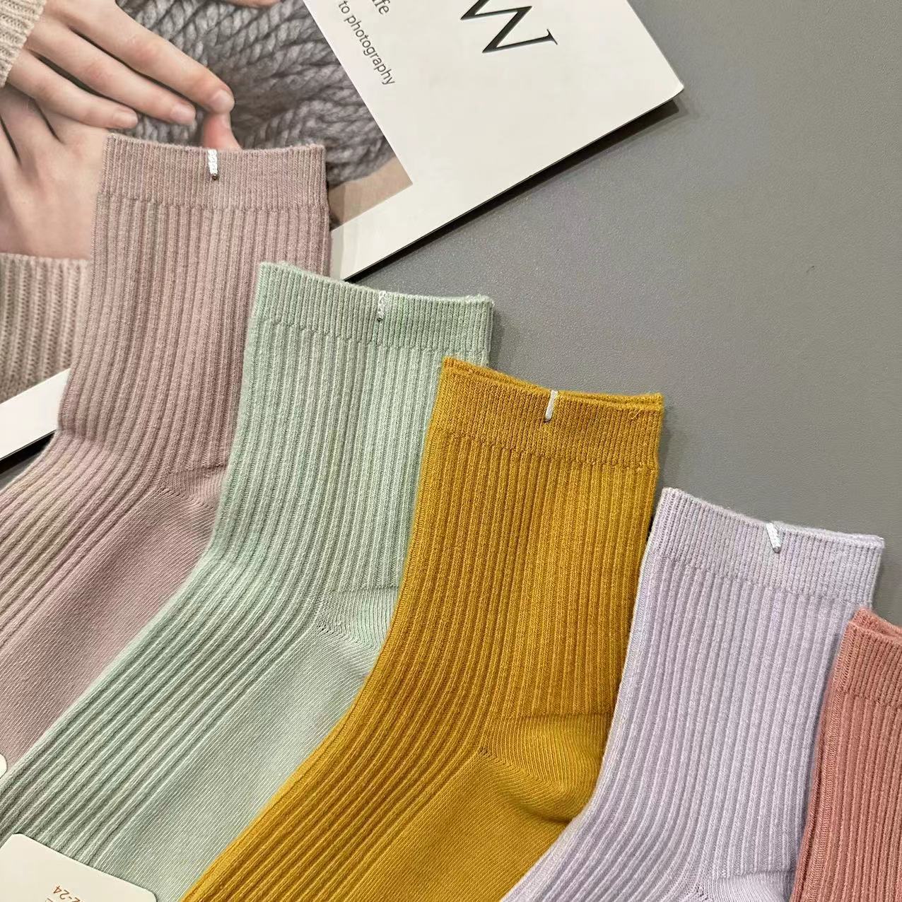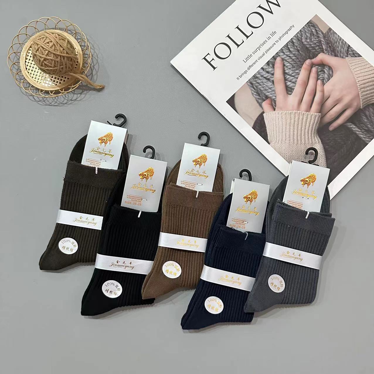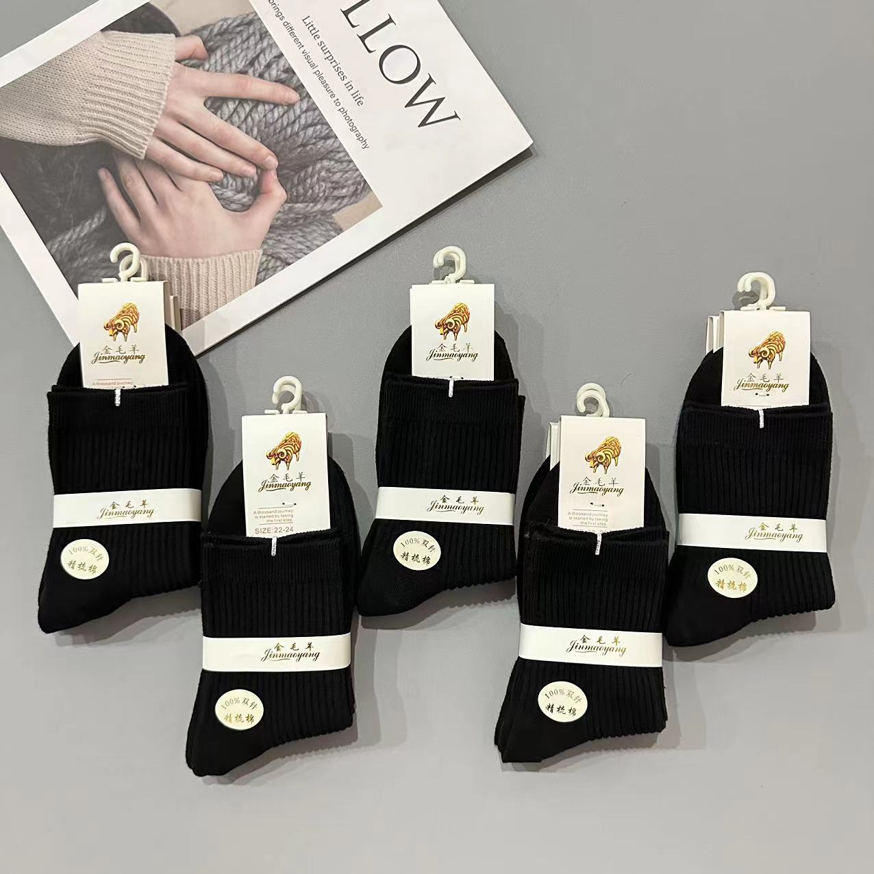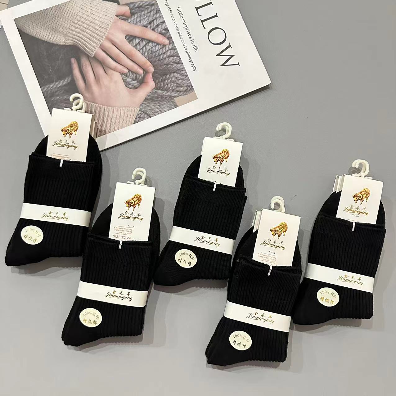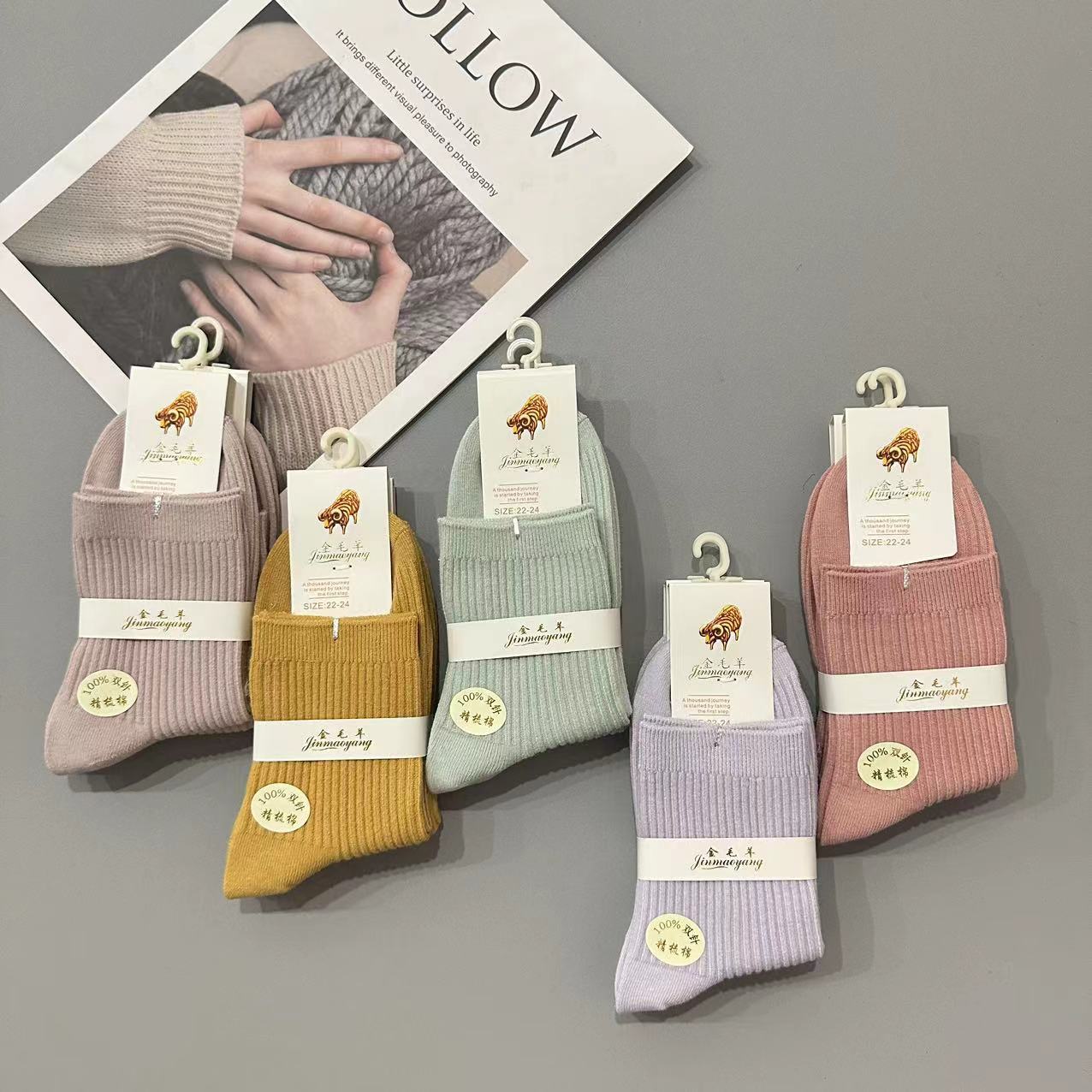 골든 리트리버 양모 가을 겨울 남녀 공용 이중 바늘 세로 줄무늬 다용도 양말 패션 단색 면 양말 두꺼운 양말 대량 도매스토어 가기