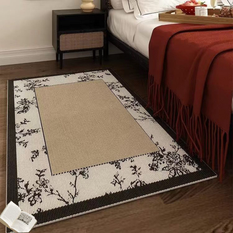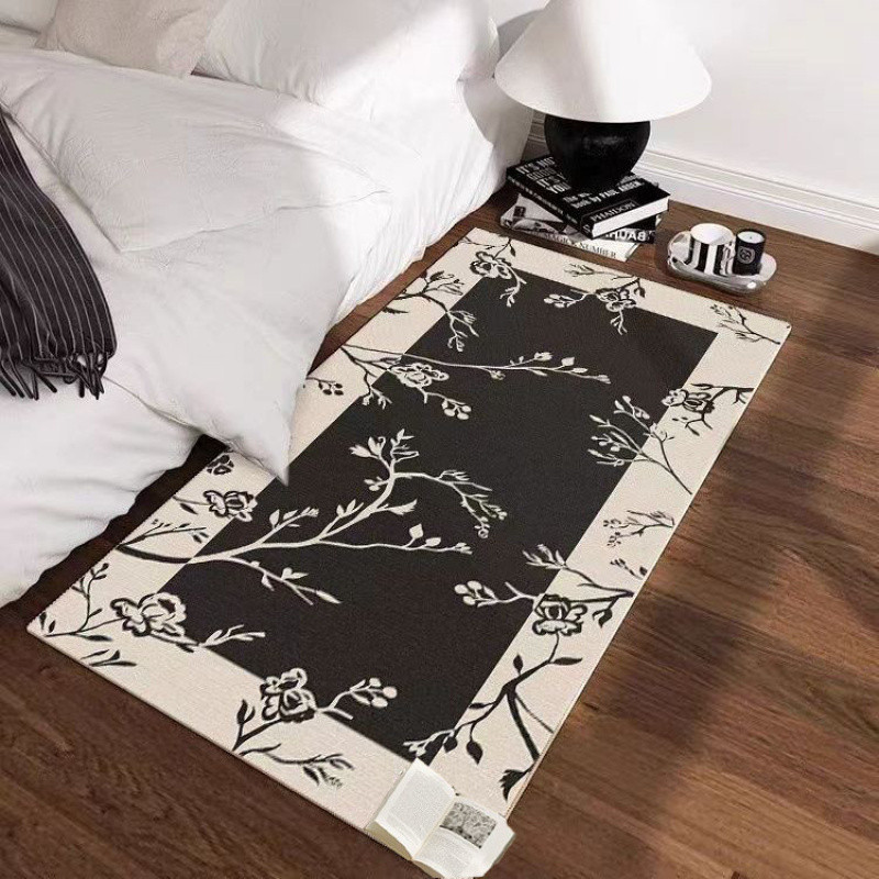 가벼운 고급 침대 옆 카펫 복고풍 침실 거실 바닥 매트 프랑스 디자인 침실 룸 검정색 얼룩 방지 및 내마모성 카펫스토어 가기