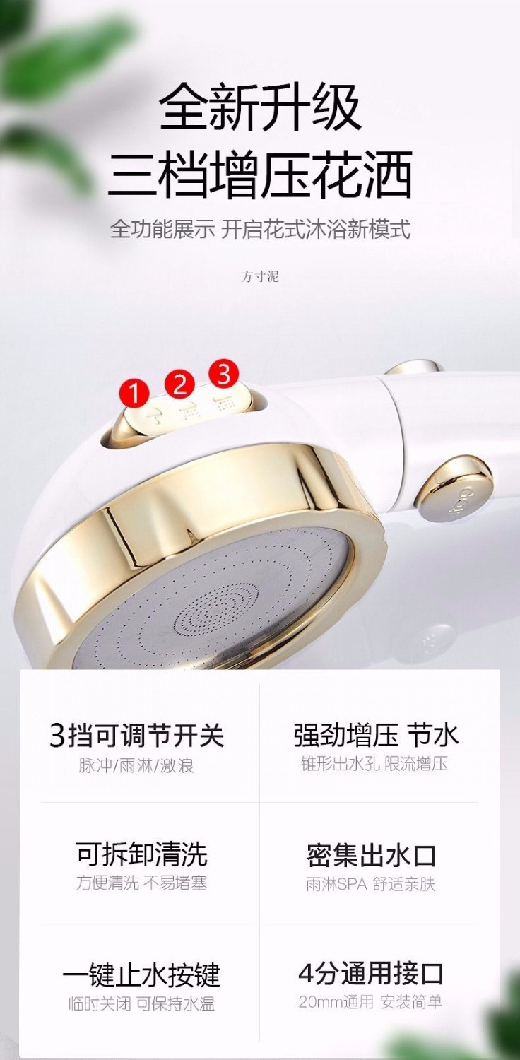 원 버튼 워터 스톱 부스터 샤워 헤드 분리 가능하고 빨 수있는 꽃 와인 샤워 헤드 세트 목욕 샤워 헤드 가정용 도매스토어 가기
