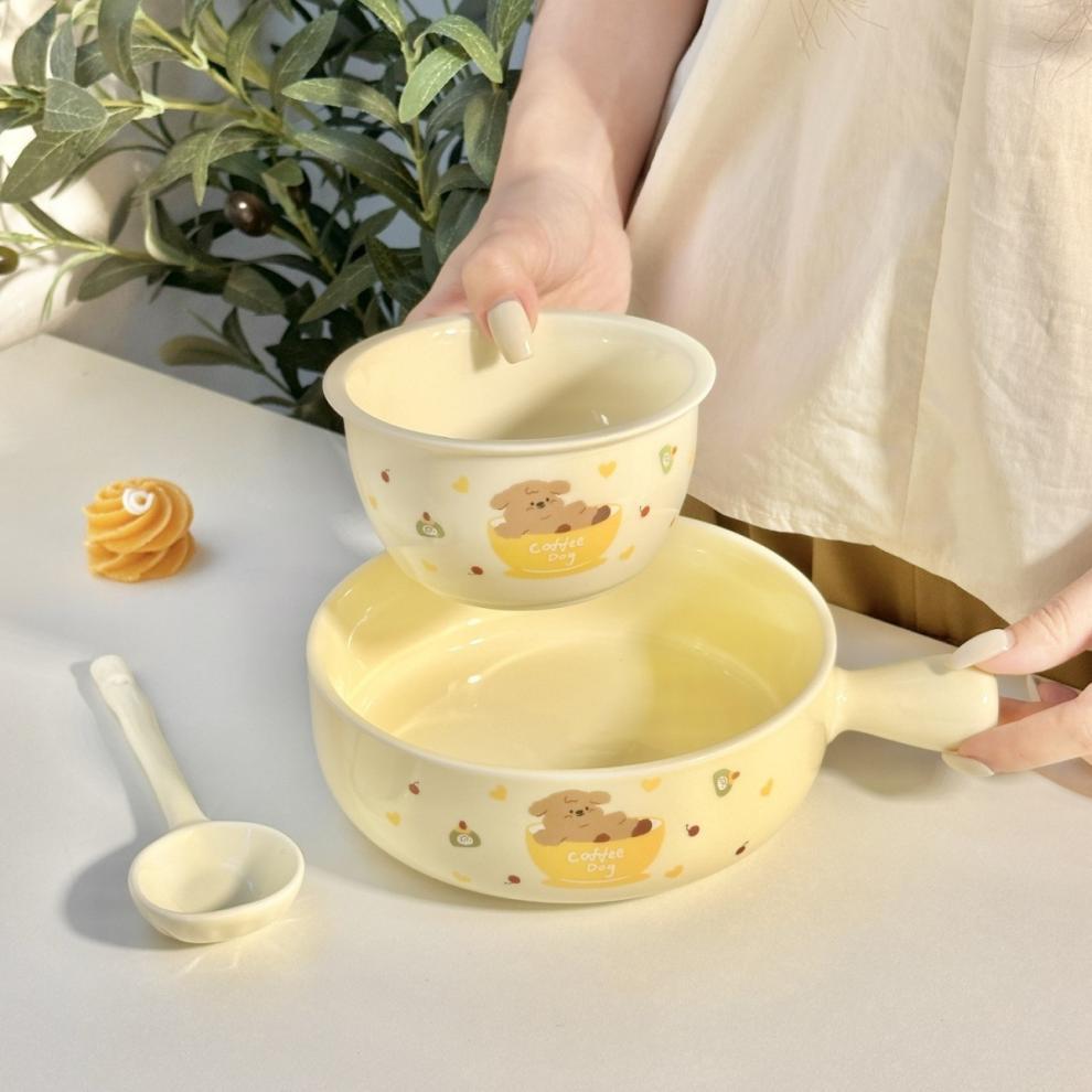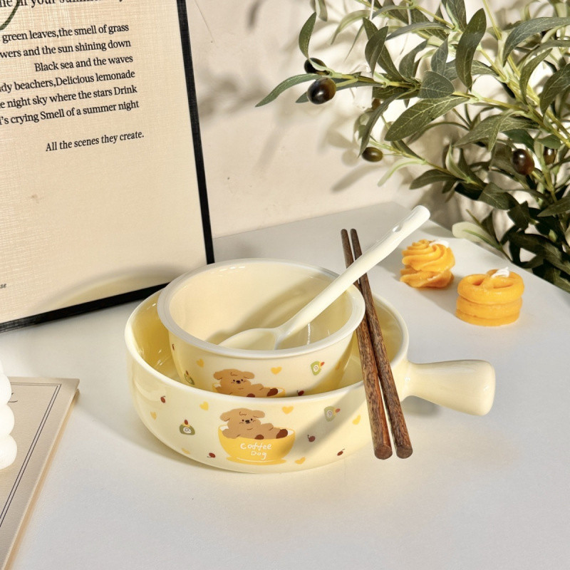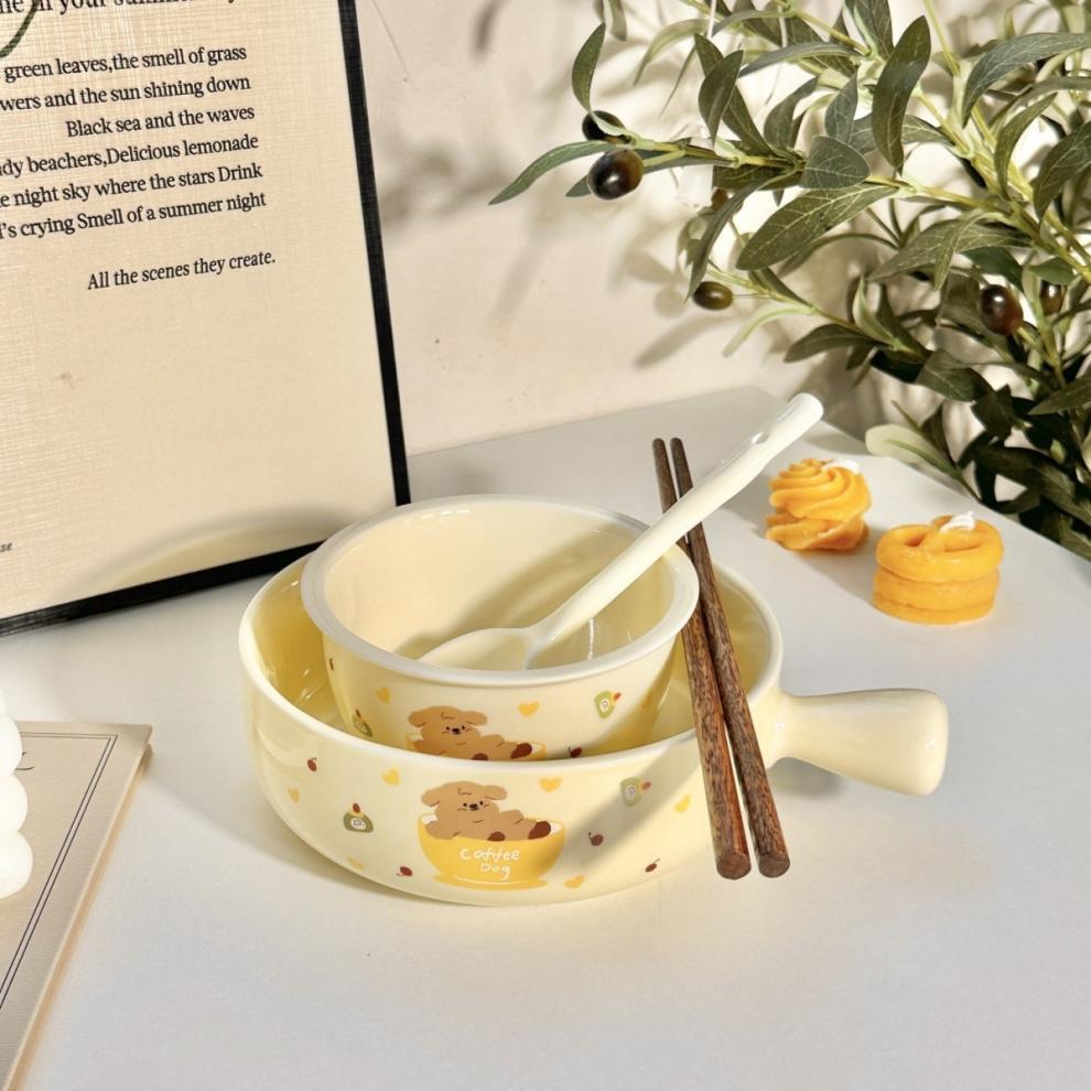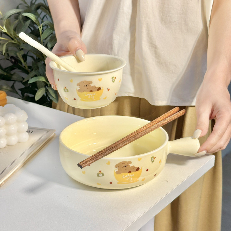 Ins 강아지 귀여운 크림 핸들 그릇 소녀 식기 세라믹 디저트 그릇 Underglyze 컬러 홈 하이 컬러 세트