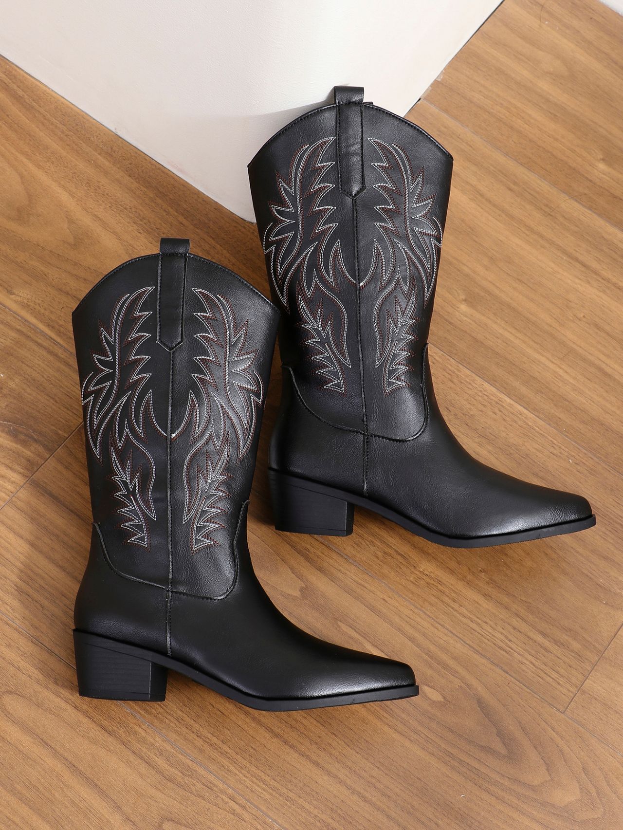국경 간 대외 무역 플러스 사이즈 부츠 여성 2024 새로운 뾰족한 스퀘어 힐 부츠 웨스턴 데님 나이트 부츠스토어 가기