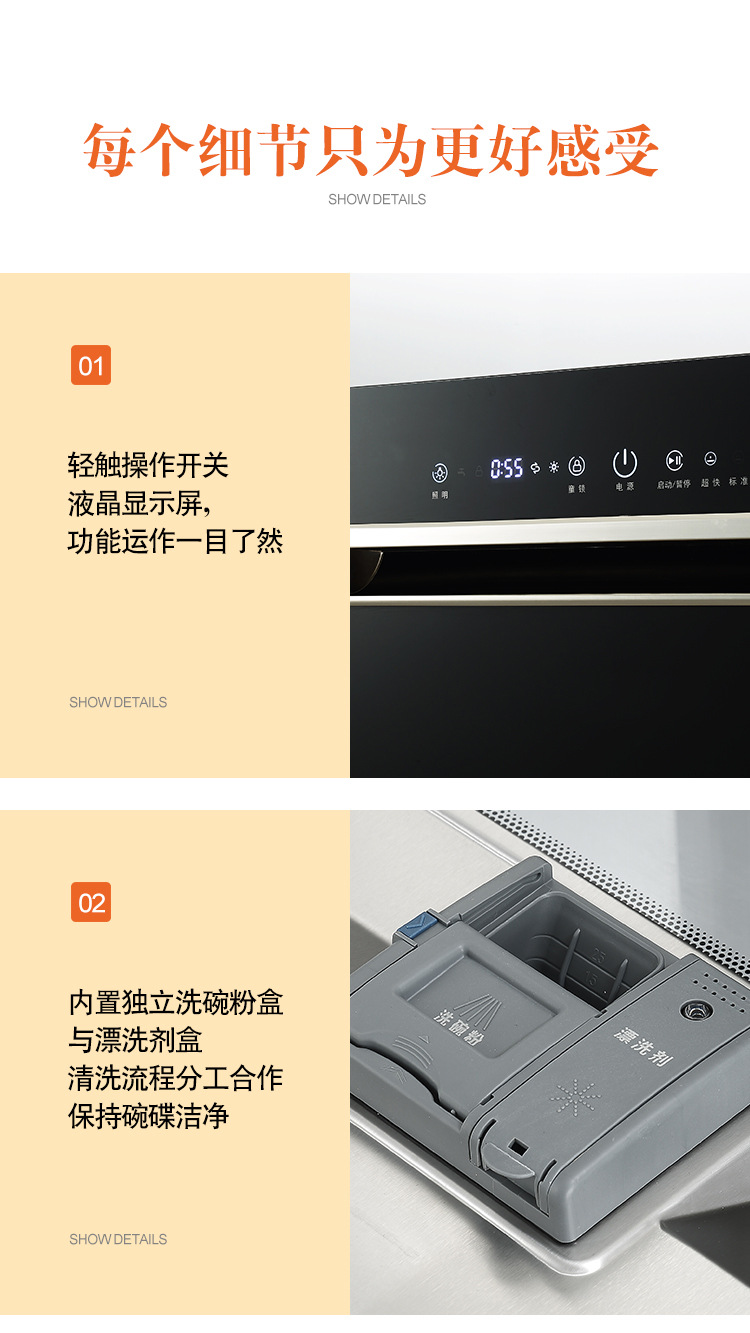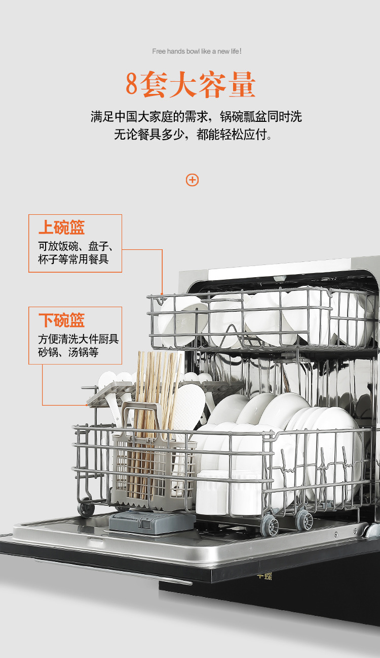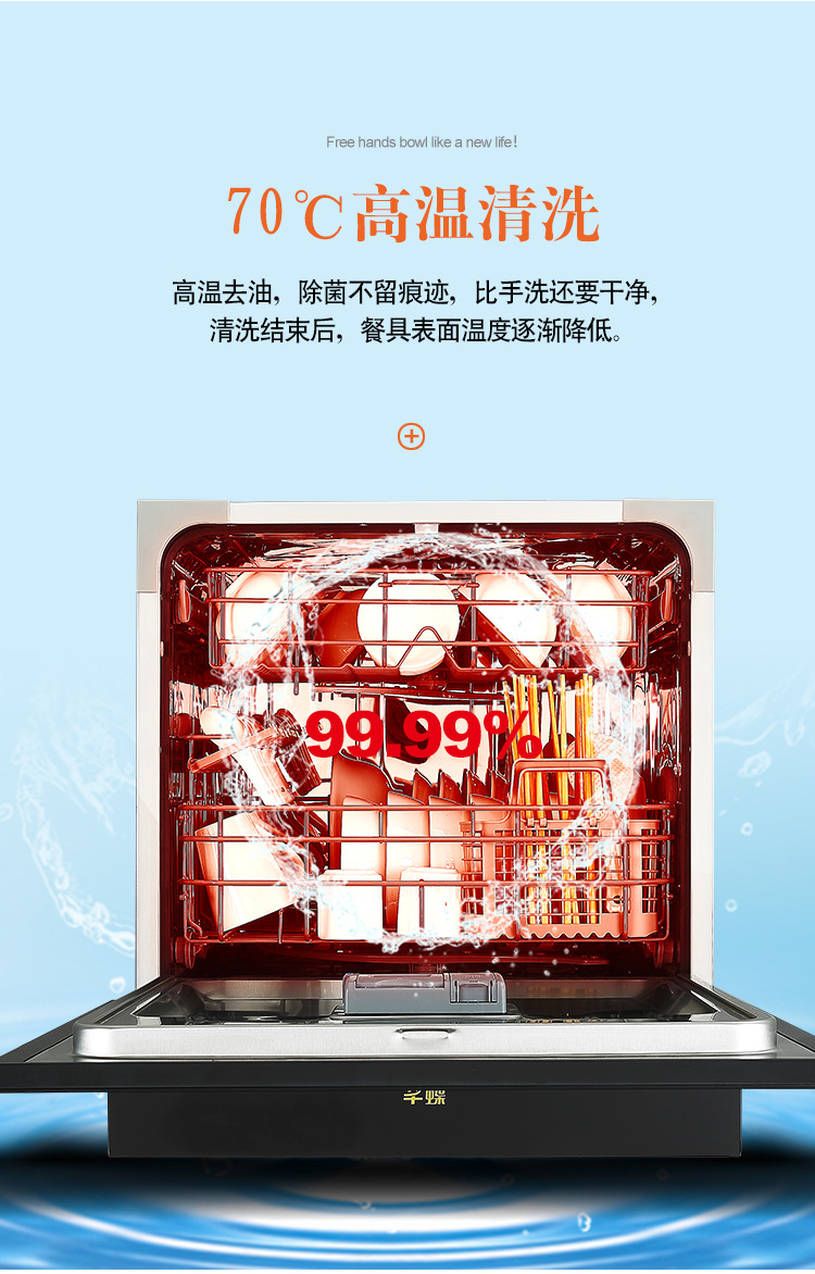 신형 내장형 식기세척기, 완전 자동, 13세트 대용량 살균기, 스마트 테이블탑, 설치 불필요, 고온 살균스토어 가기