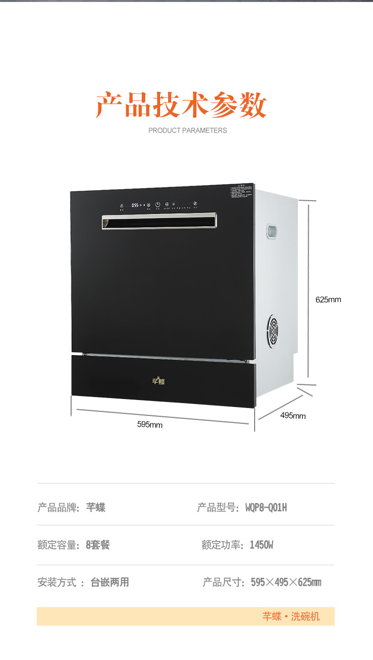 신형 내장형 식기세척기, 완전 자동, 13세트 대용량 살균기, 스마트 테이블탑, 설치 불필요, 고온 살균