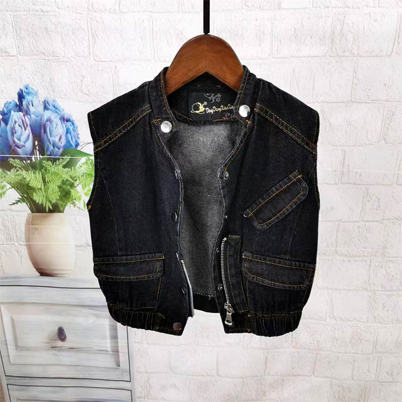 소년 데님 조끼 기모 두꺼운 아기 따뜻한 조끼 아기의 허리 코트 가을과 겨울 한국 스타일 트렌디 한 만화 코트스토어 가기