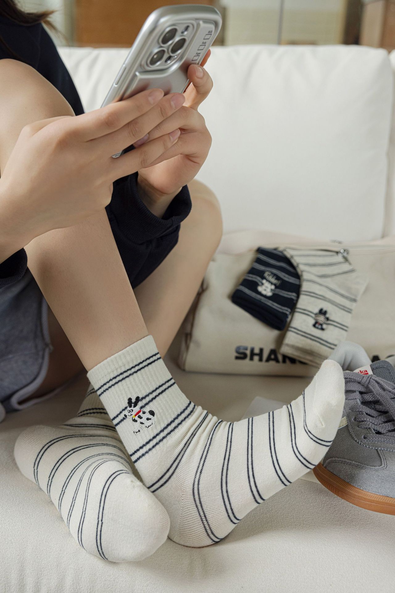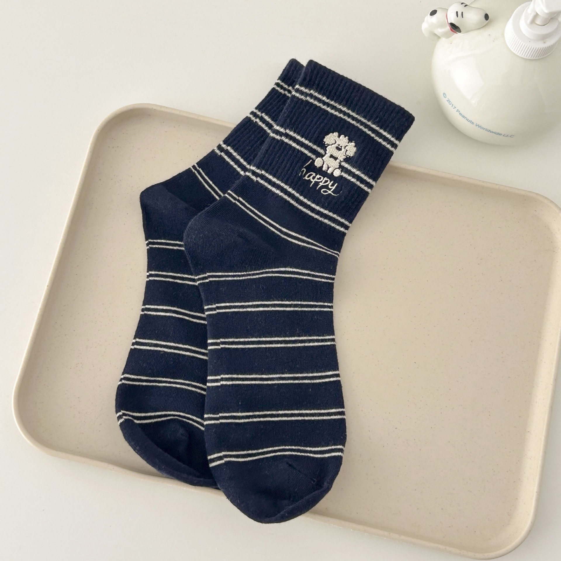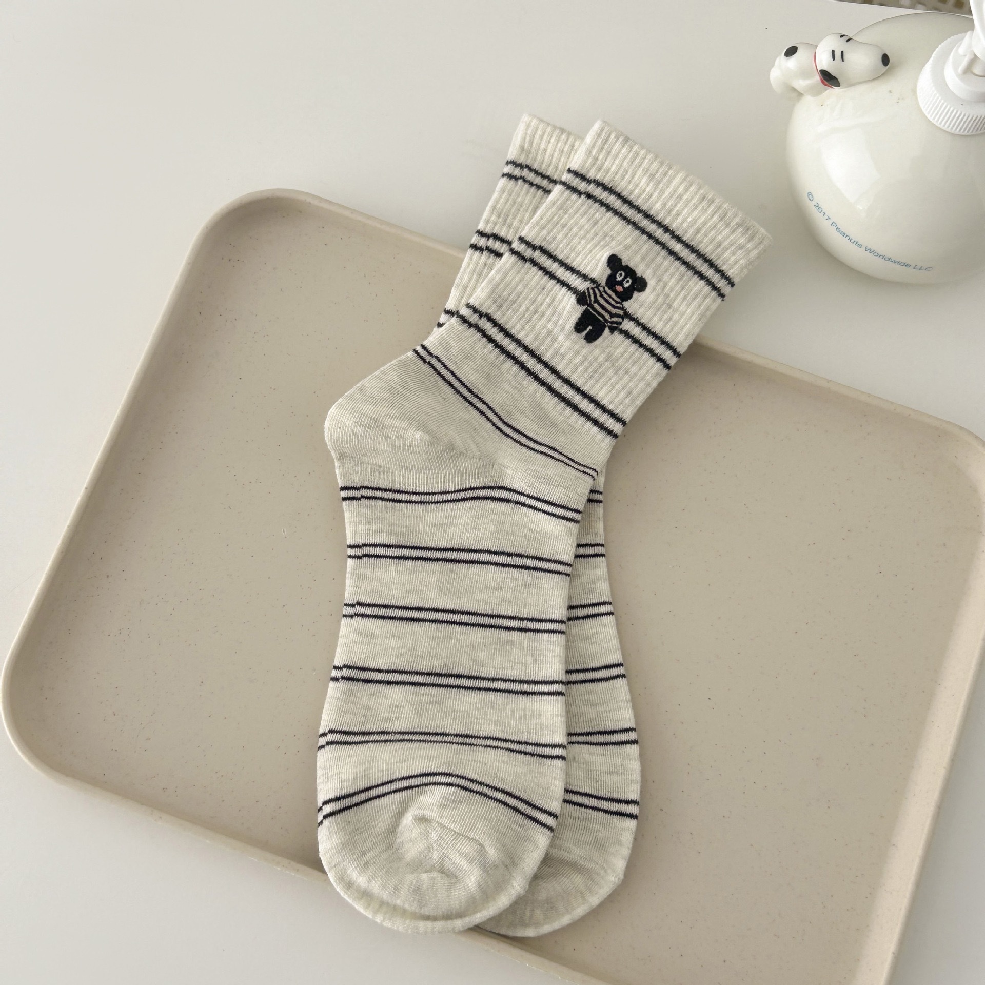 만화 개 ya ~ 새로운 가을 한국 줄무늬 자수 양말 일본 캐주얼 학술 스타일 더미 양말스토어 가기
