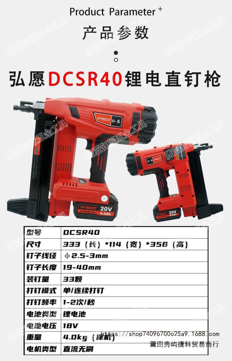 홍위안 오리지널 정품 DCSR40 리튬 네일 건 전기 네일 아티팩트 콘크리트 특수 충전 네일 건스토어 가기
