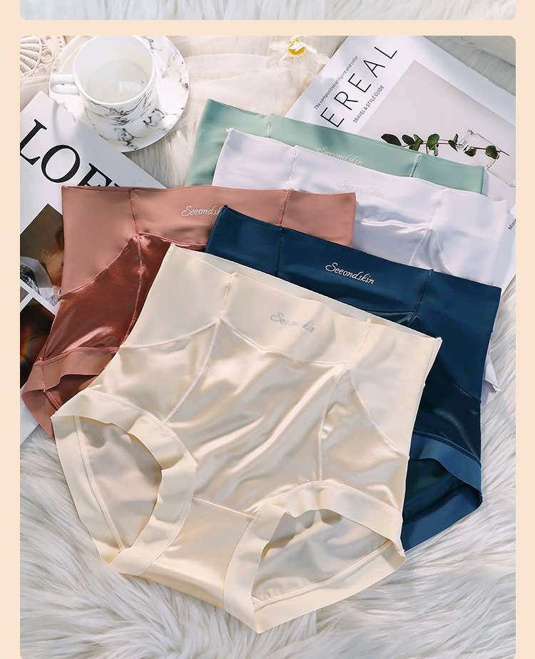 원활한 아이스 실크 새틴 높은 허리 여성 속옷 실크 가랑이 복고풍 높은 탄성 배꼽 속옷 통기성 편안한 브리프스토어 가기