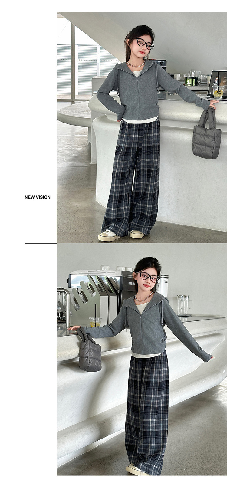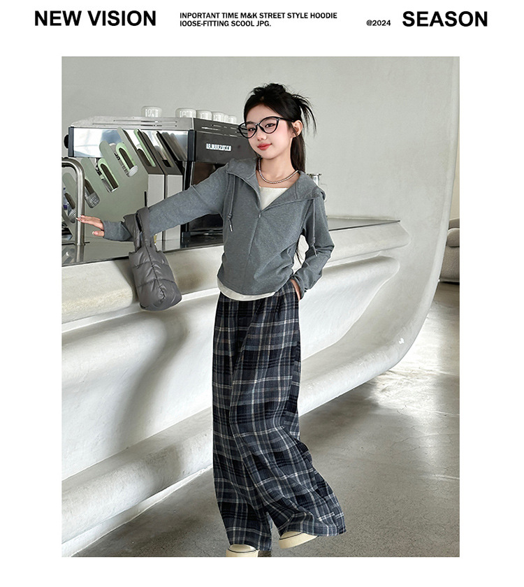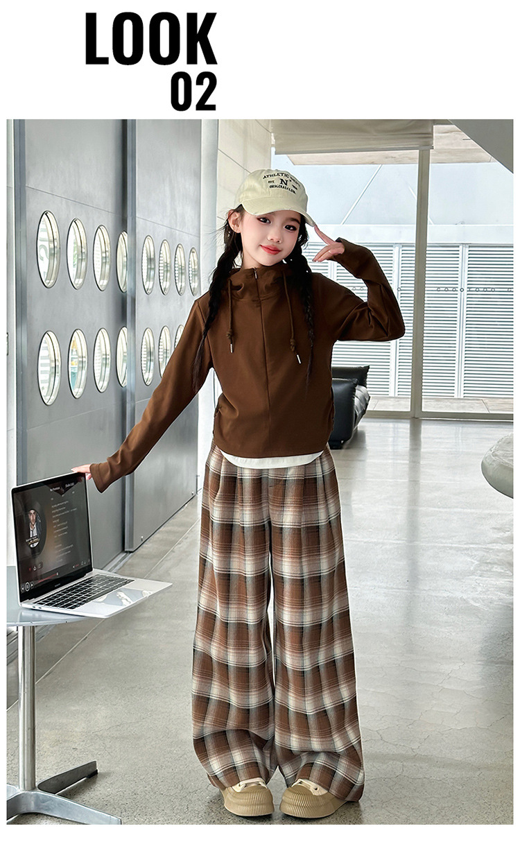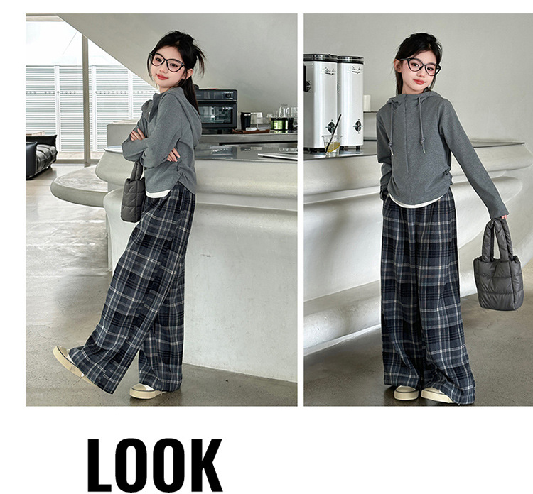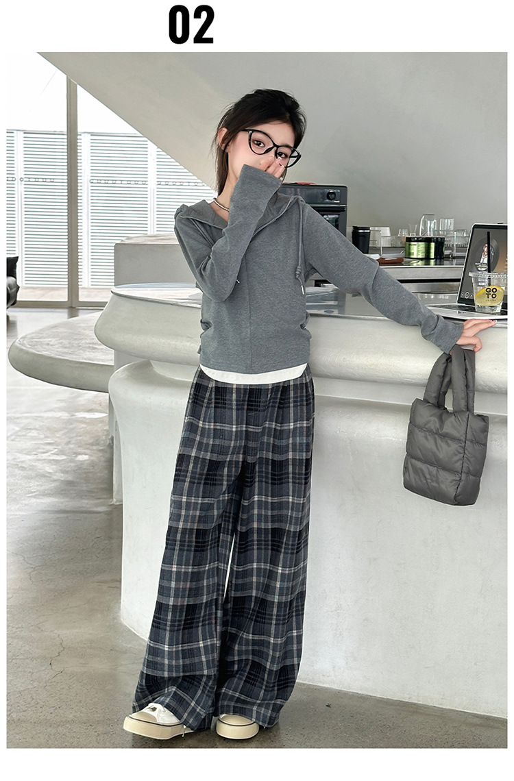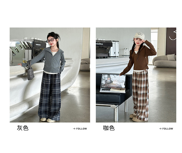 여아 가을 의류 세트 2025 신상 스타일리시 여아 봄 가을 니트 재킷 어린이 체크무늬 와이드 팬츠스토어 가기